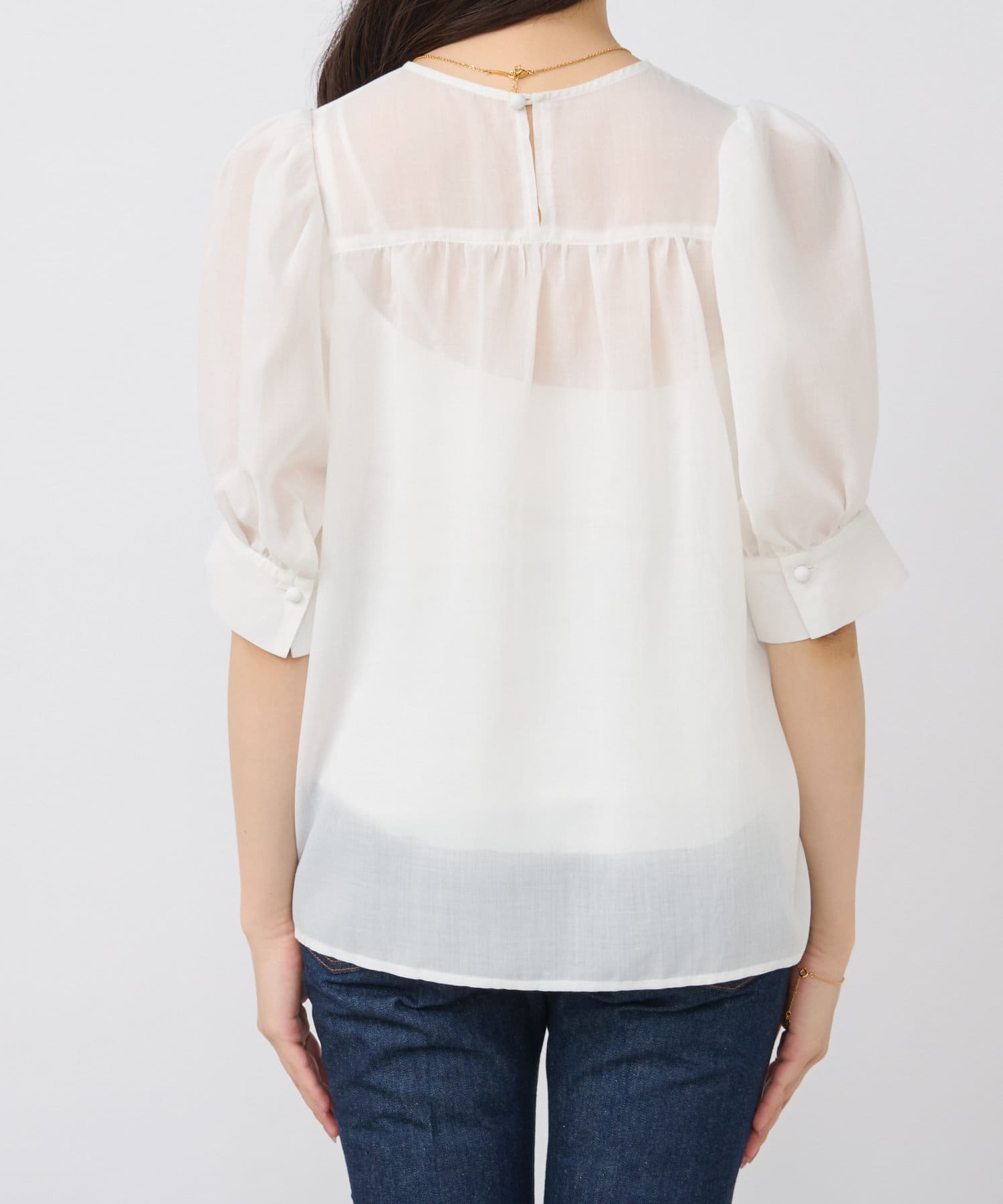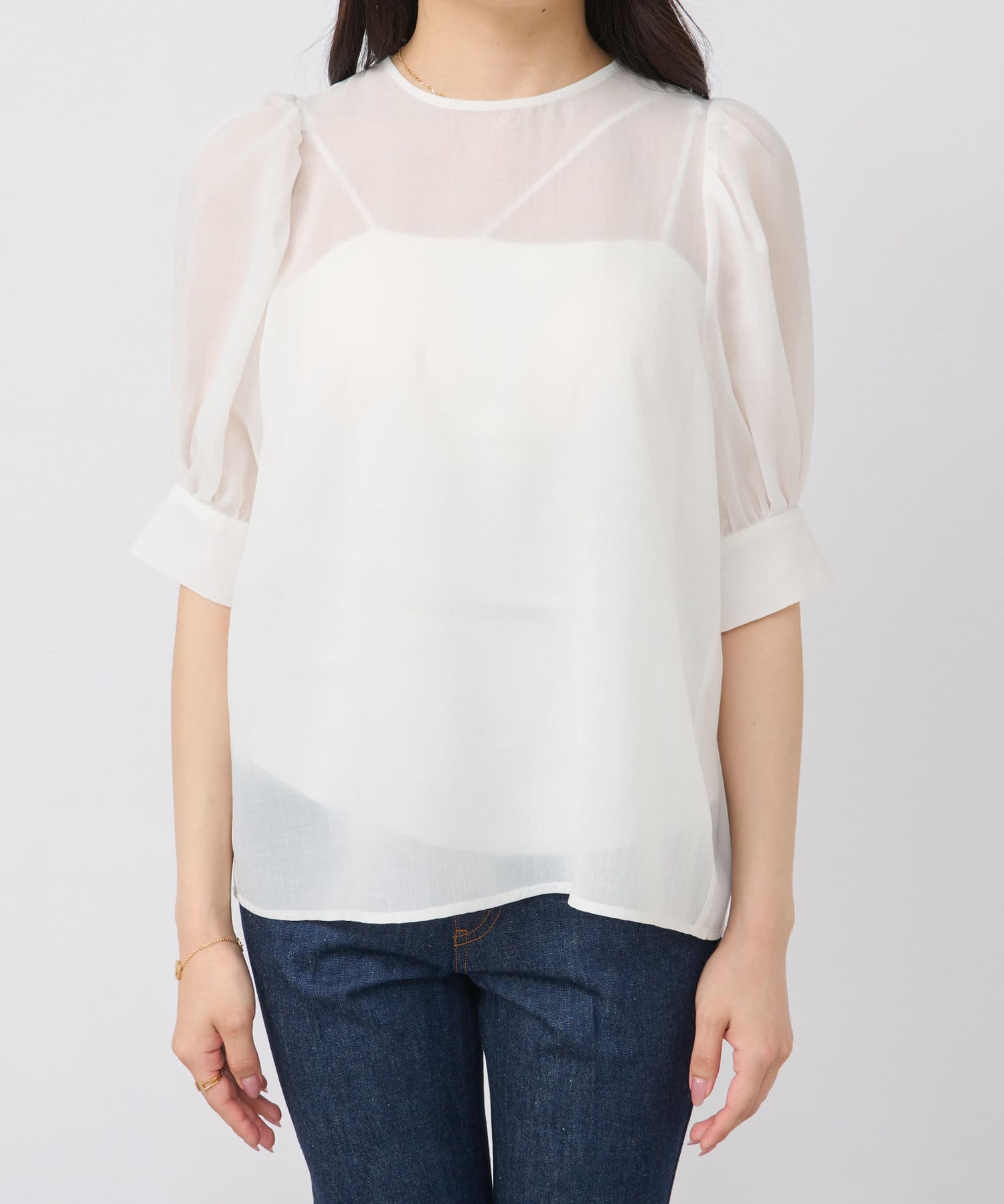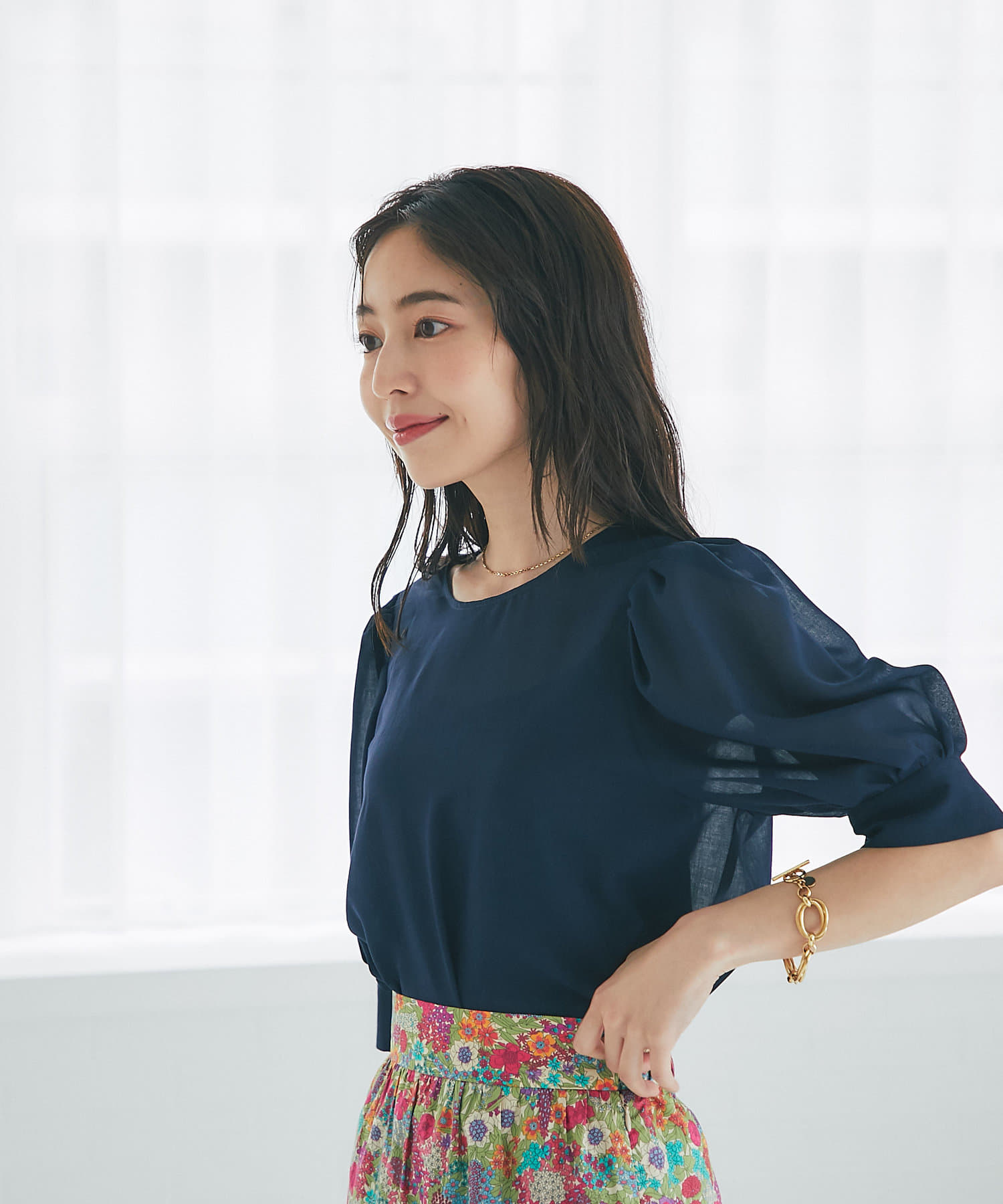 ボリュームスリーブが大人可愛い、シアーブラウス