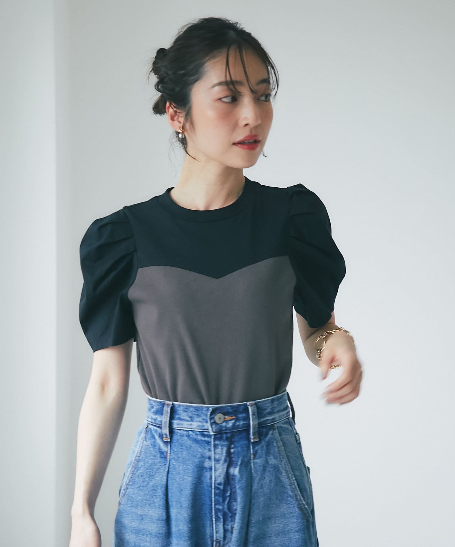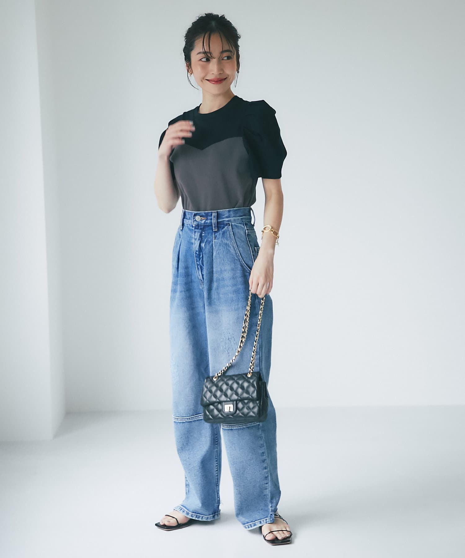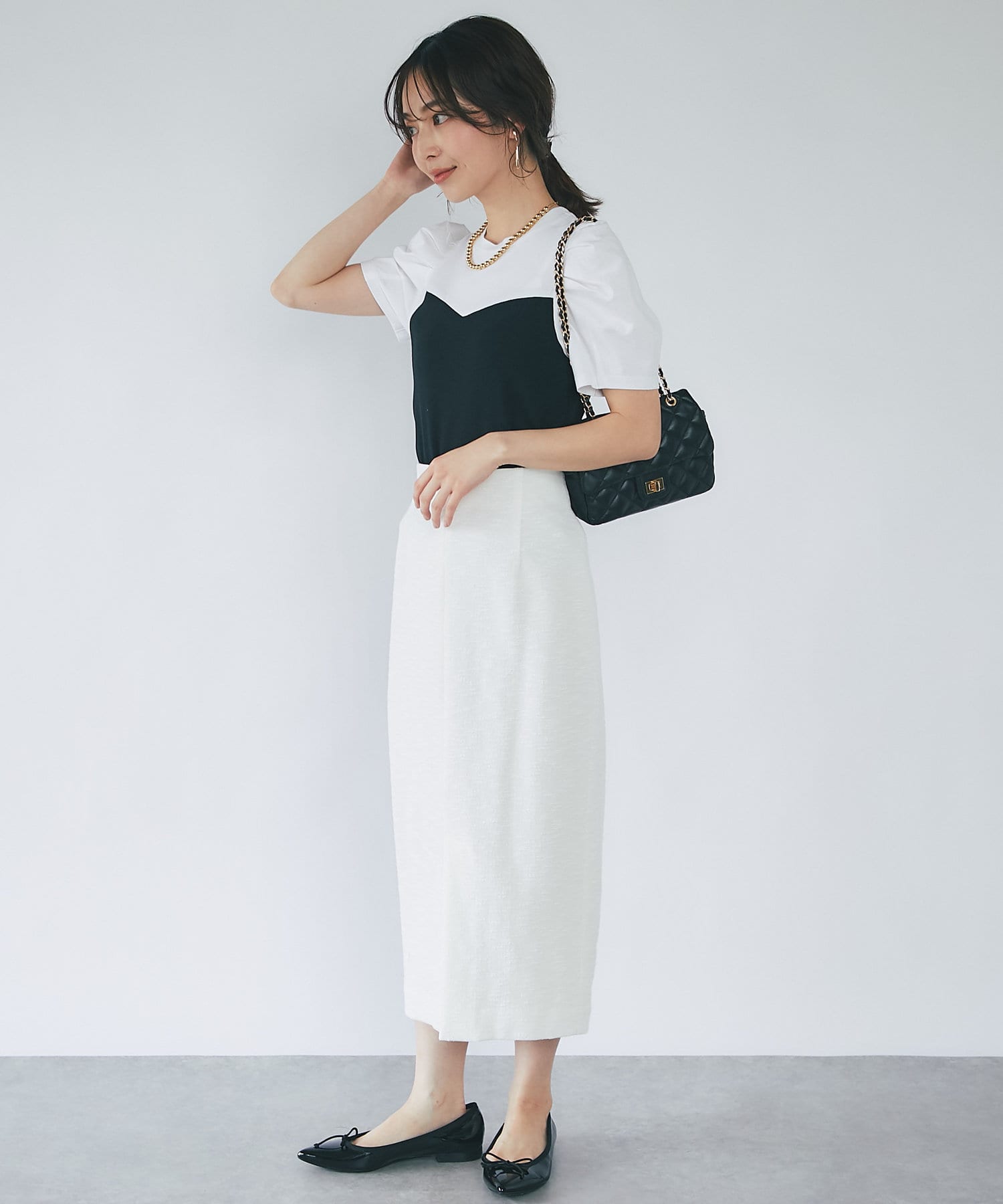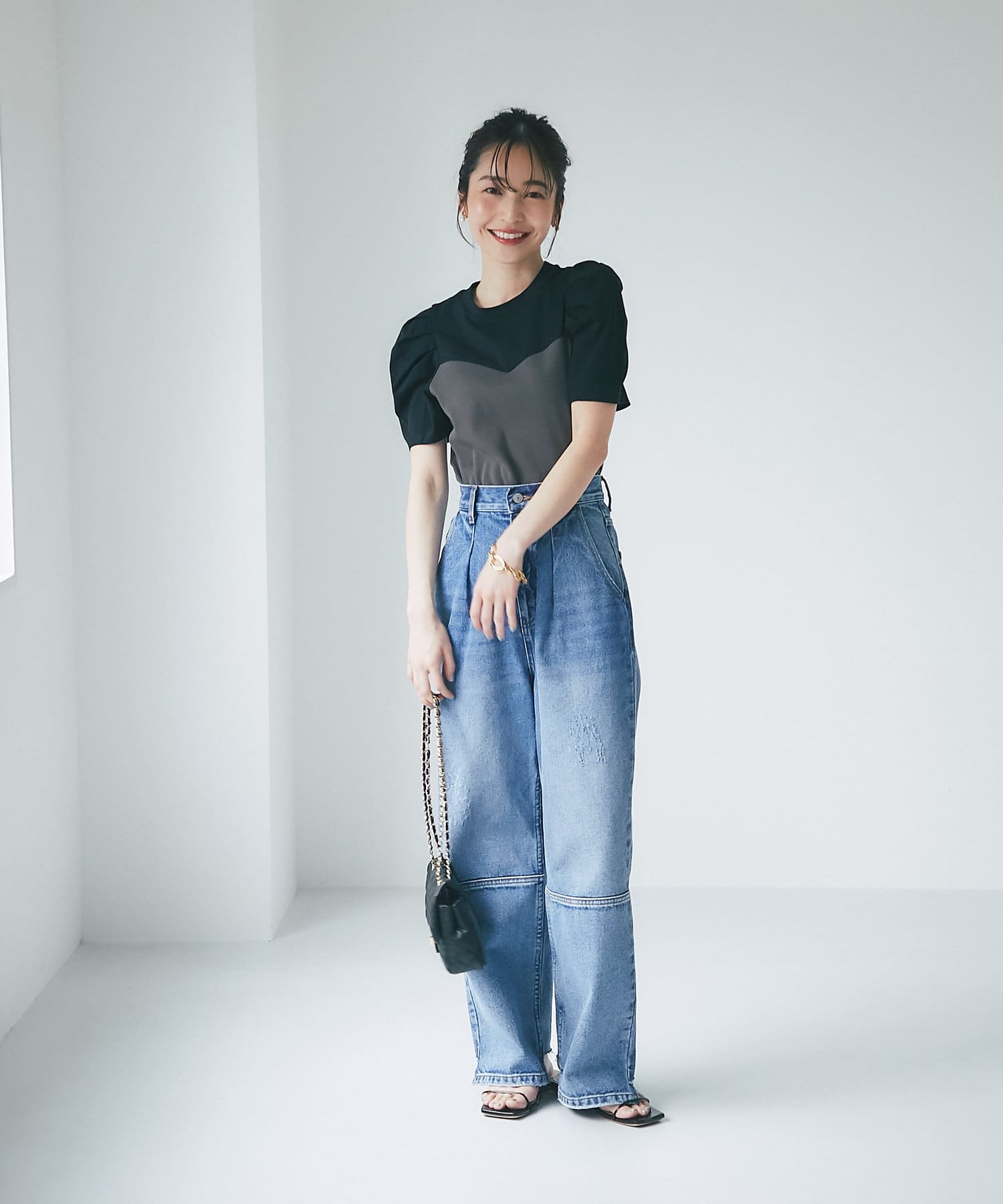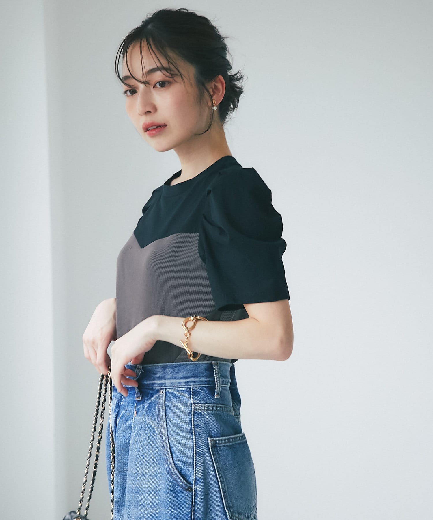 #大人カジュアル #きれいめカジュアル #ビスチェ風 #異素材 #パワショル #ベーシックカラー #上品カジュアル #スタイルアップ #大人女子 #モテ女子 #モテコーデ #モテ服 #シンプル #デイリーユース #オンスタイル #オフィスカジュアル #バイカラー #デザインTシャツ