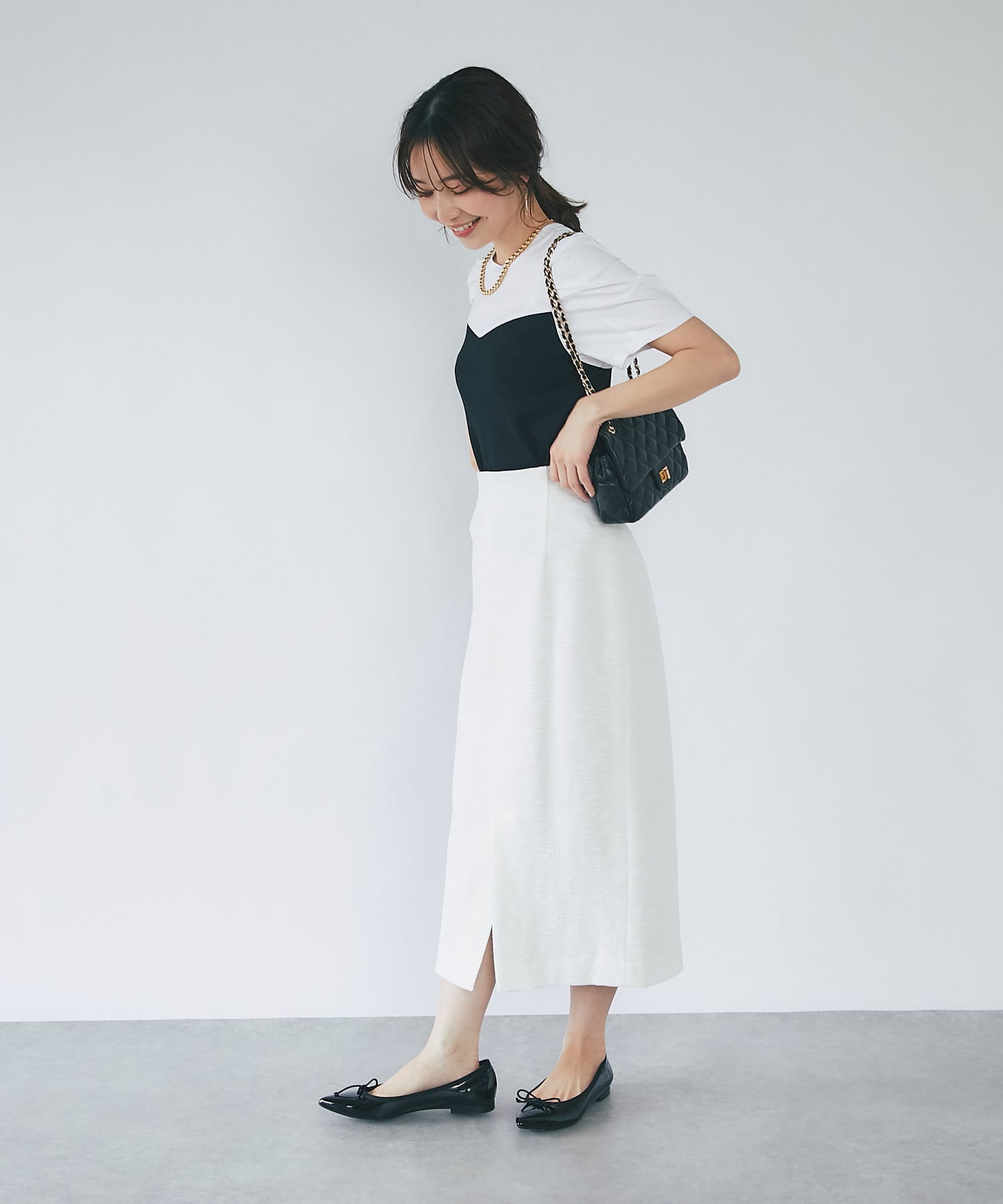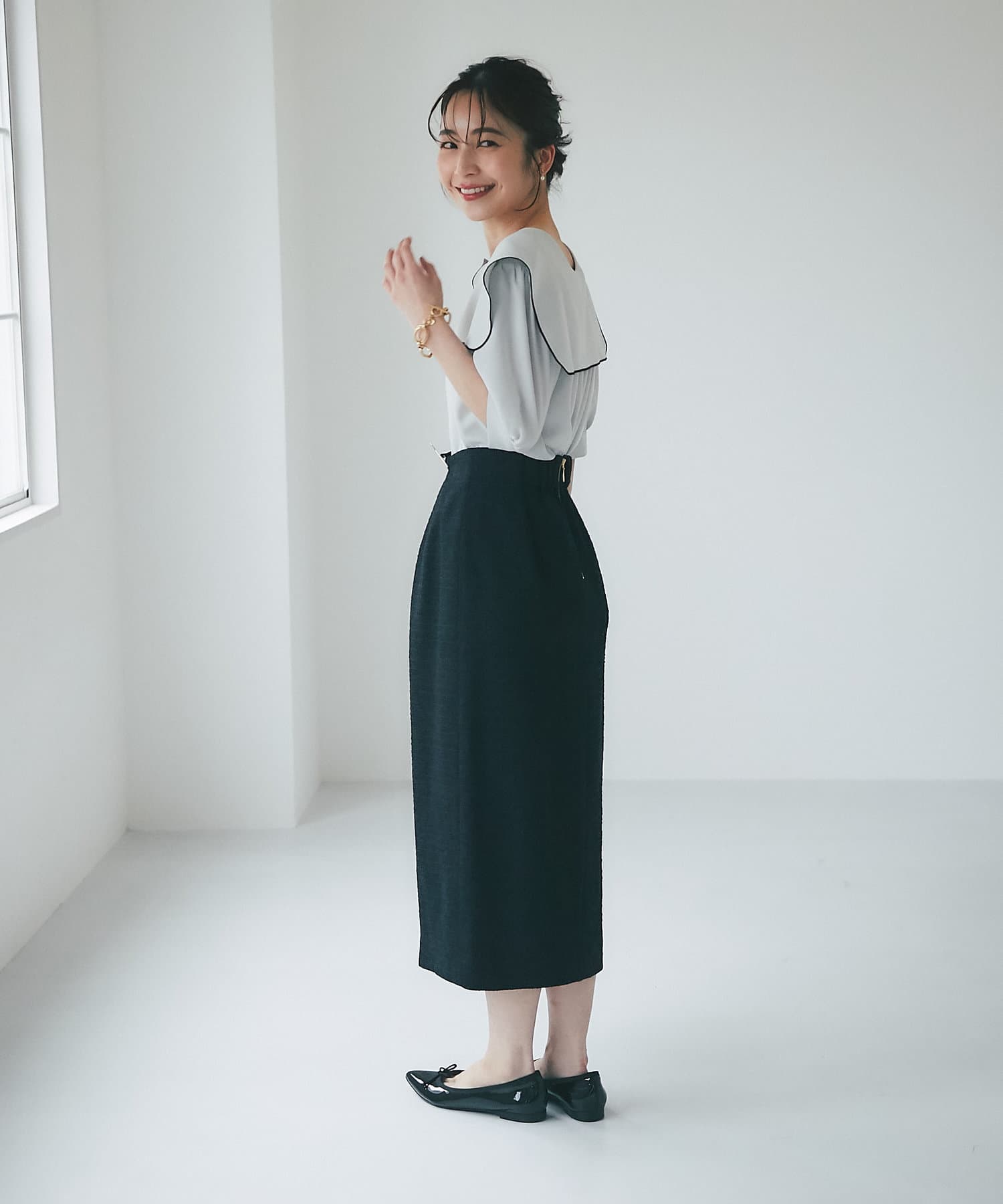 ハイウエストのナローシルエットでスタイルアップ効果も◎