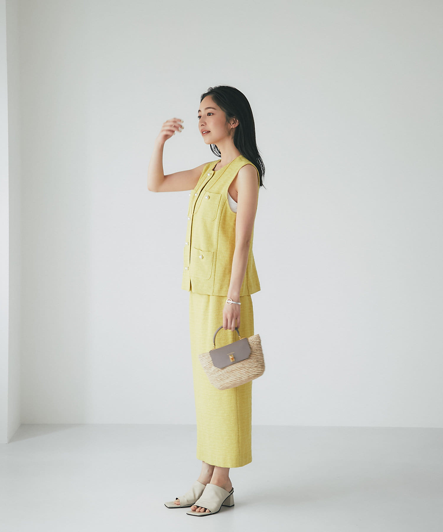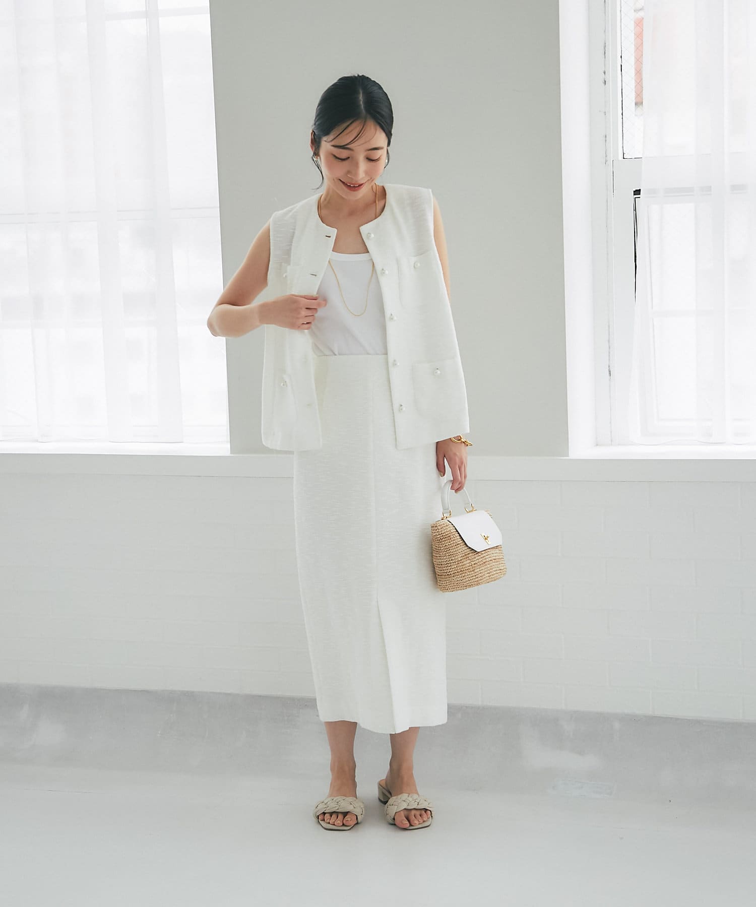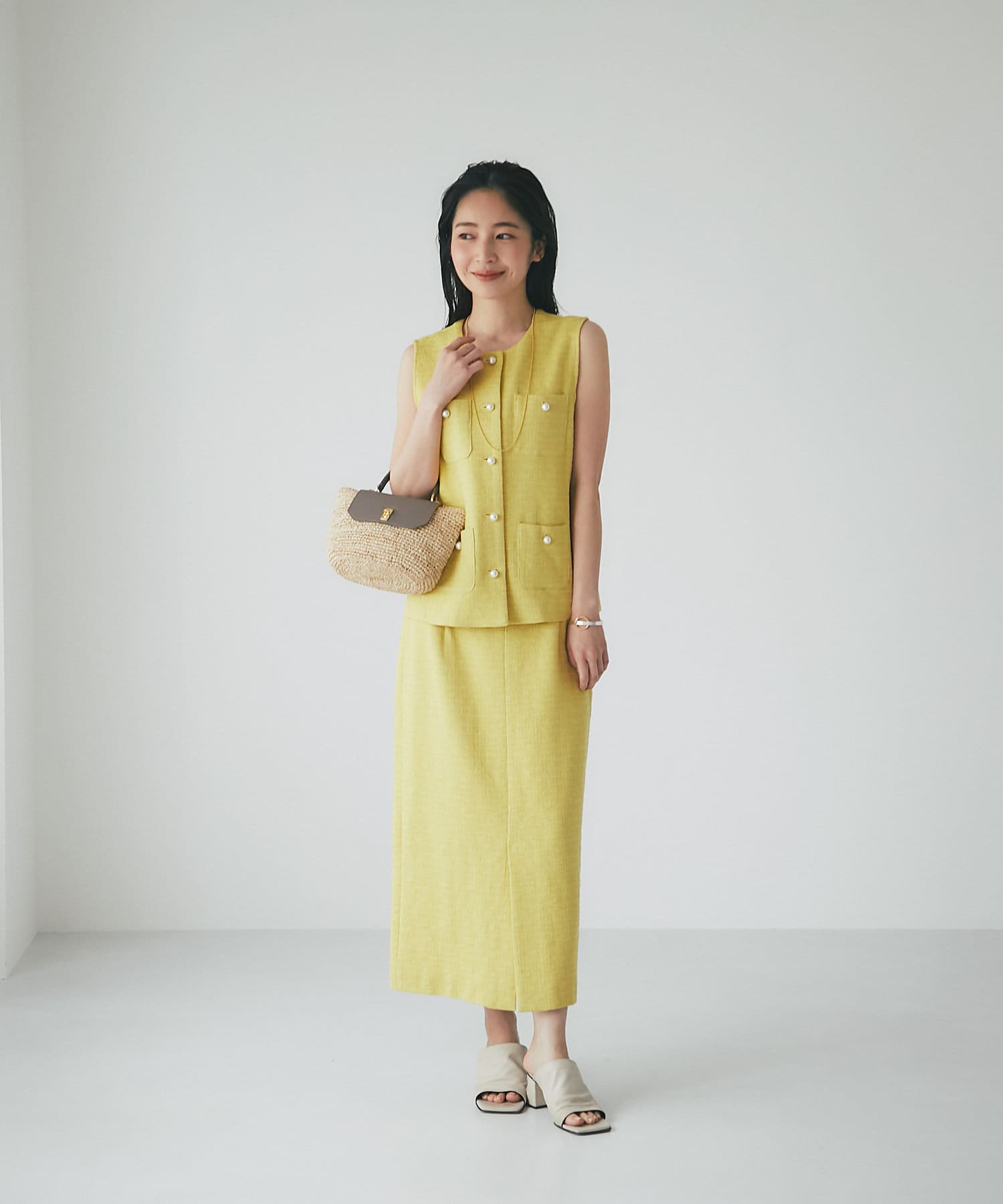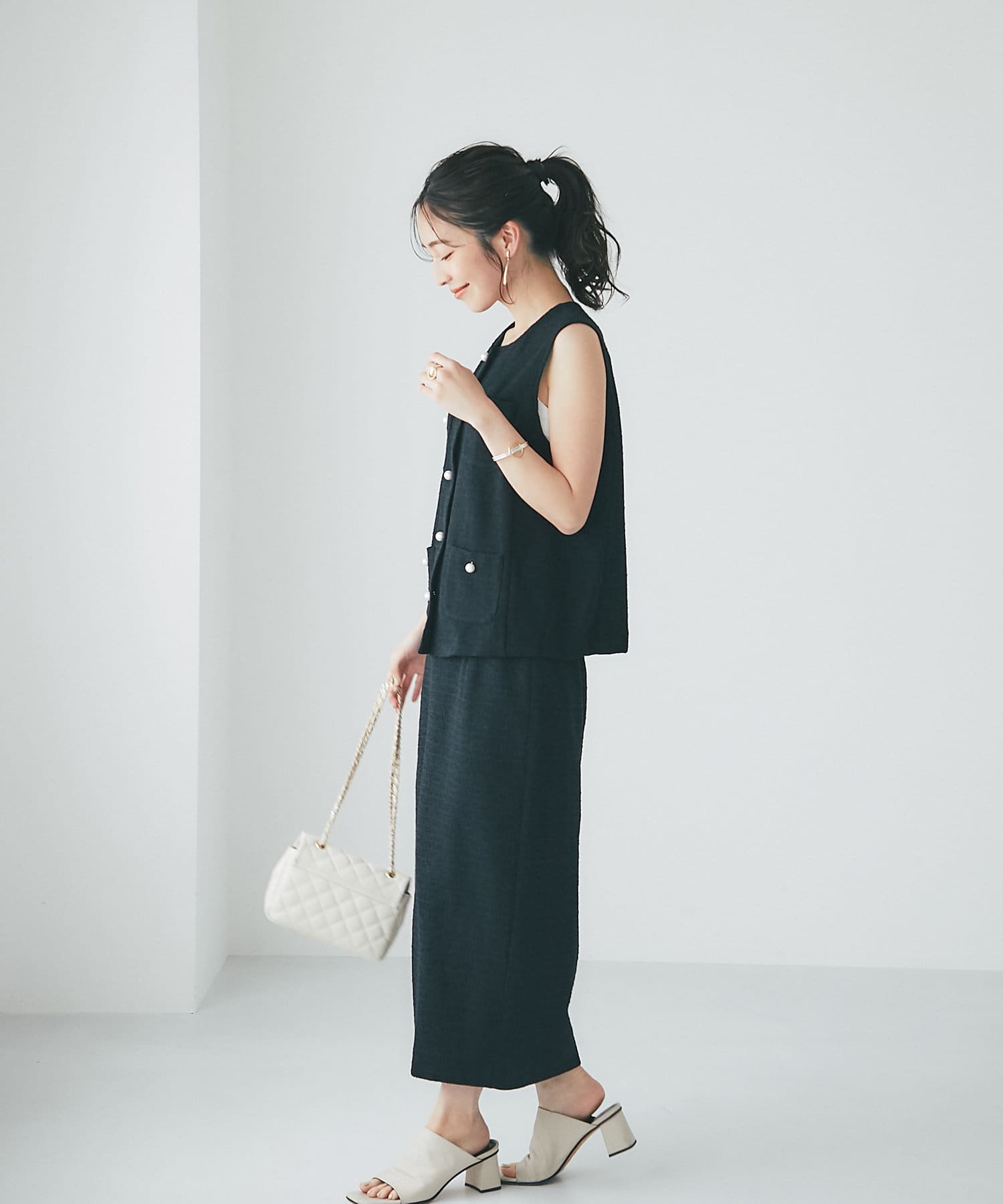 ※同素材のスリーブレスジャケットとセットアップ着用が可能です。