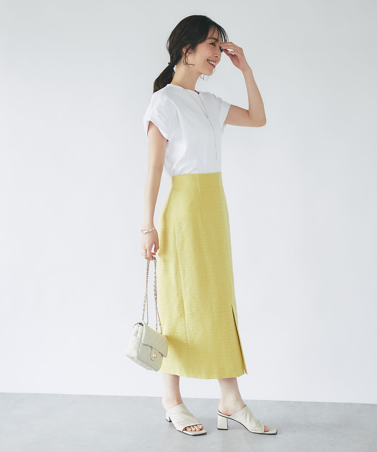 #大人カジュアル #きれいめコーデ #上品カジュアル #大人女子 #大人ガーリー #上品コーデ #ミディスカート #ひざ丈 #ツイード #カラースカート #美シルエット #フェミニン #ストレッチ #ジャージー #デート #モテ女子 #モテ服 #愛され #通勤コーデ#お仕事スタイル #オフィスコーデ #オケージョン