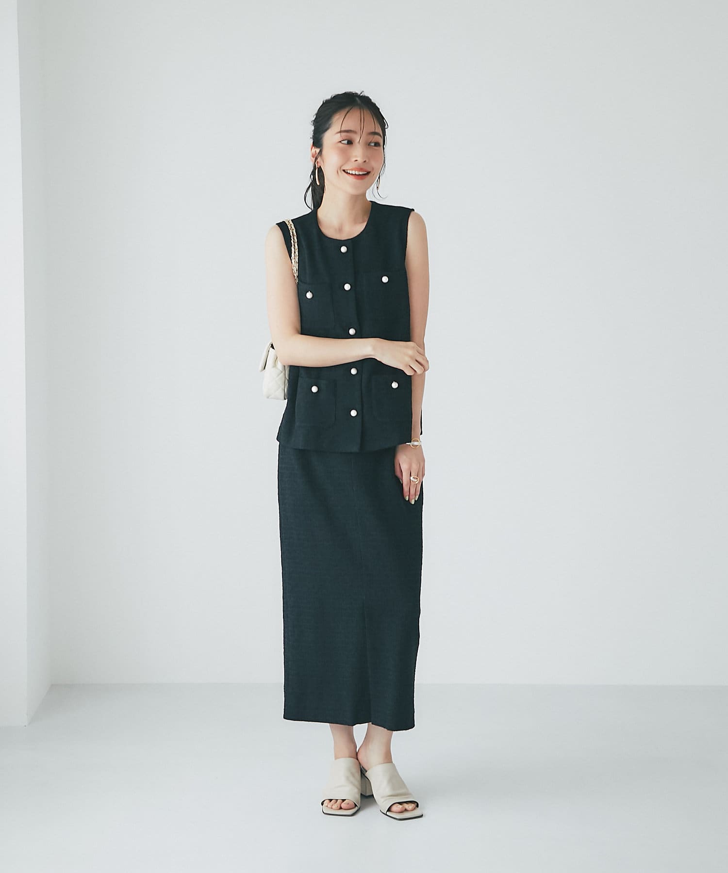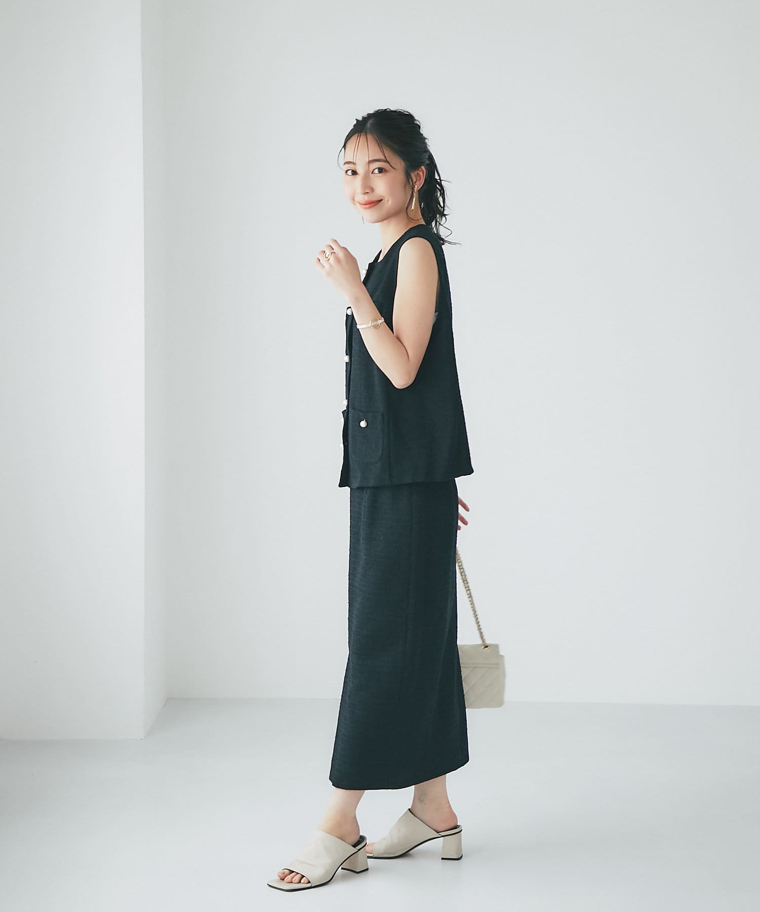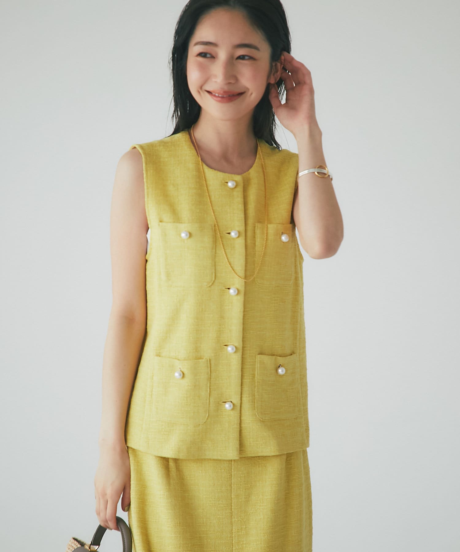 #大人カジュアル #きれいめカジュアル #上品カジュアル #上品 #無地 #ツイード #パールボタン #きちんと感 #セットアップ #レイヤード #トレンド #大人女子 #大人可愛い #抜け感 #モテ女子 #モテ服 #デート #清潔感 #清涼感 #爽やか #ノースリーブ #スリーブレス