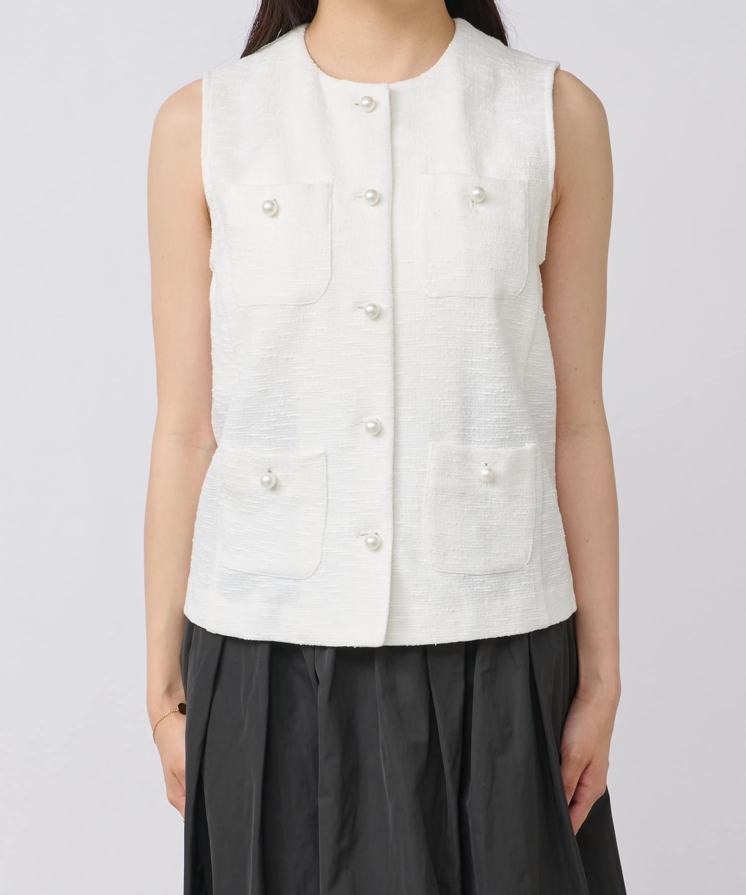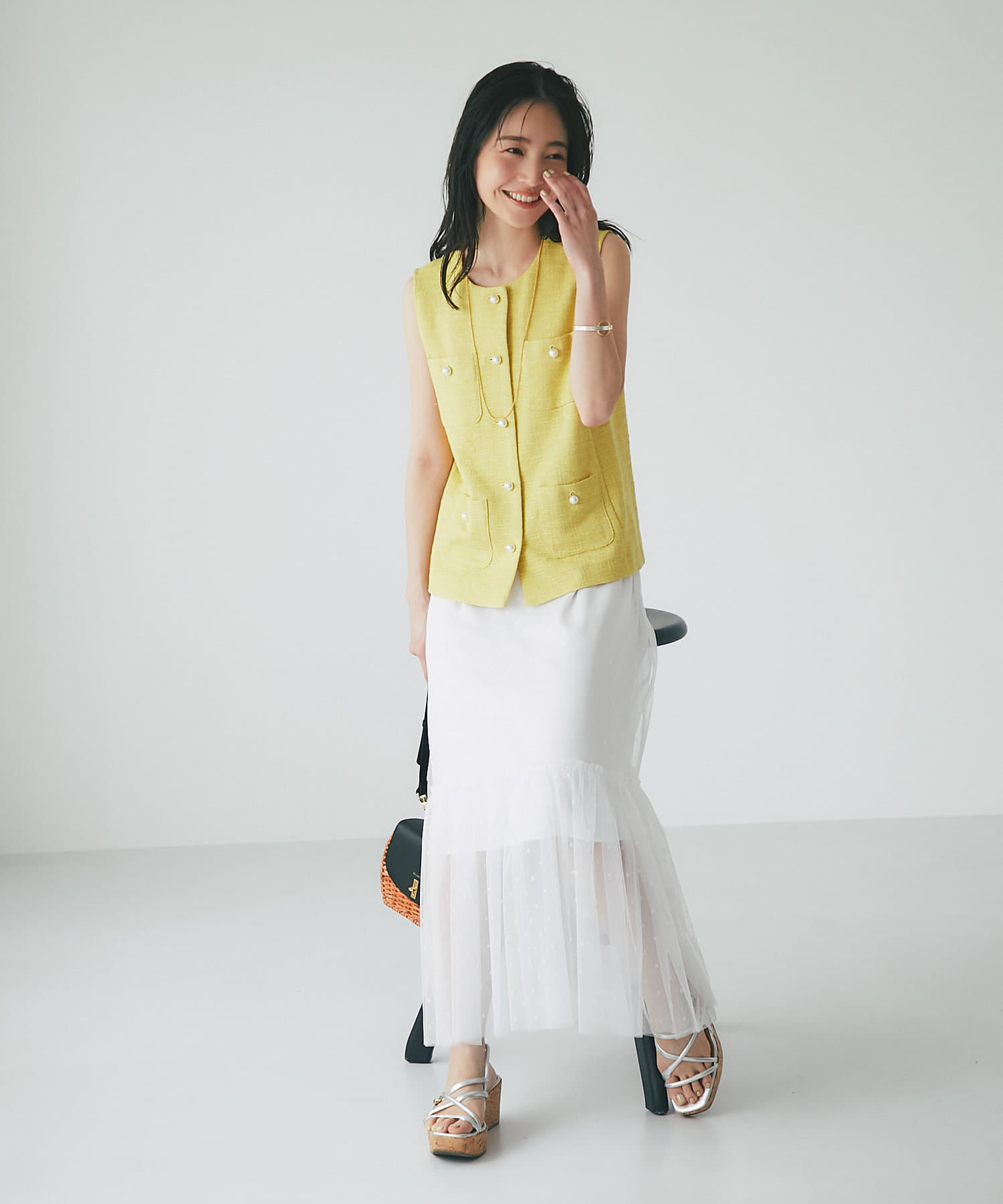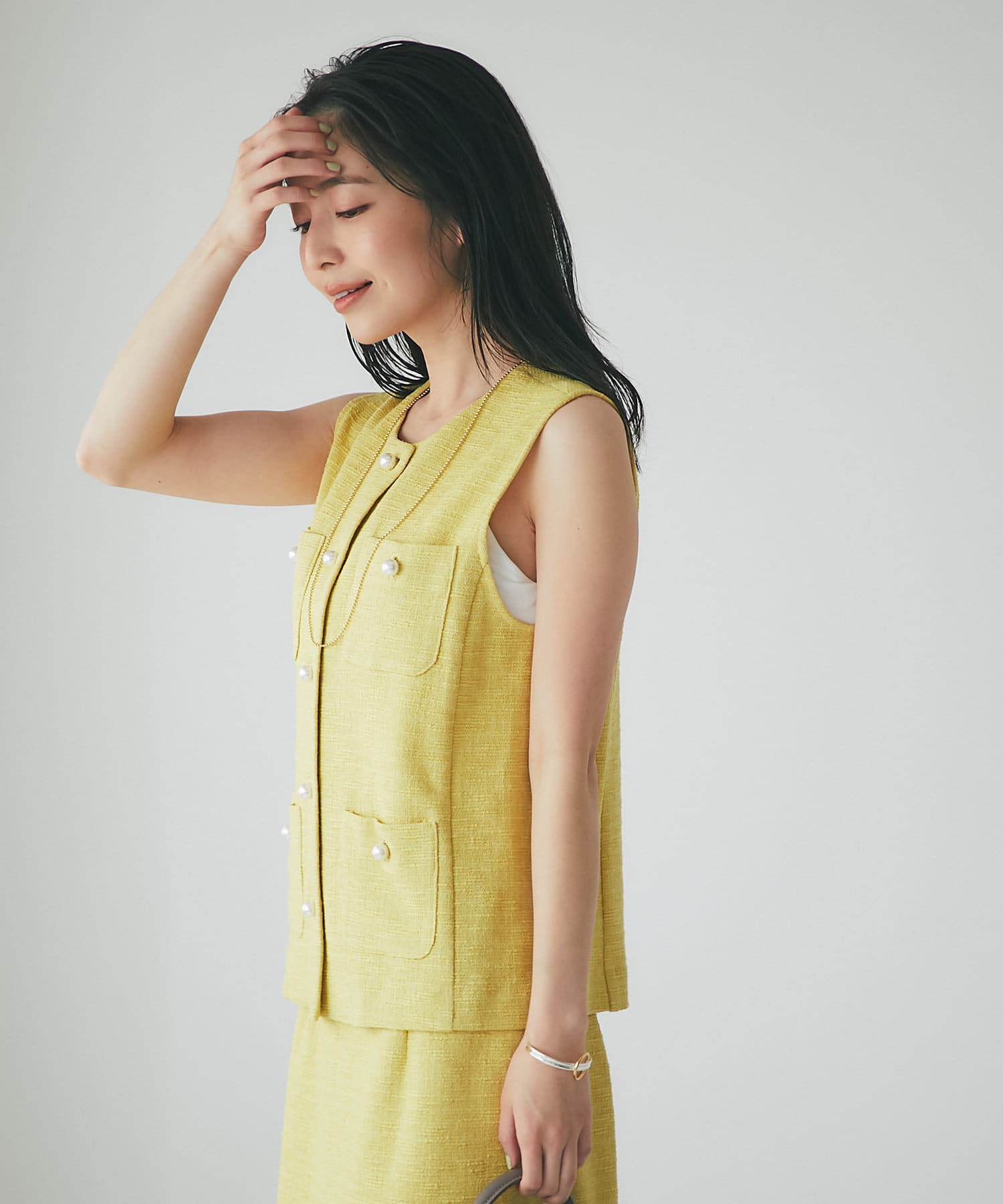 #大人カジュアル #きれいめカジュアル #上品カジュアル #上品 #無地 #ツイード #パールボタン #きちんと感 #セットアップ #レイヤード #トレンド #大人女子 #大人可愛い #抜け感 #モテ女子 #モテ服 #デート #清潔感 #清涼感 #爽やか #ノースリーブ #スリーブレス