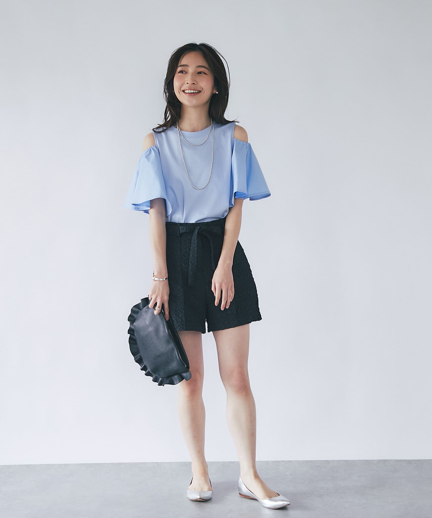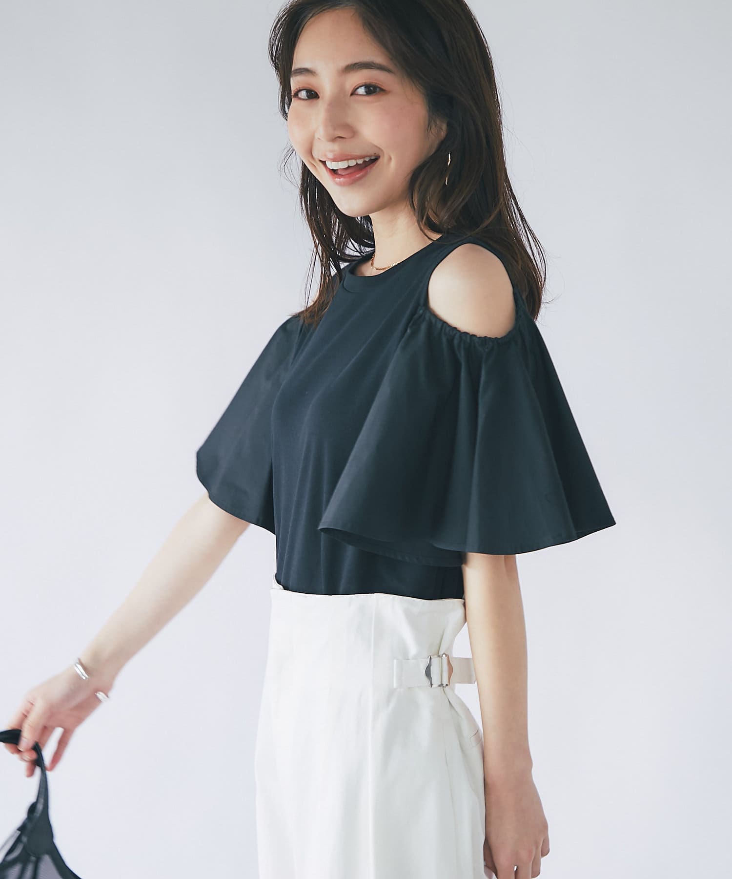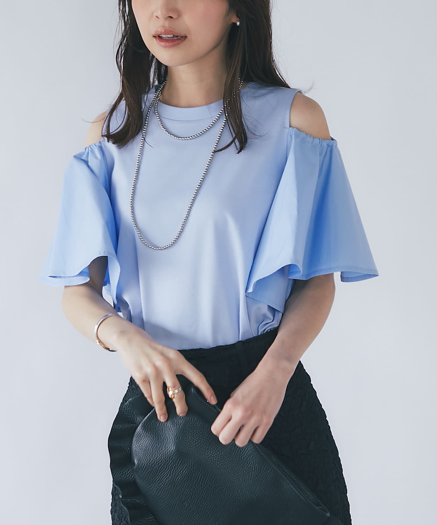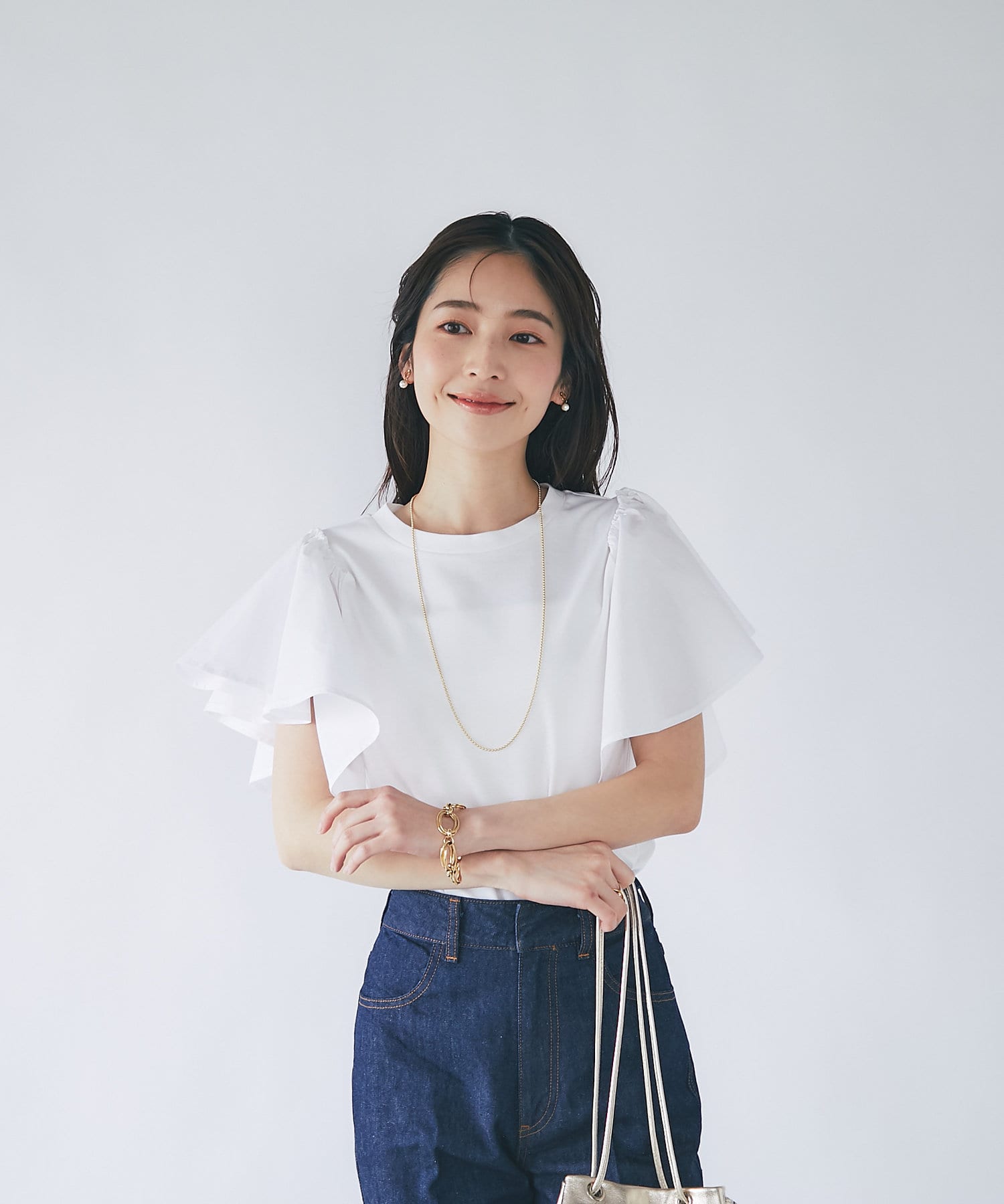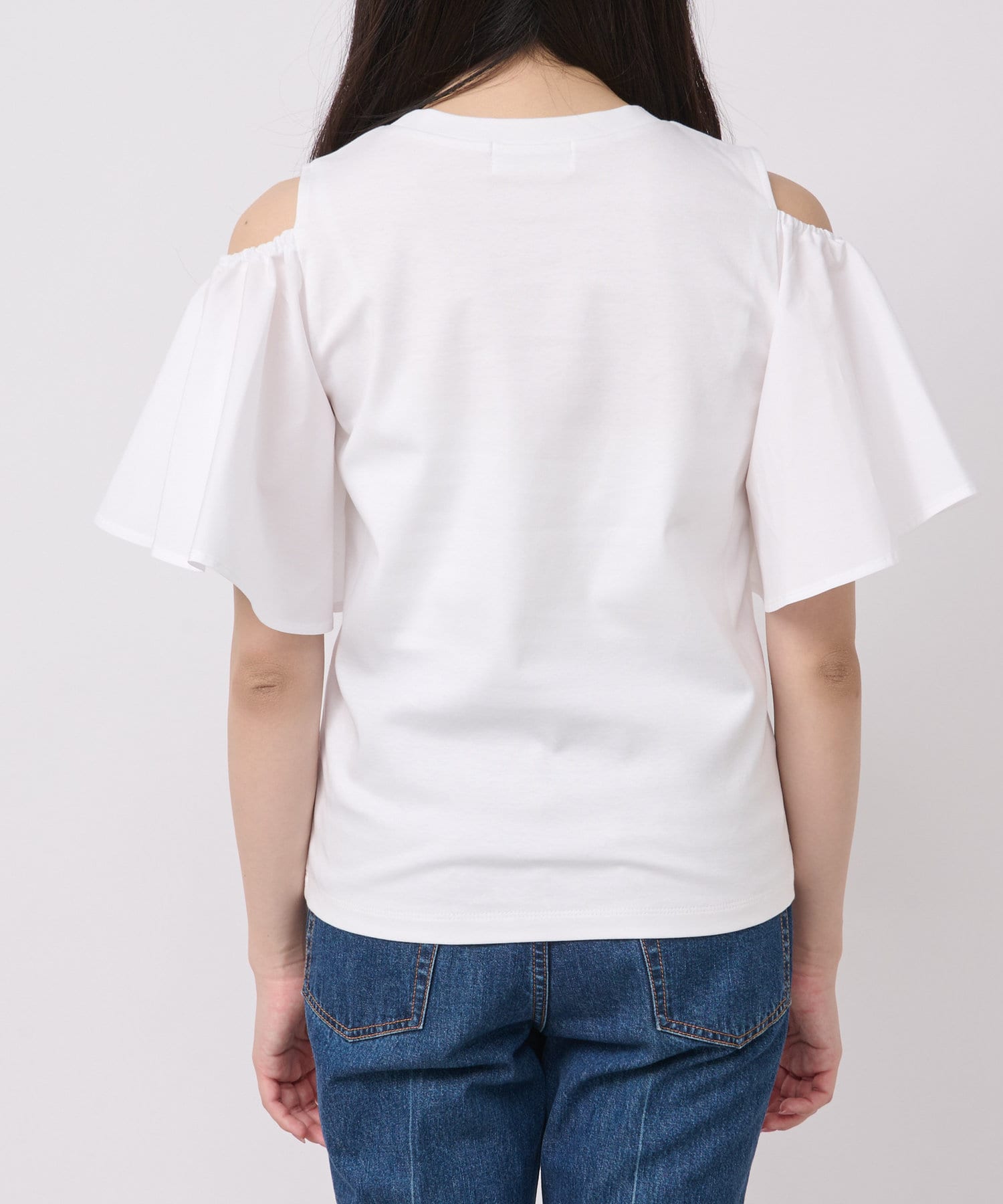 ラッフルスリーブのふわっとしたシルエットが目を引くカットソー
