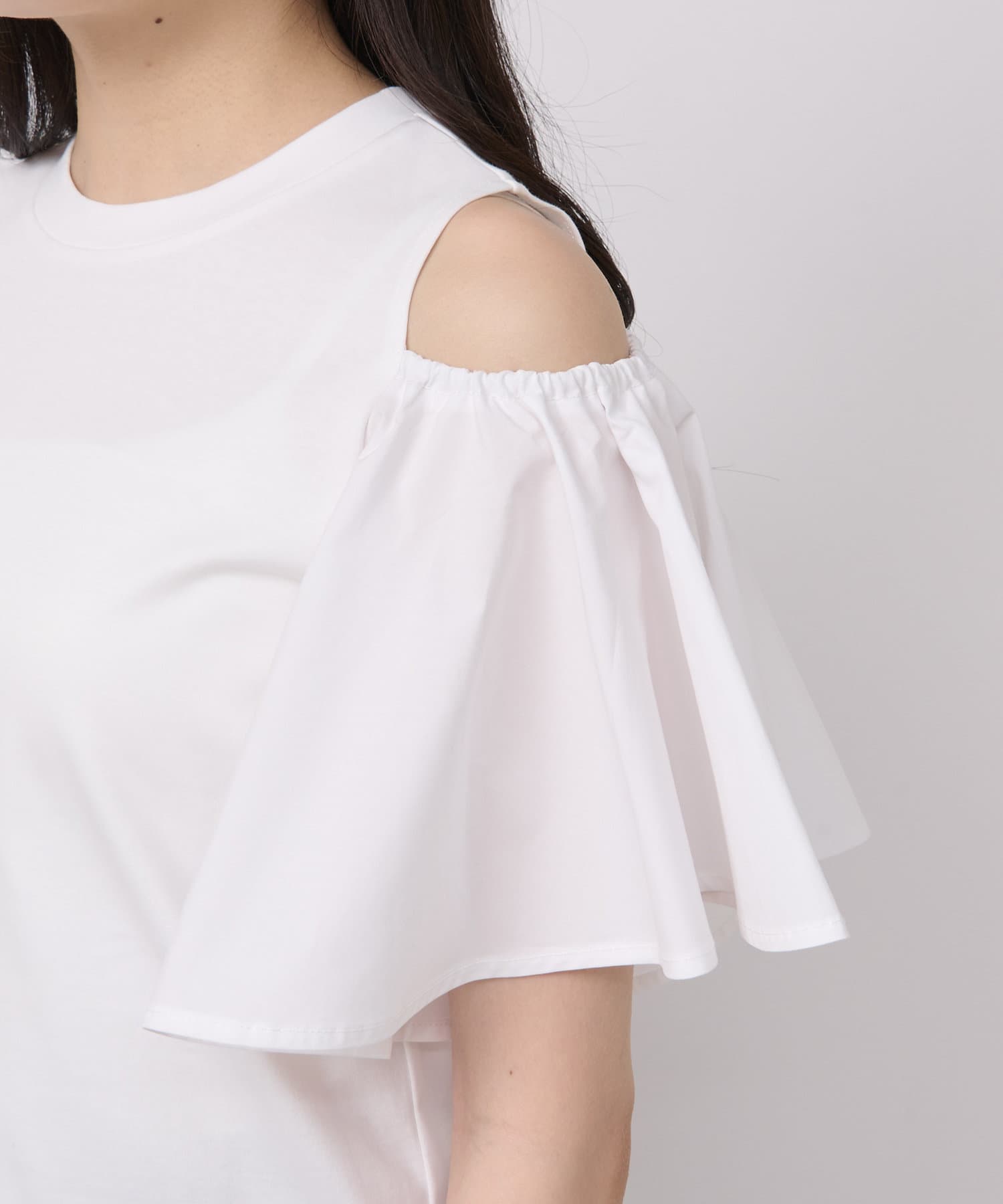 異素材ラッフルスリーブカットソー