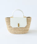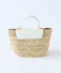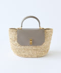 ラフィアで編み上げたボディにイタリアンスプリットレザーがアクセントになったカゴバッグ。