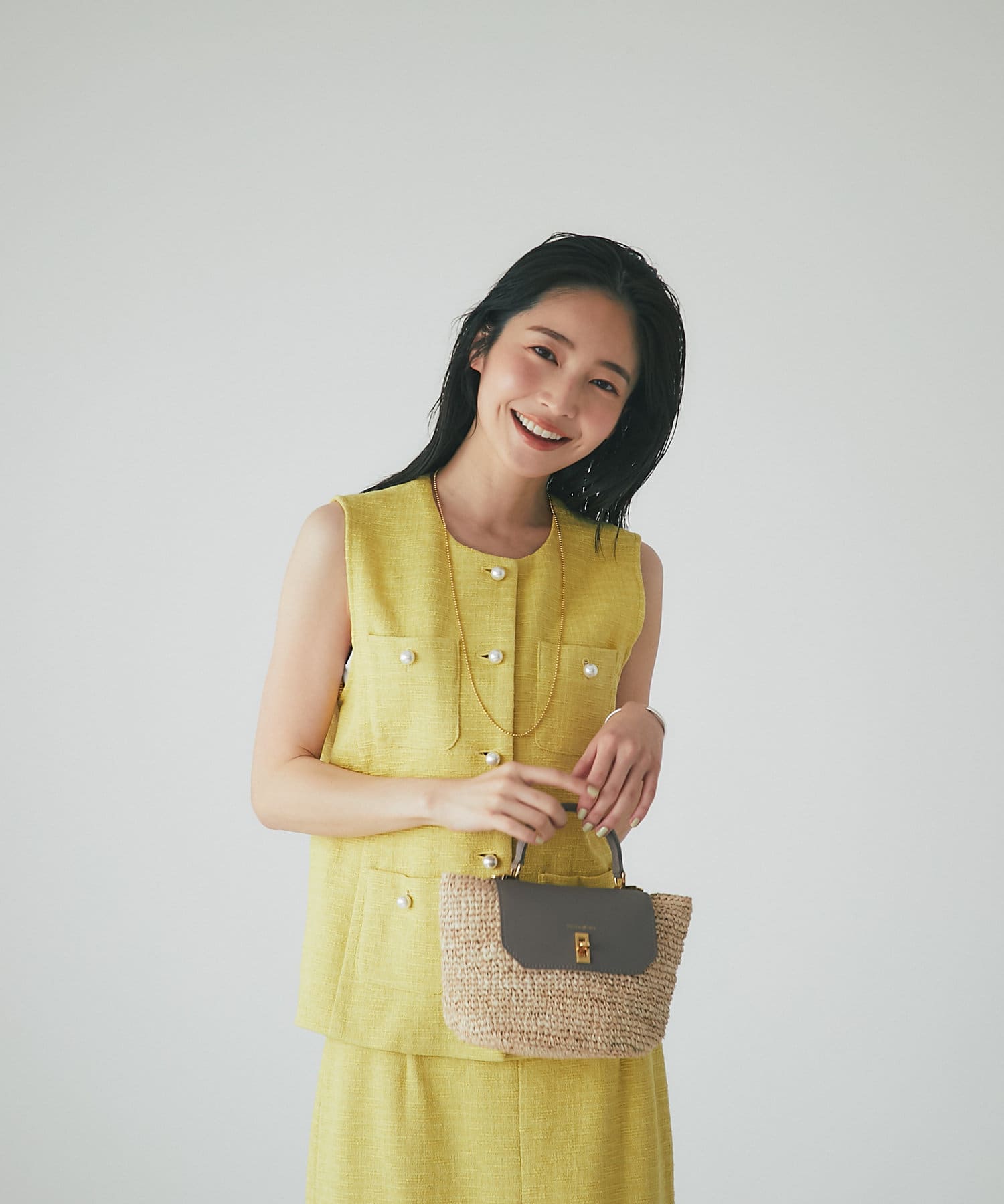 天然素材のカジュアル感がありながらも上品でフェミニンな印象なので幅広いシーンでお使い頂けます。