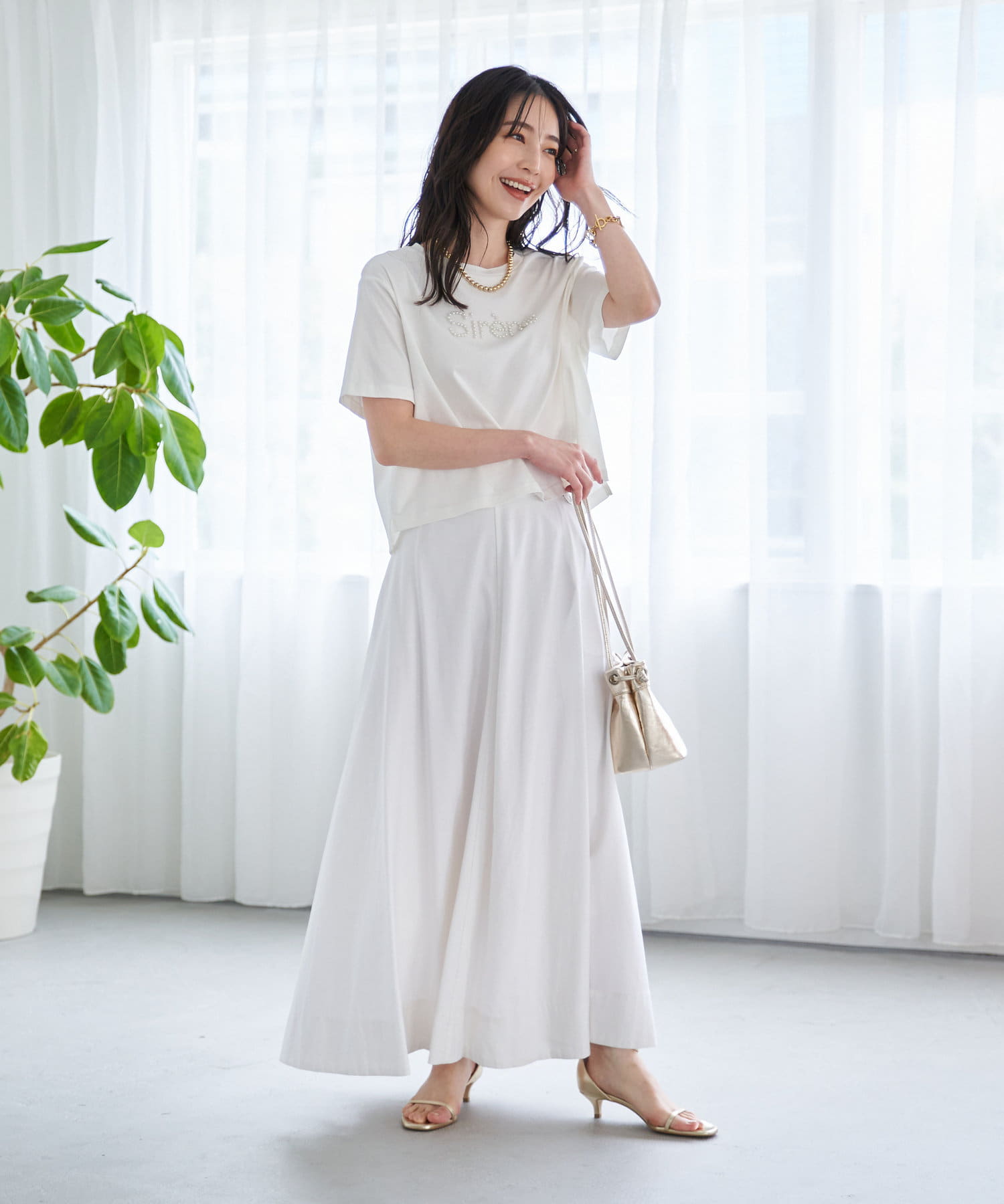 トロミのある落ち感で、広がりすぎない上品な仕上がりに。