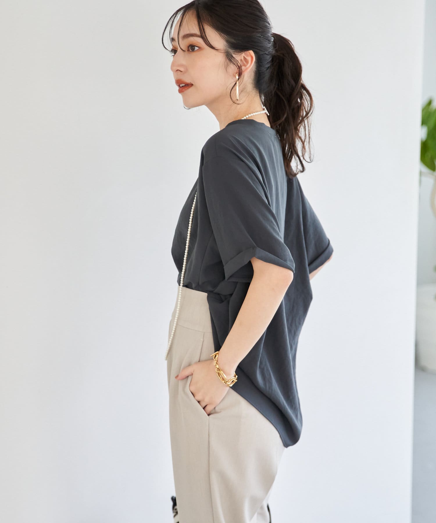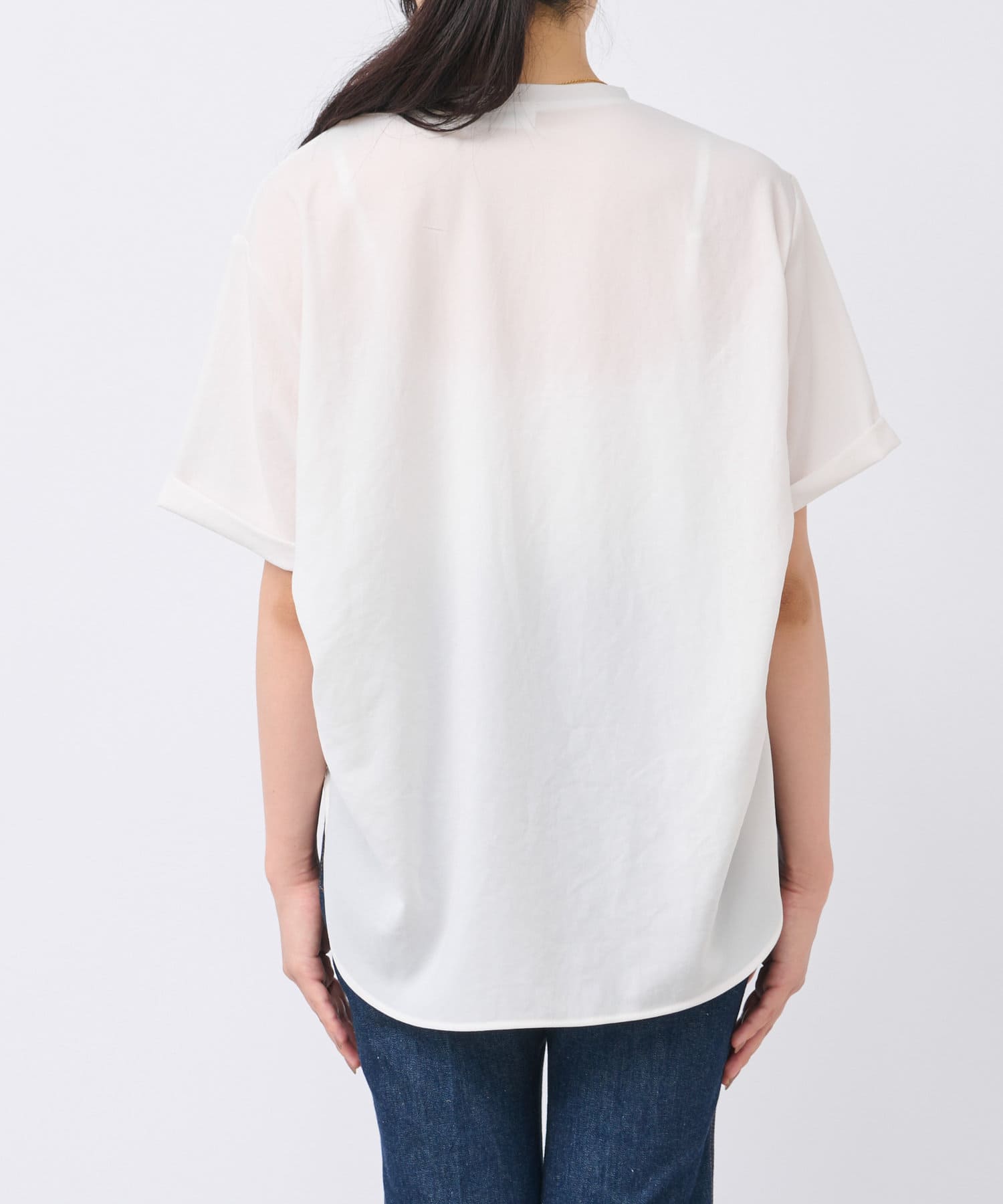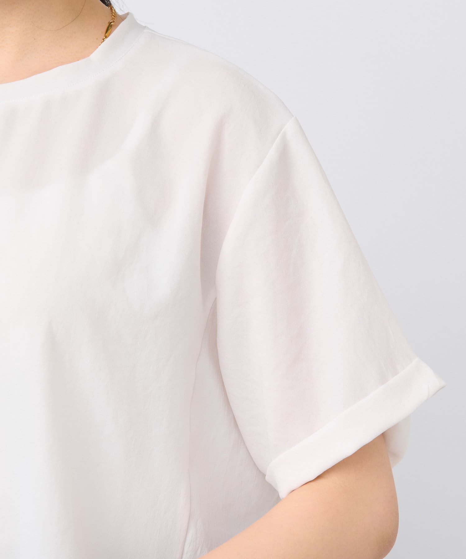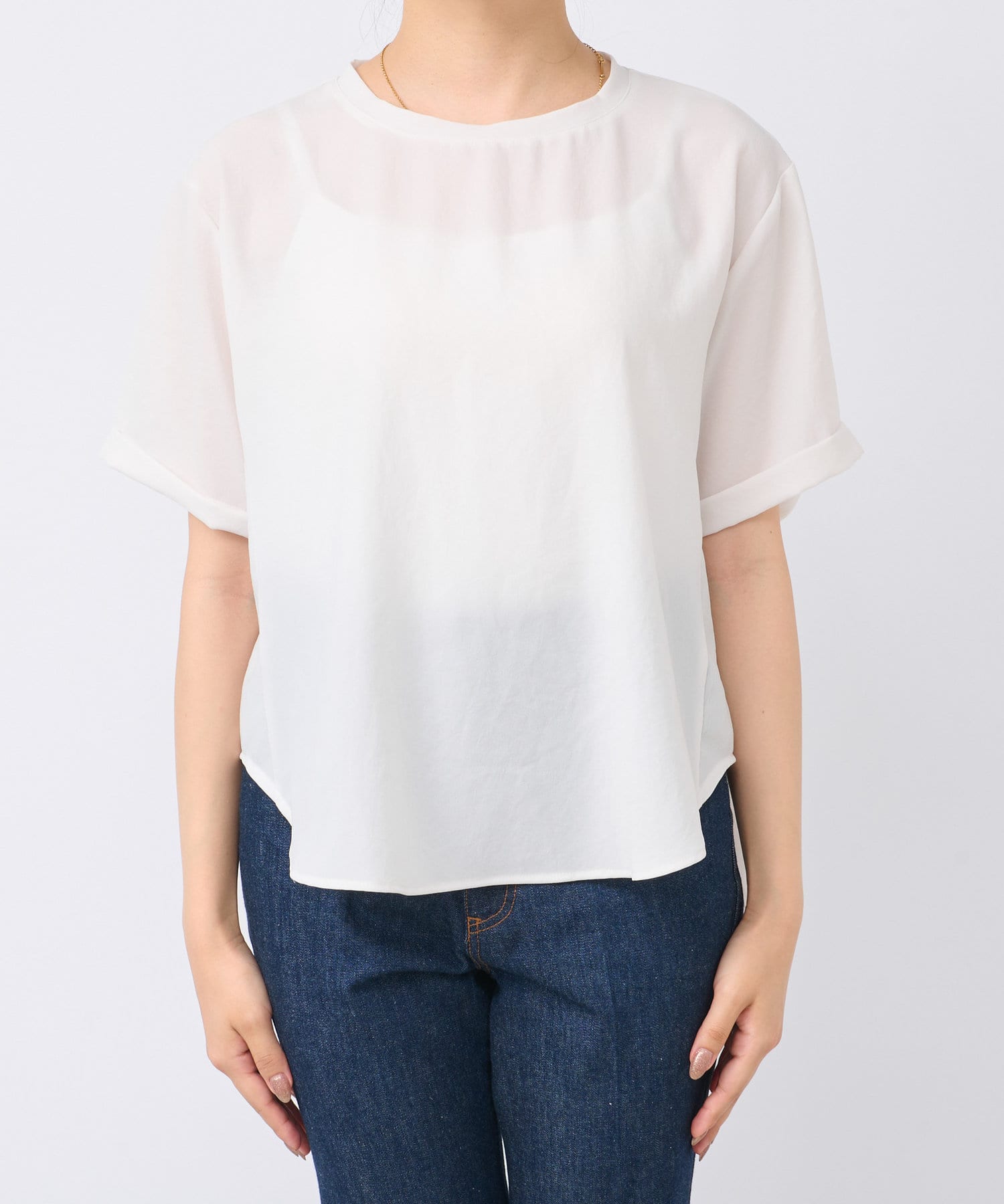 程よく透け感のあるシフォン素材が涼やかなプルオーバーブラウス。