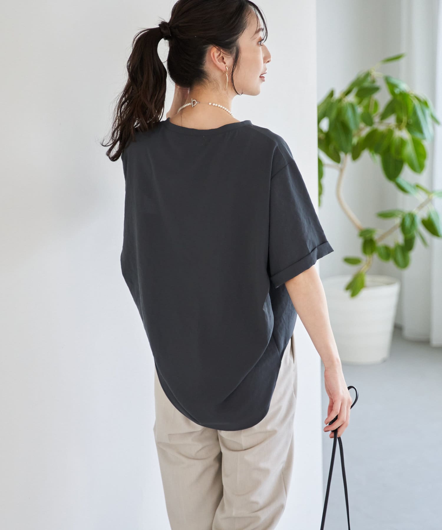 着丈に前後差があるデザインで、後ろ丈は長めになっているので、