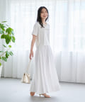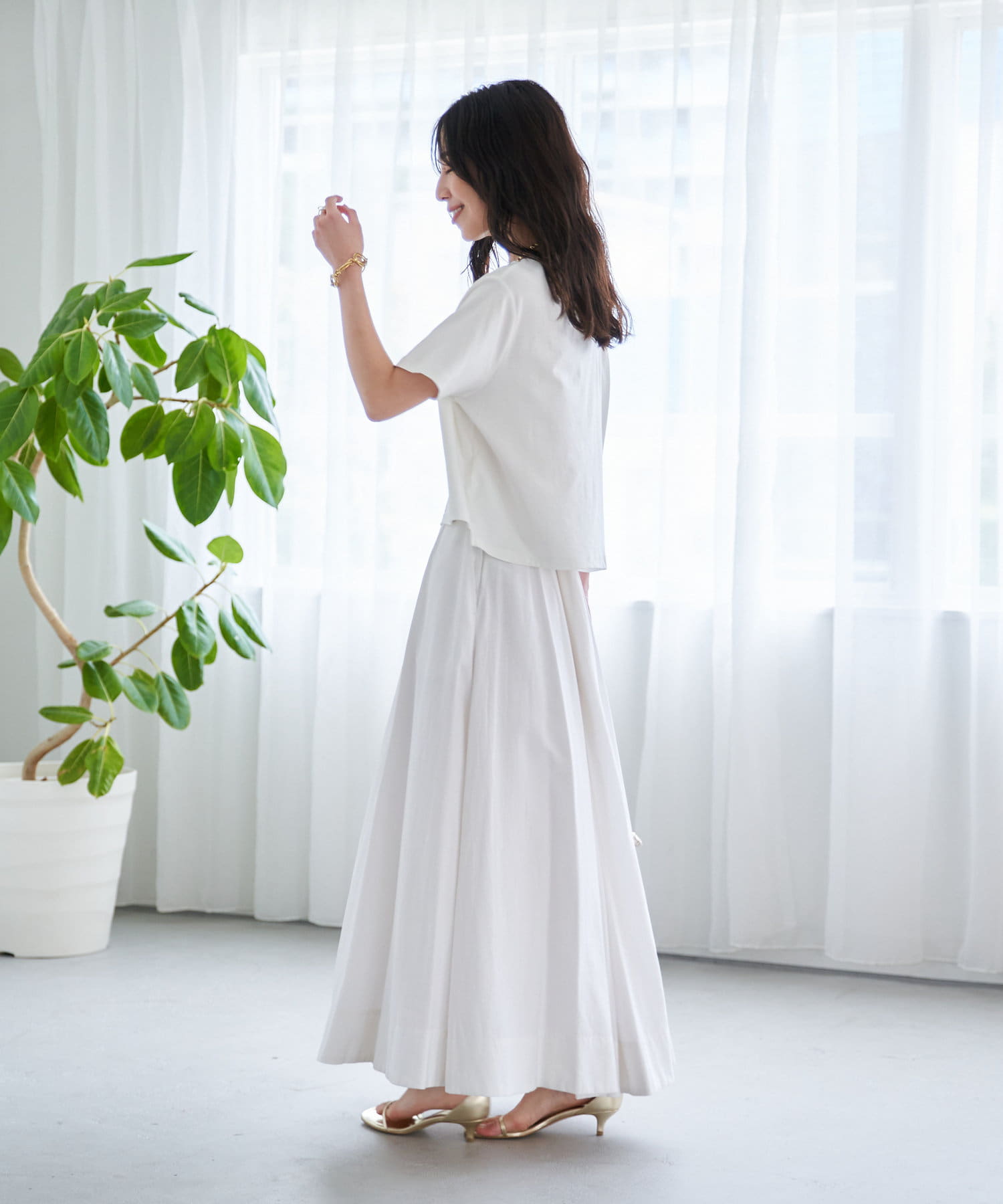 コンパクトなシルエットはワイドパンツやスカートとも好相性。