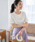 カジュアルになりすぎず女性らしさを演出してくれるTシャツ。