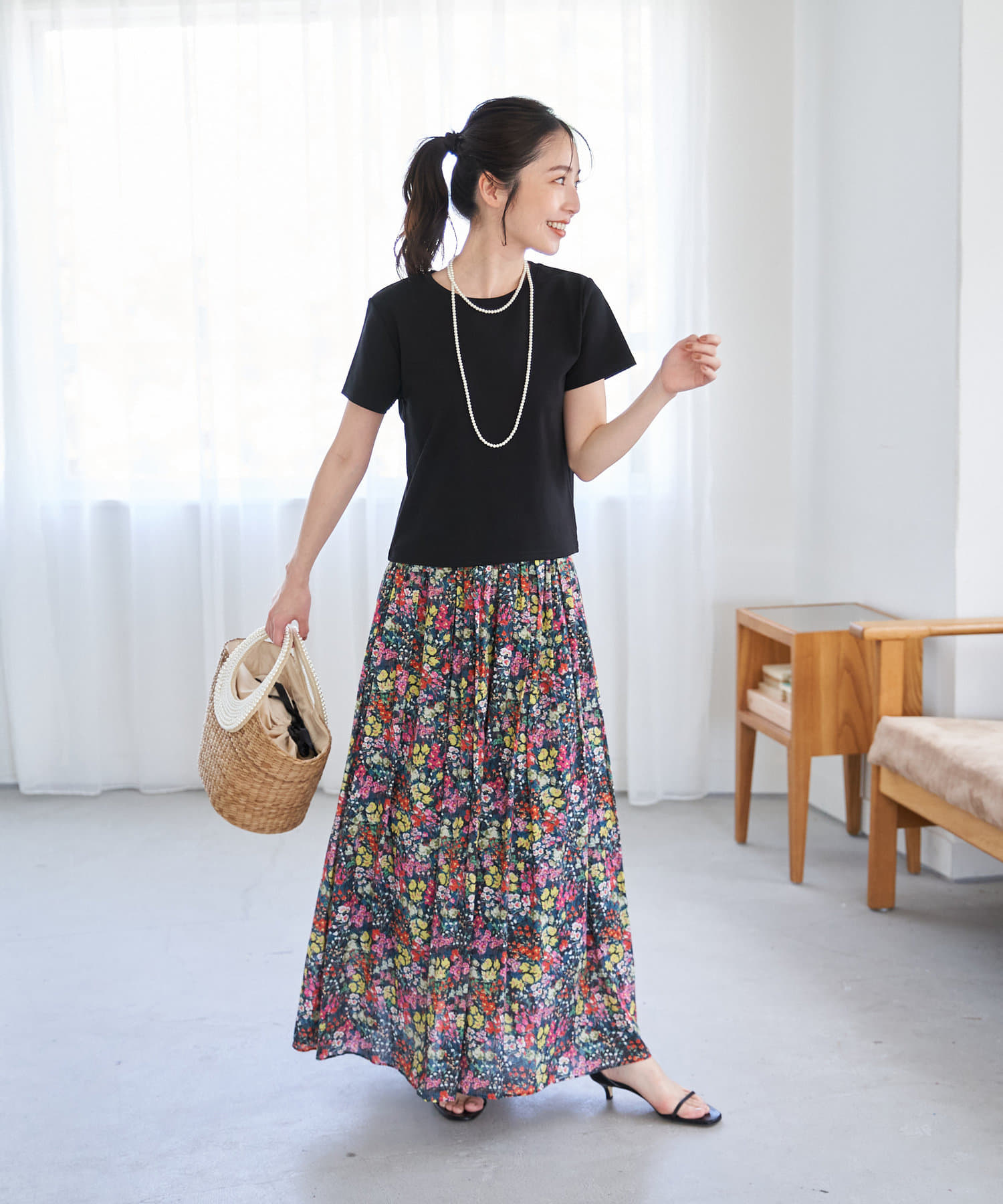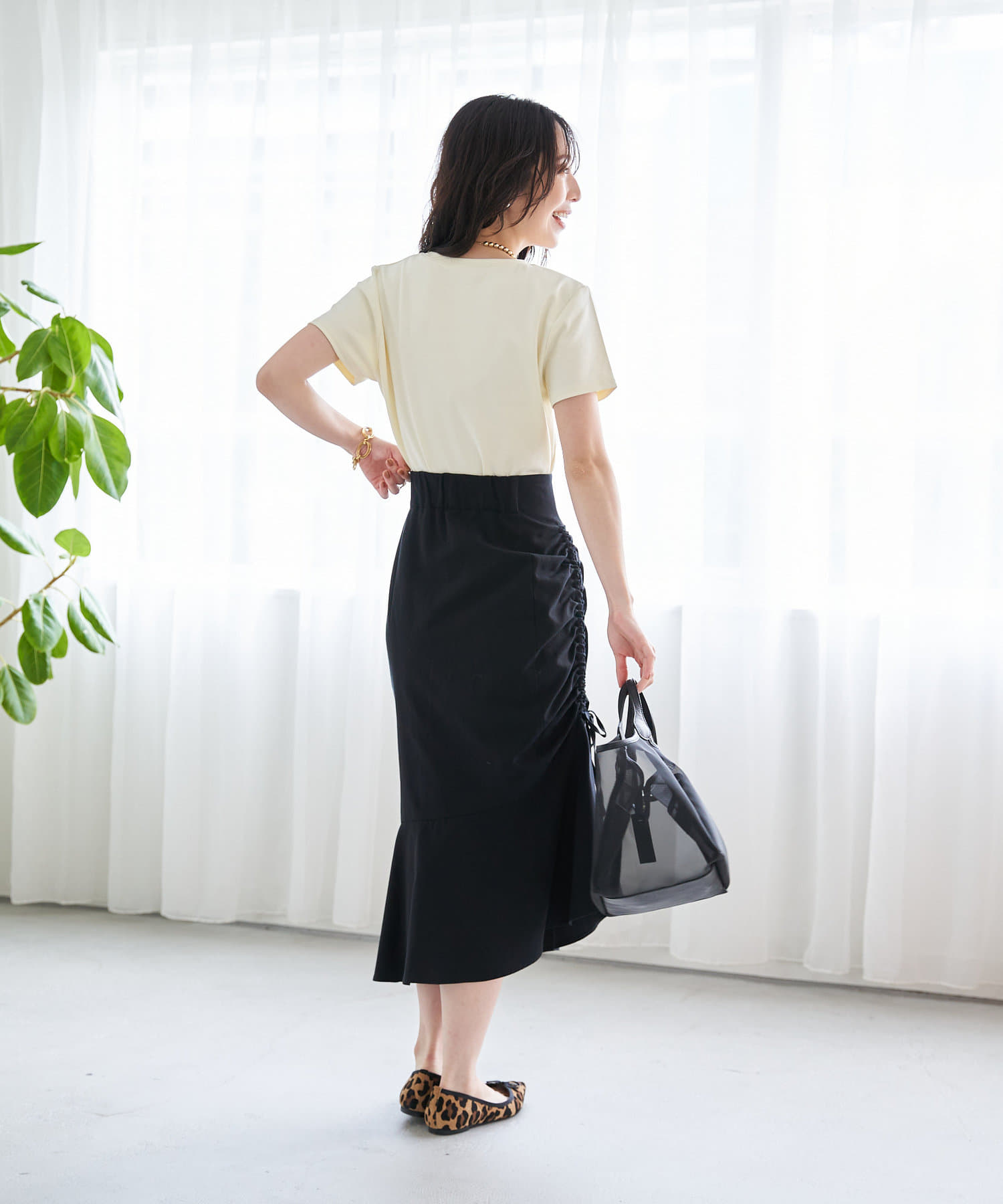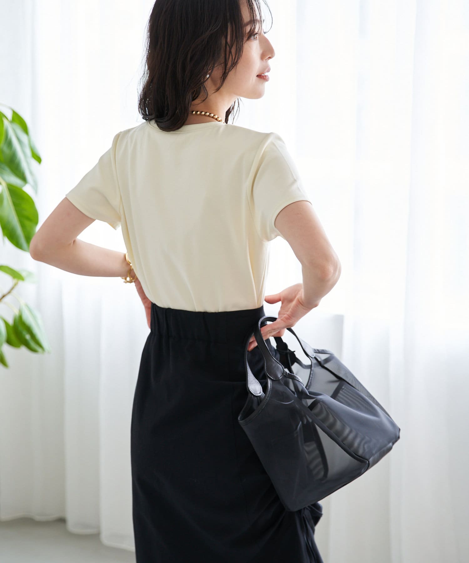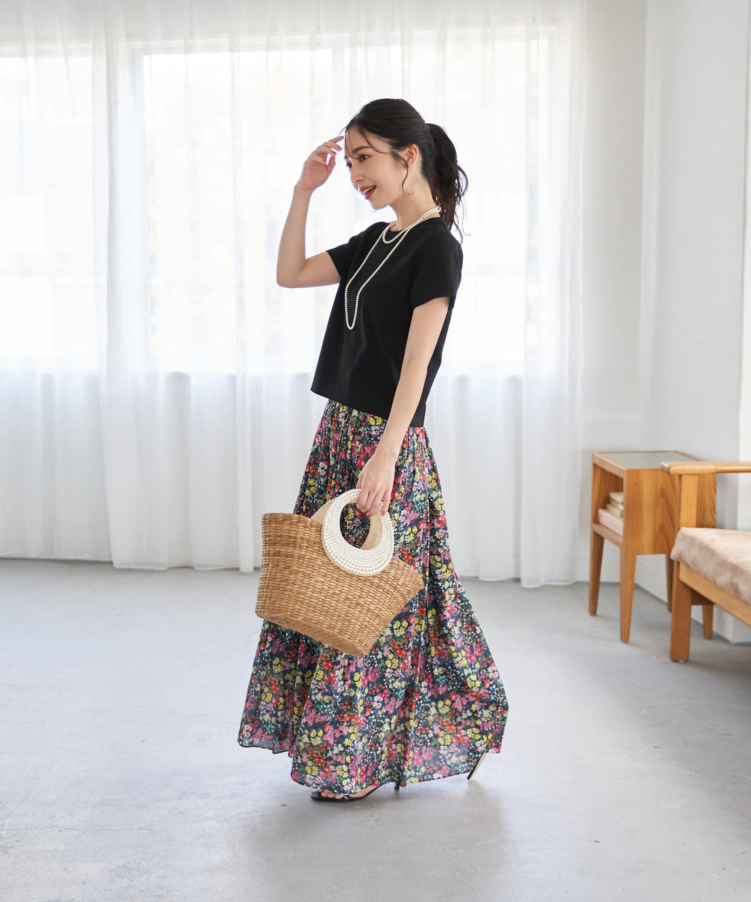 スカートやワイドパンツ、また、ハイウエストのボトムにもおすすめ。