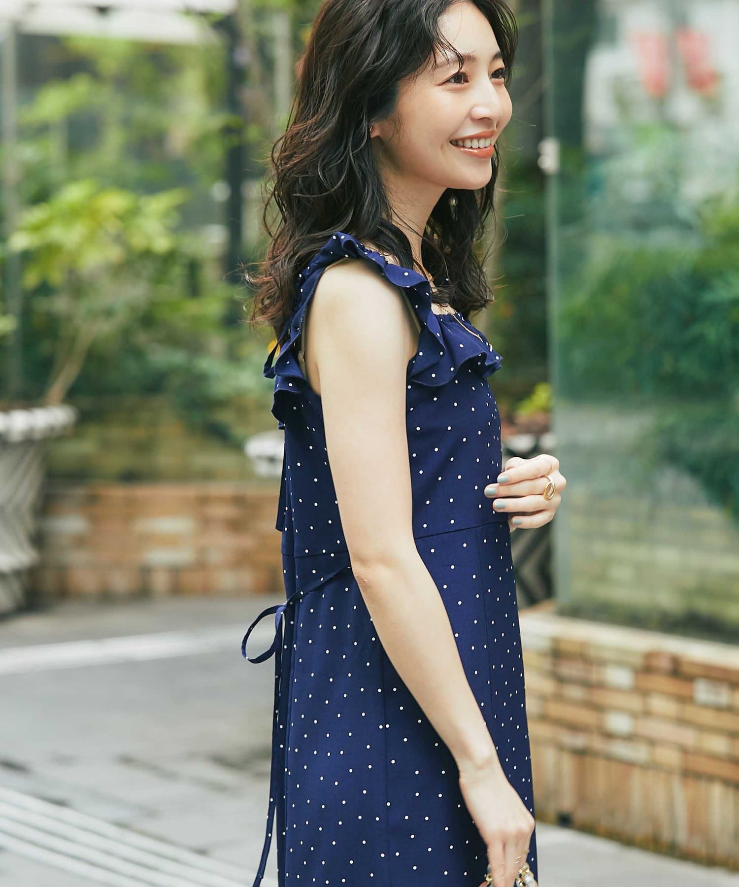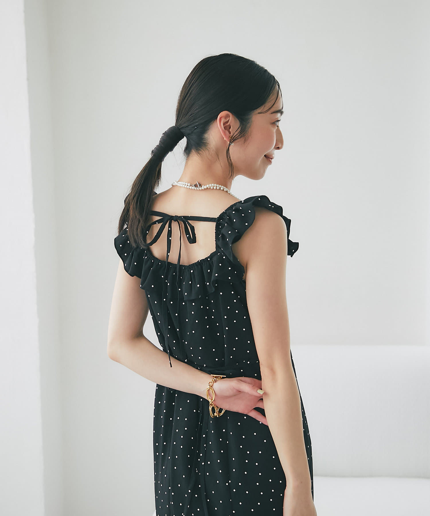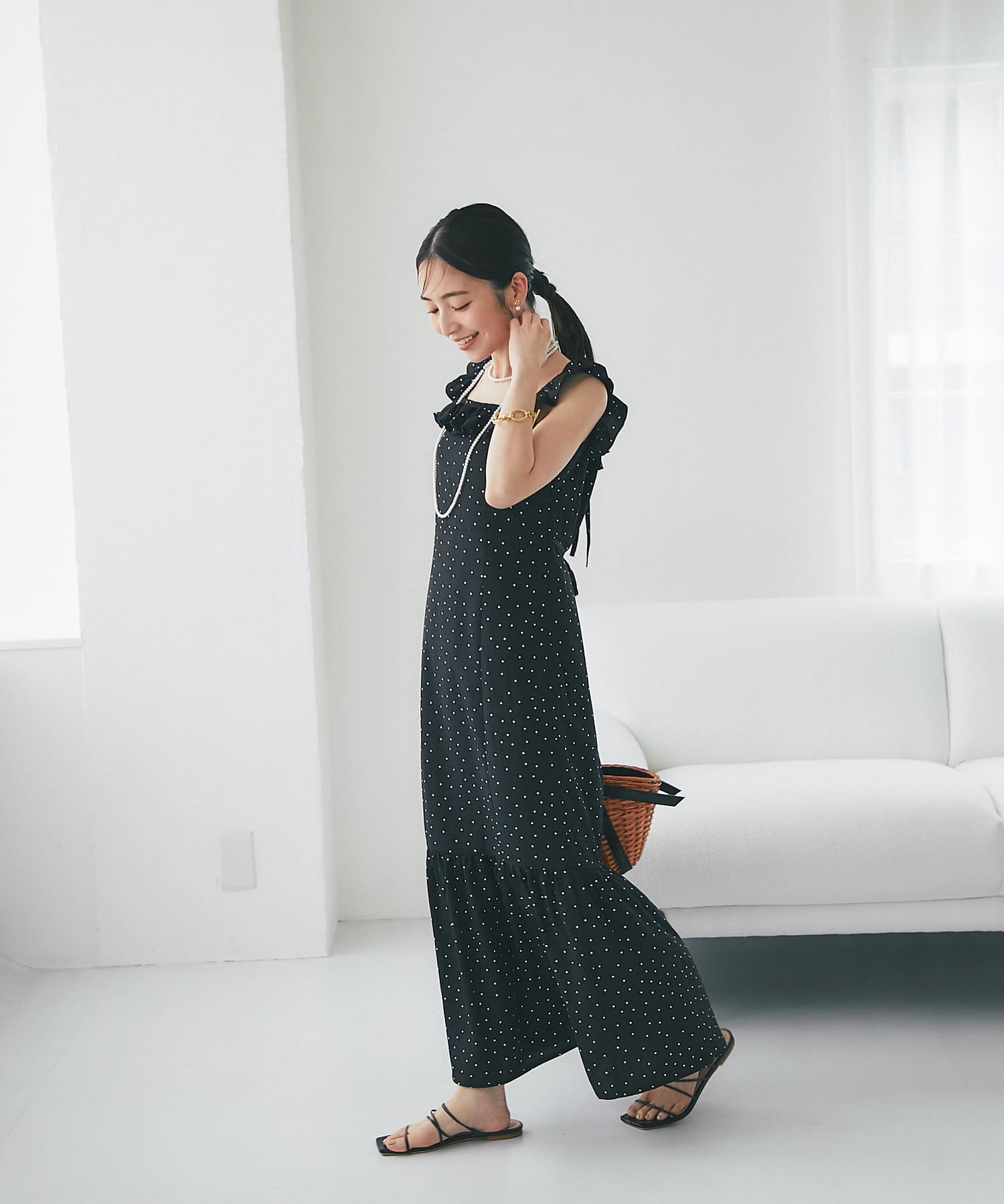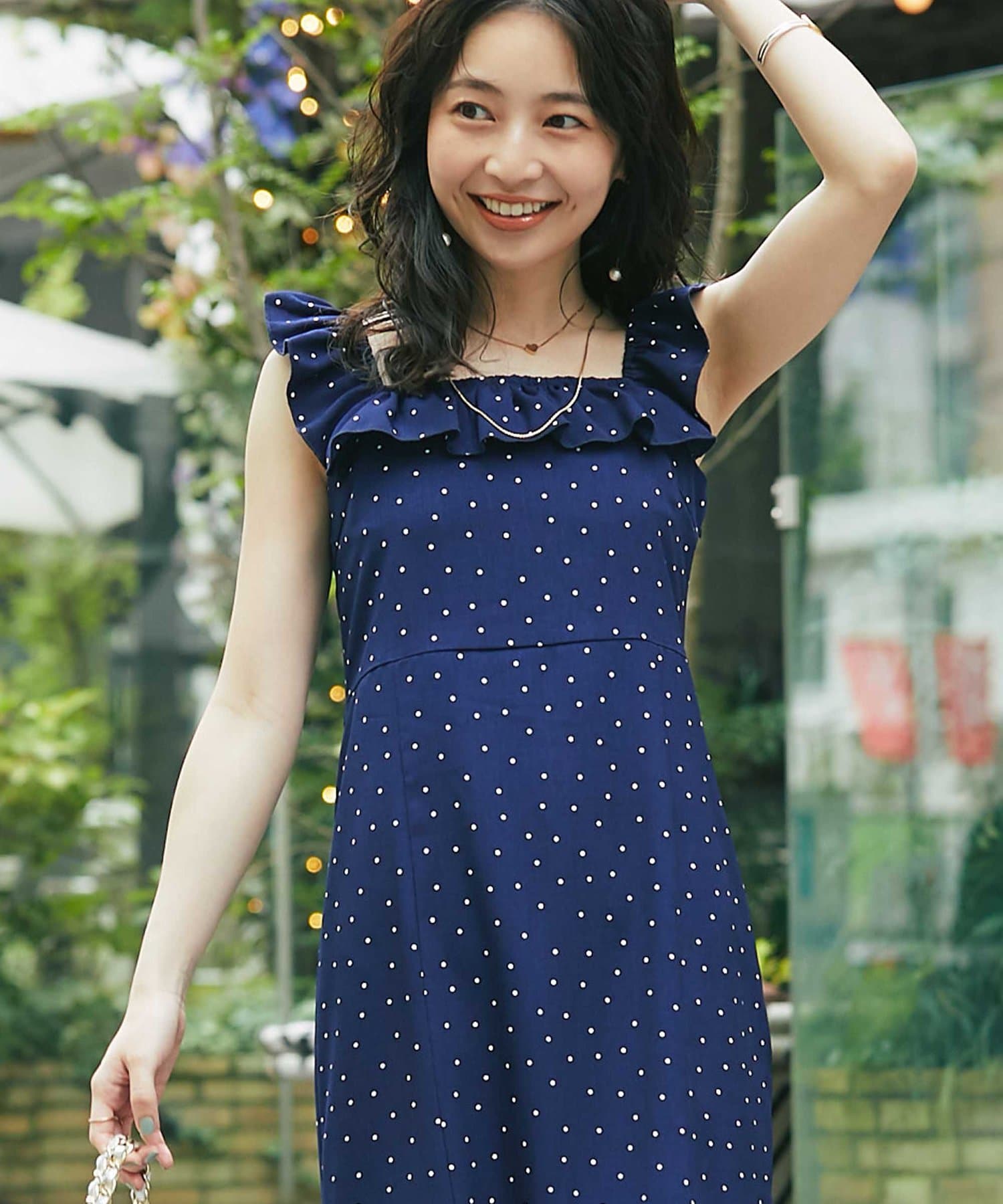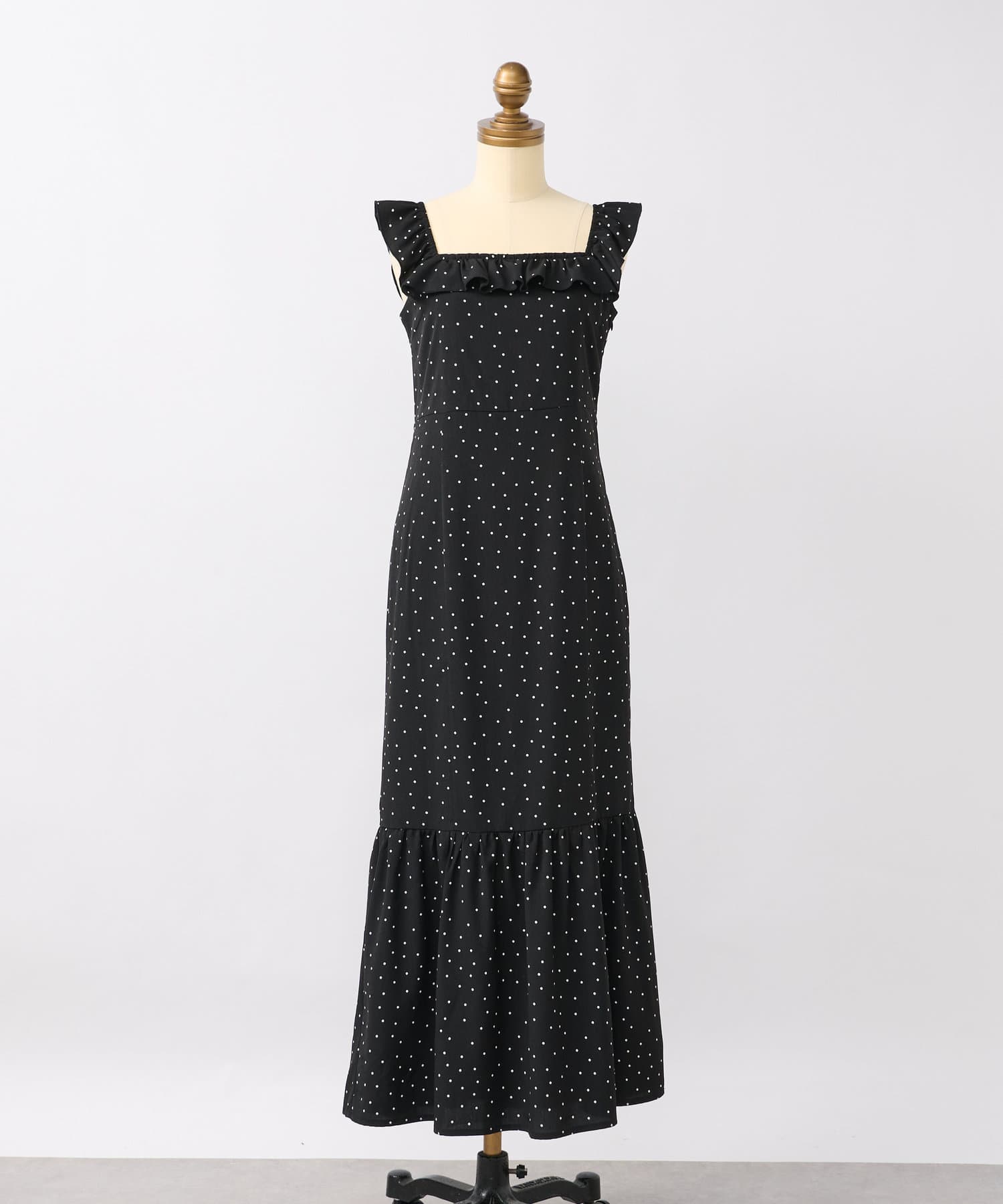 【miki監修・3サイズ展開】ドットプリントフリルトリムマーメイドワンピース