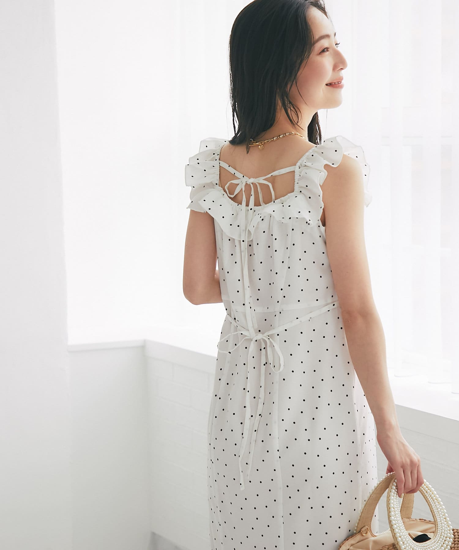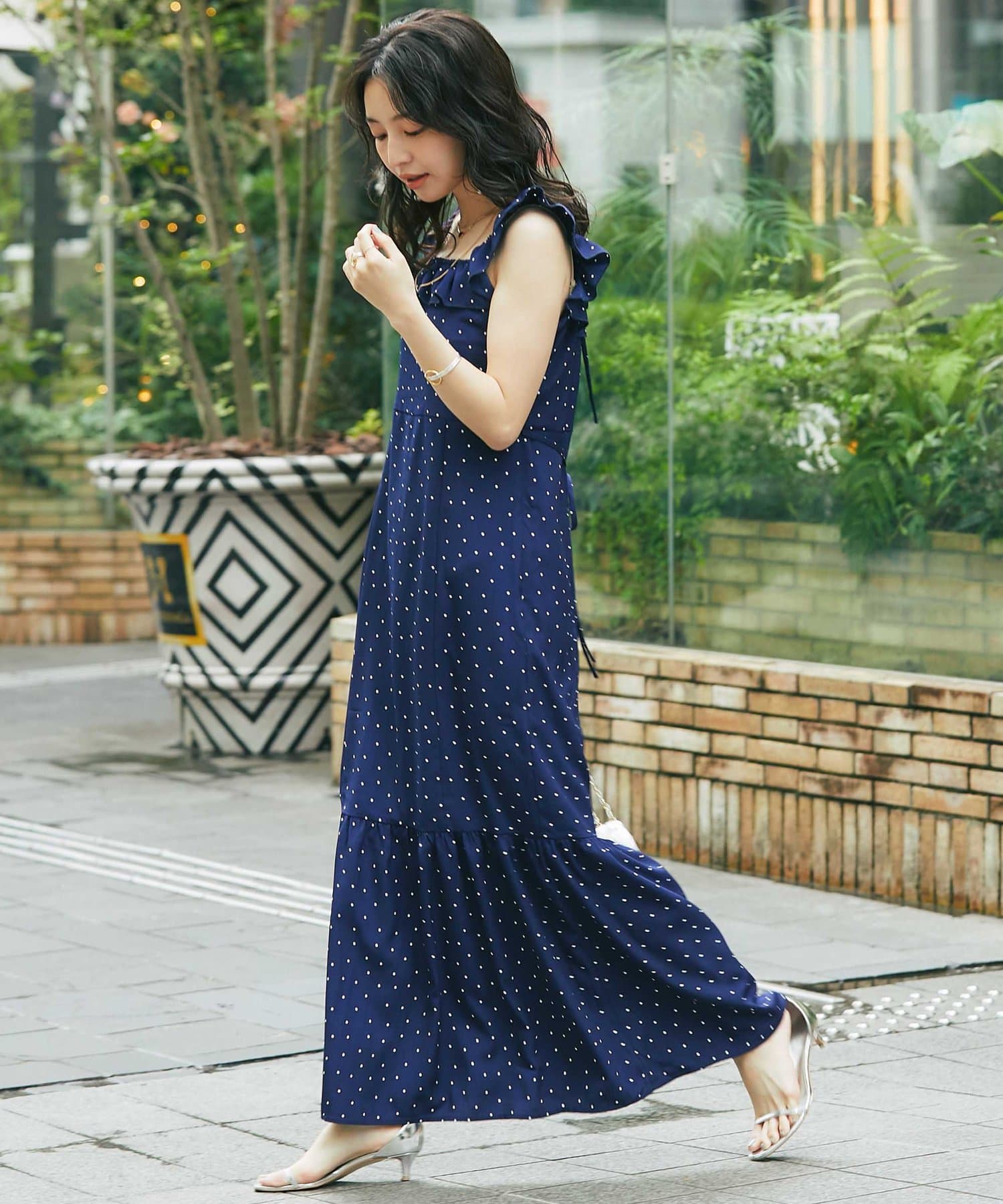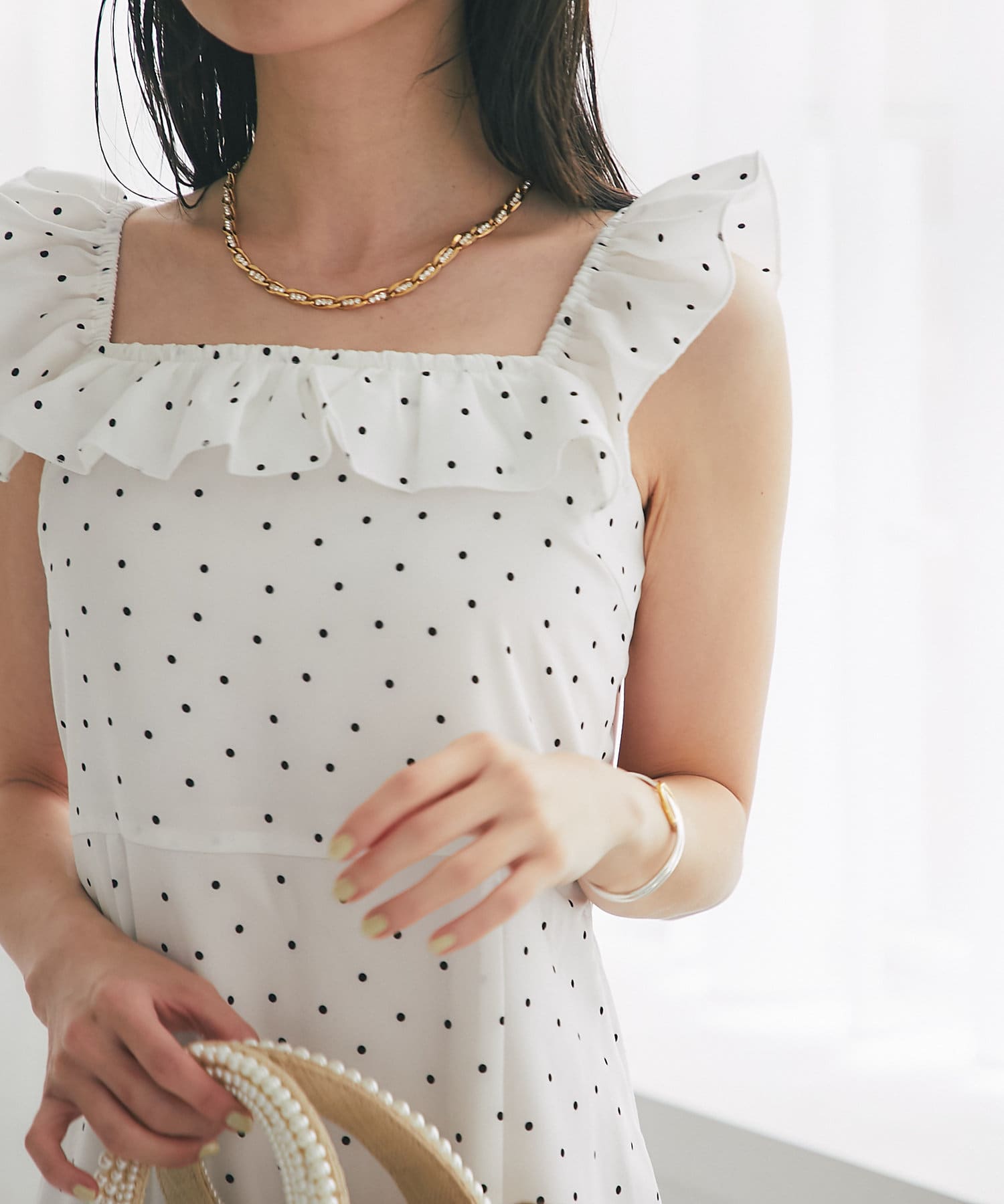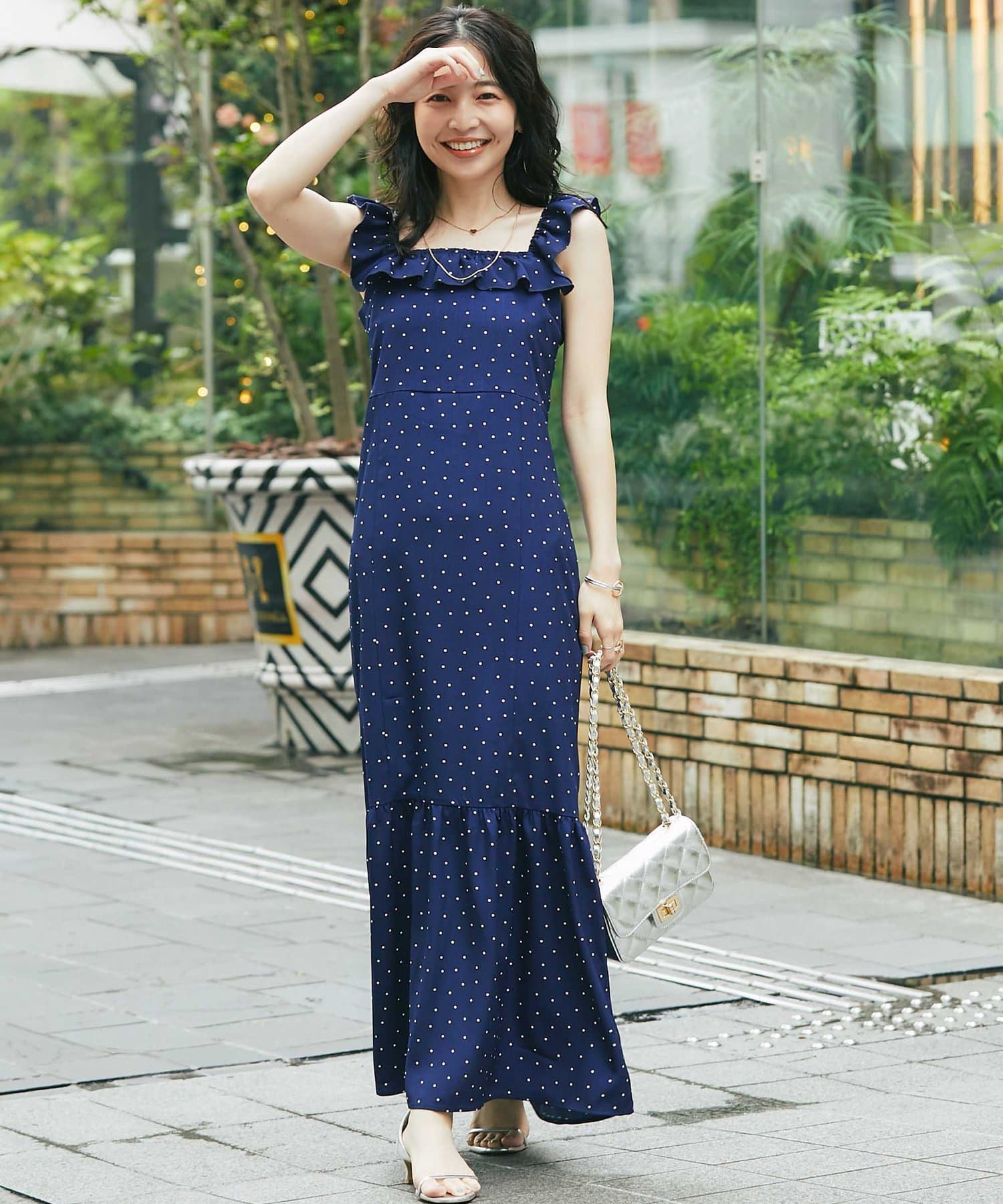 【miki監修・3サイズ展開】ドットプリントフリルトリムマーメイドワンピース