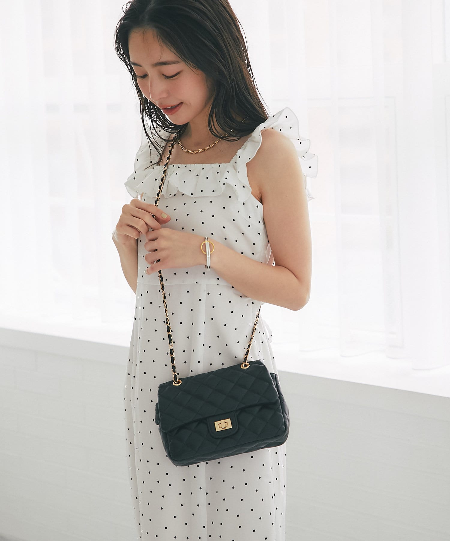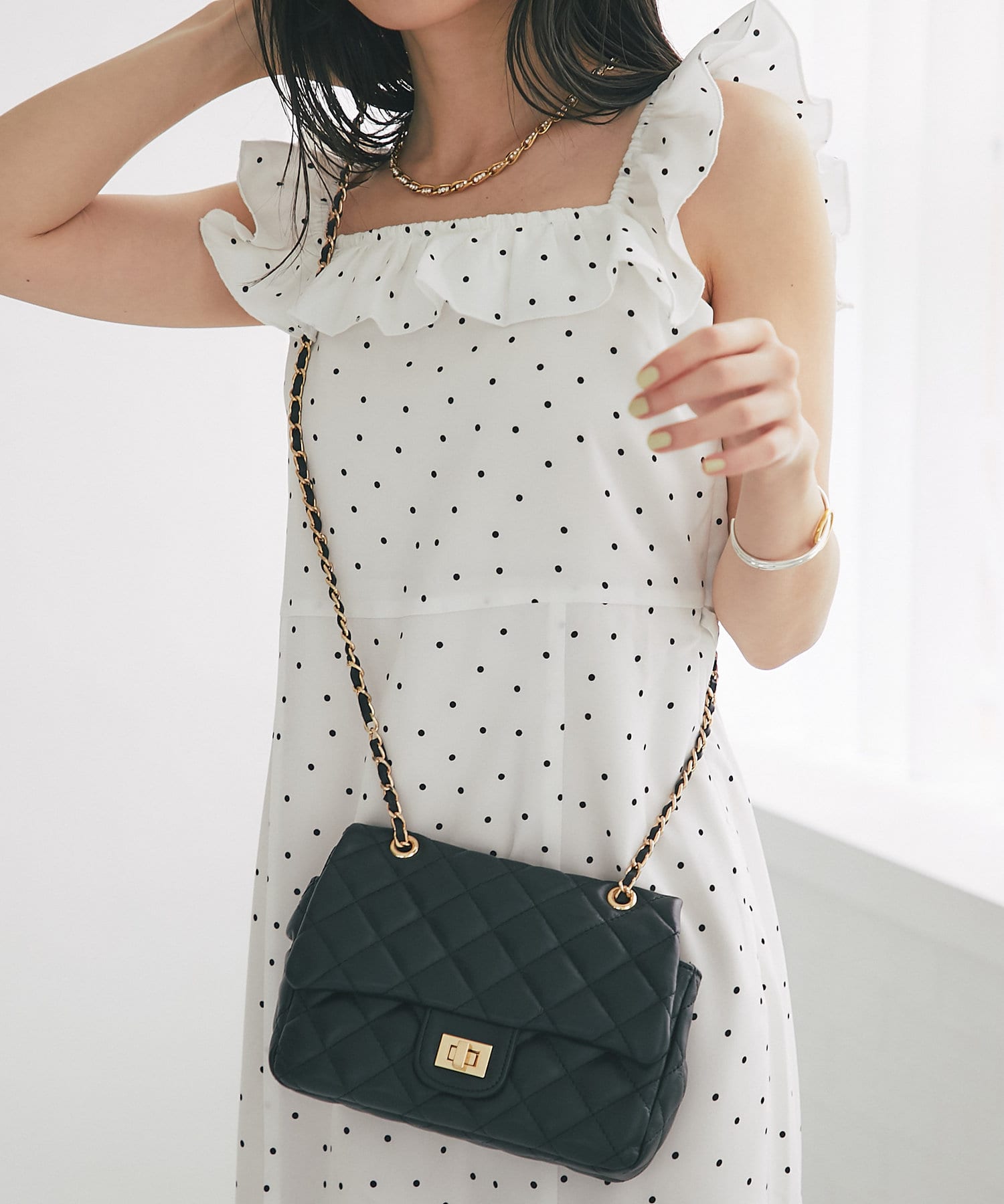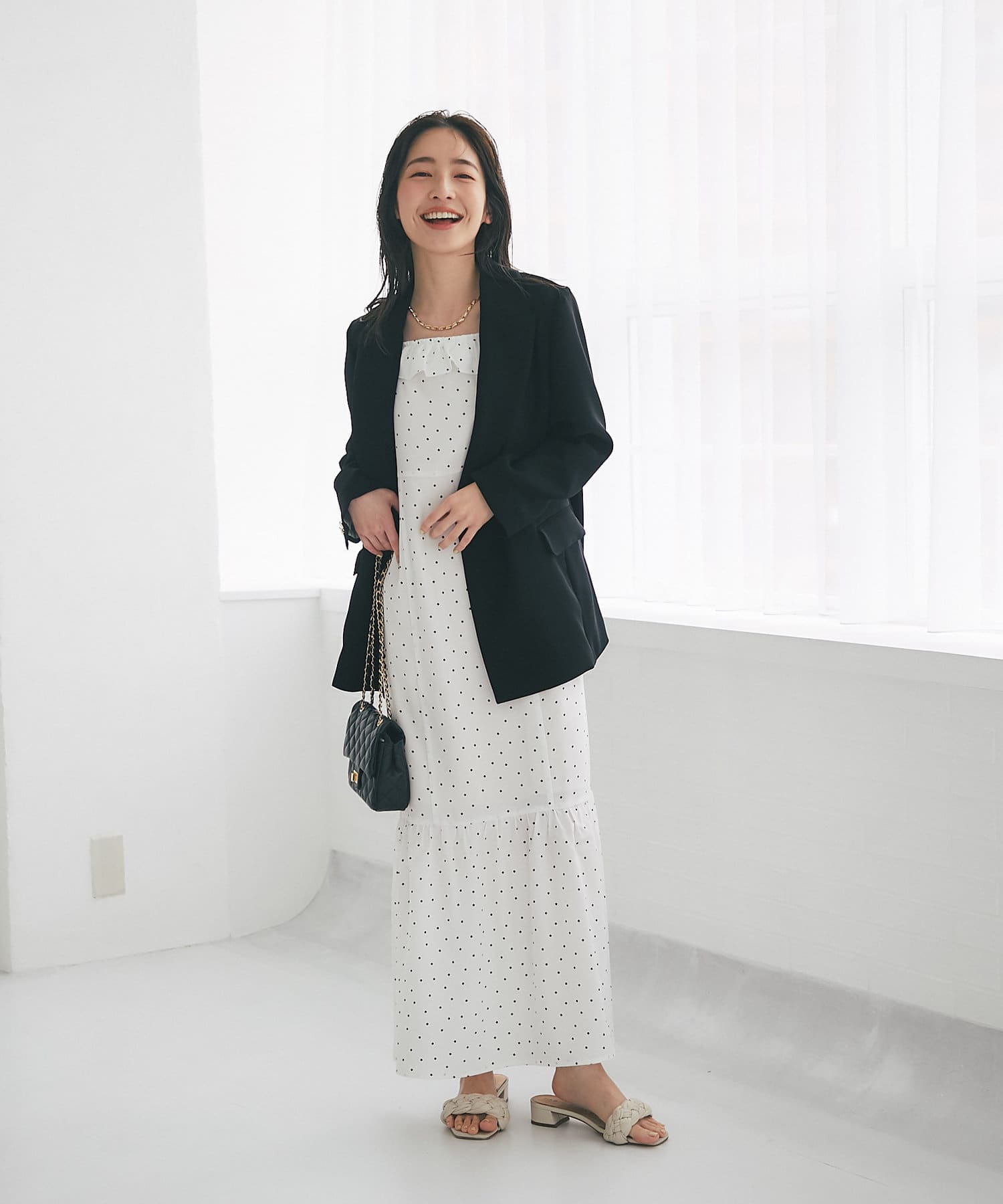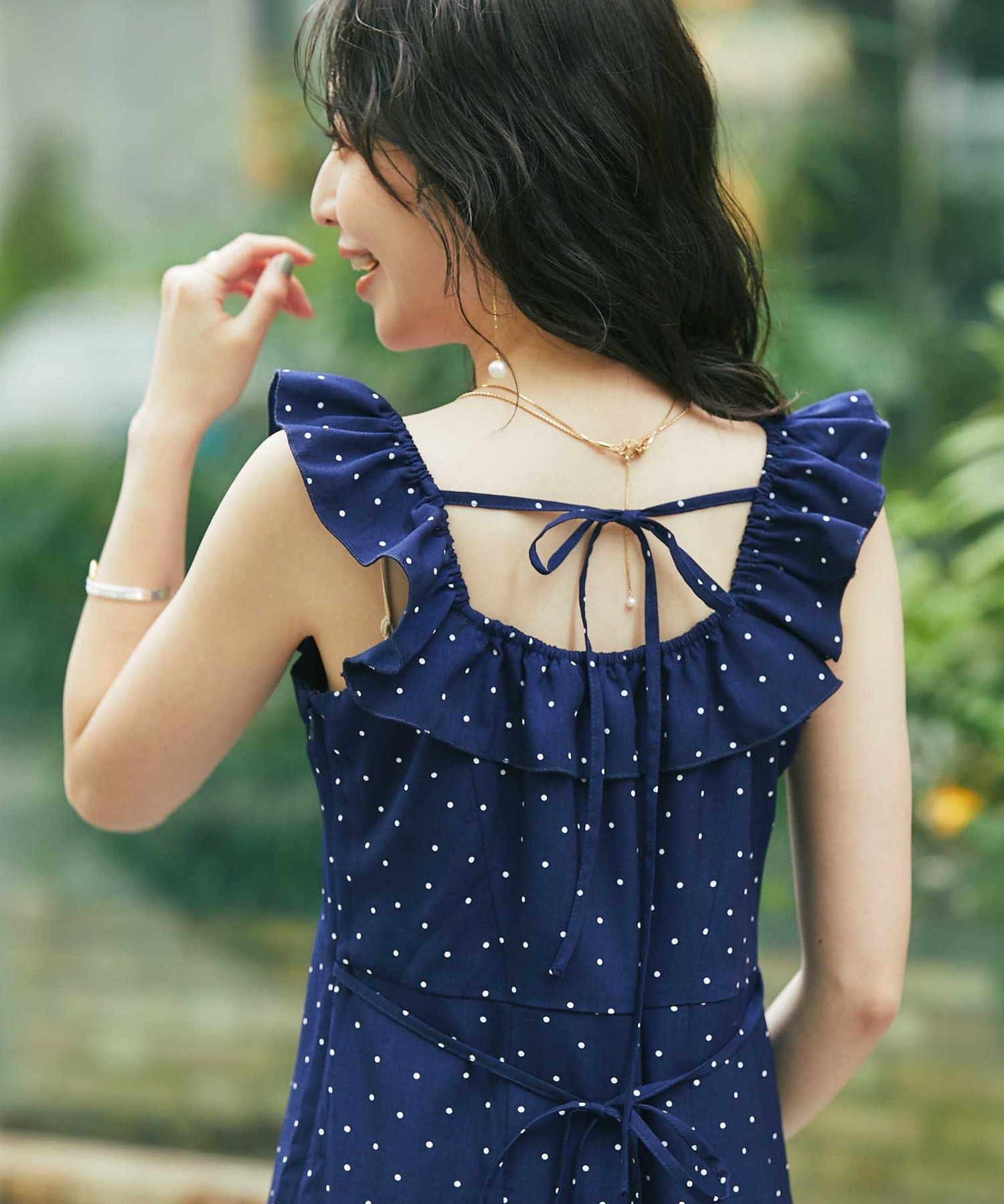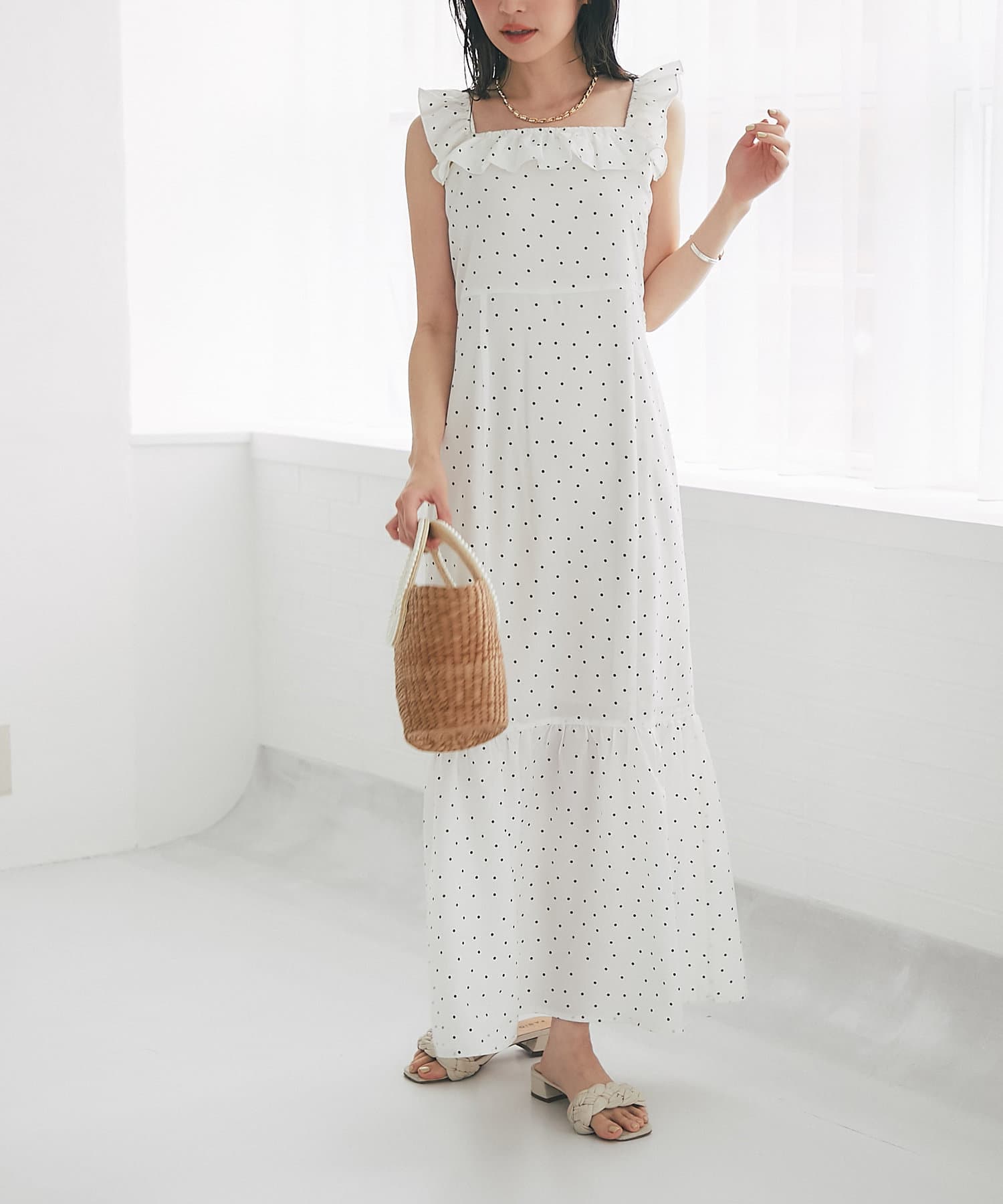 【miki監修・3サイズ展開】ドットプリントフリルトリムマーメイドワンピース