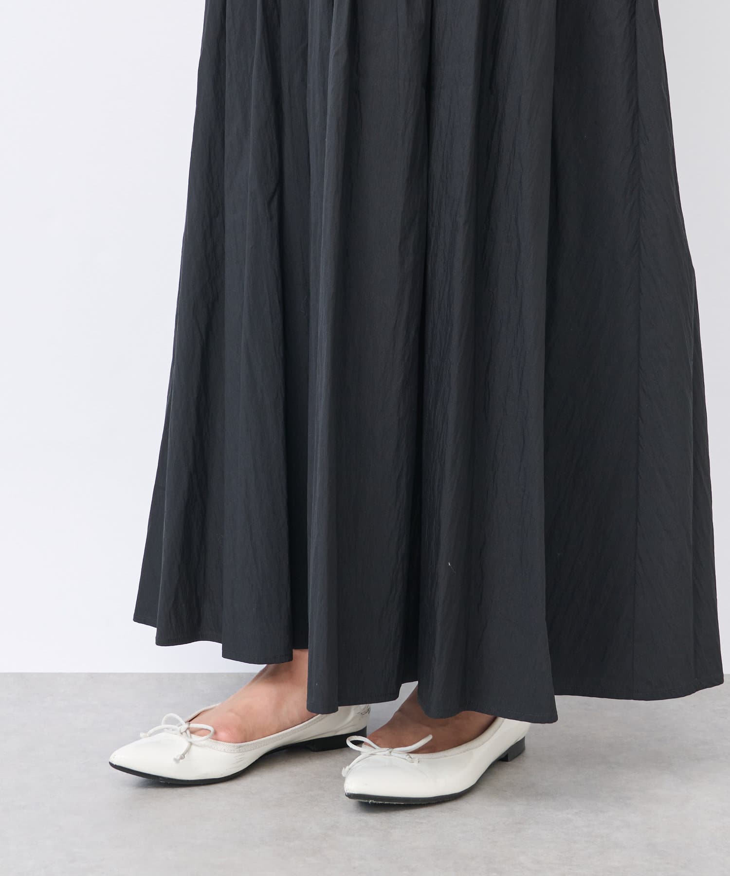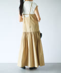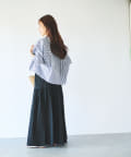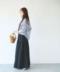 カジュアルな素材ながら、身頃のパネル切り替えやボリュームのあるスカートで