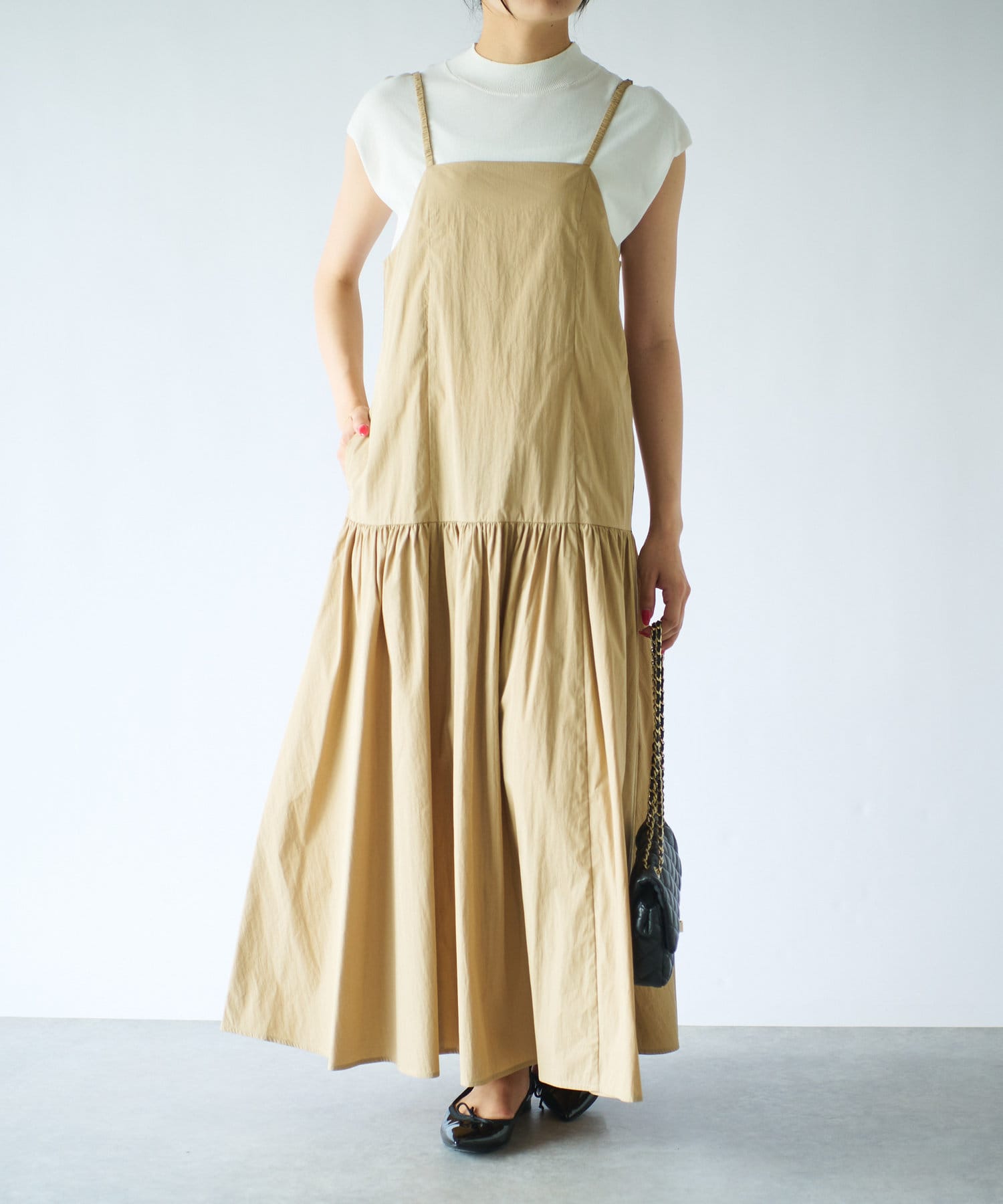 レイヤードスタイルが楽しめる、大人のキャミワンピ