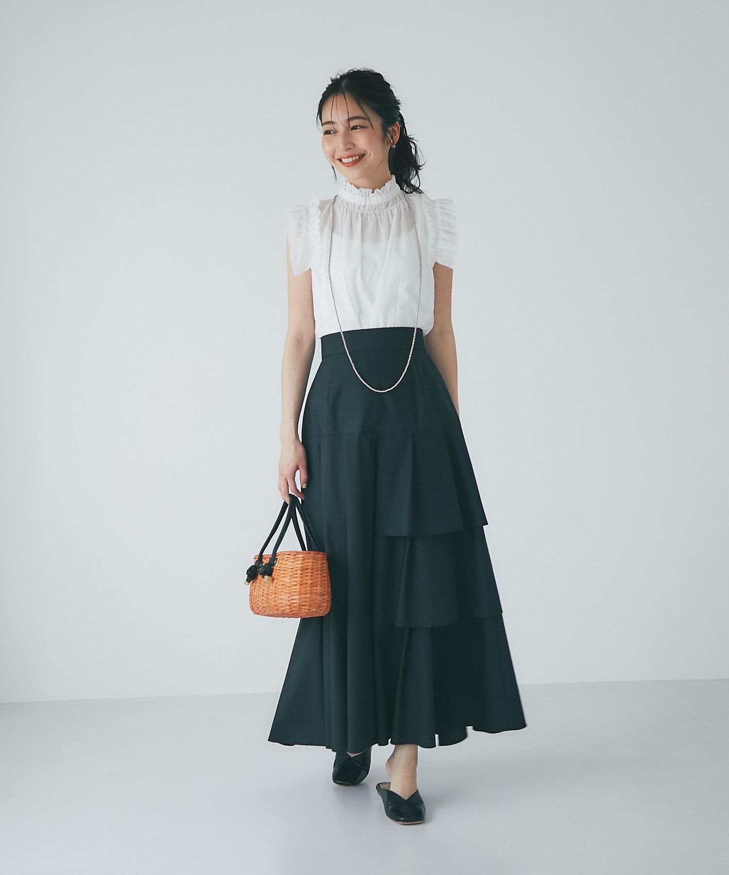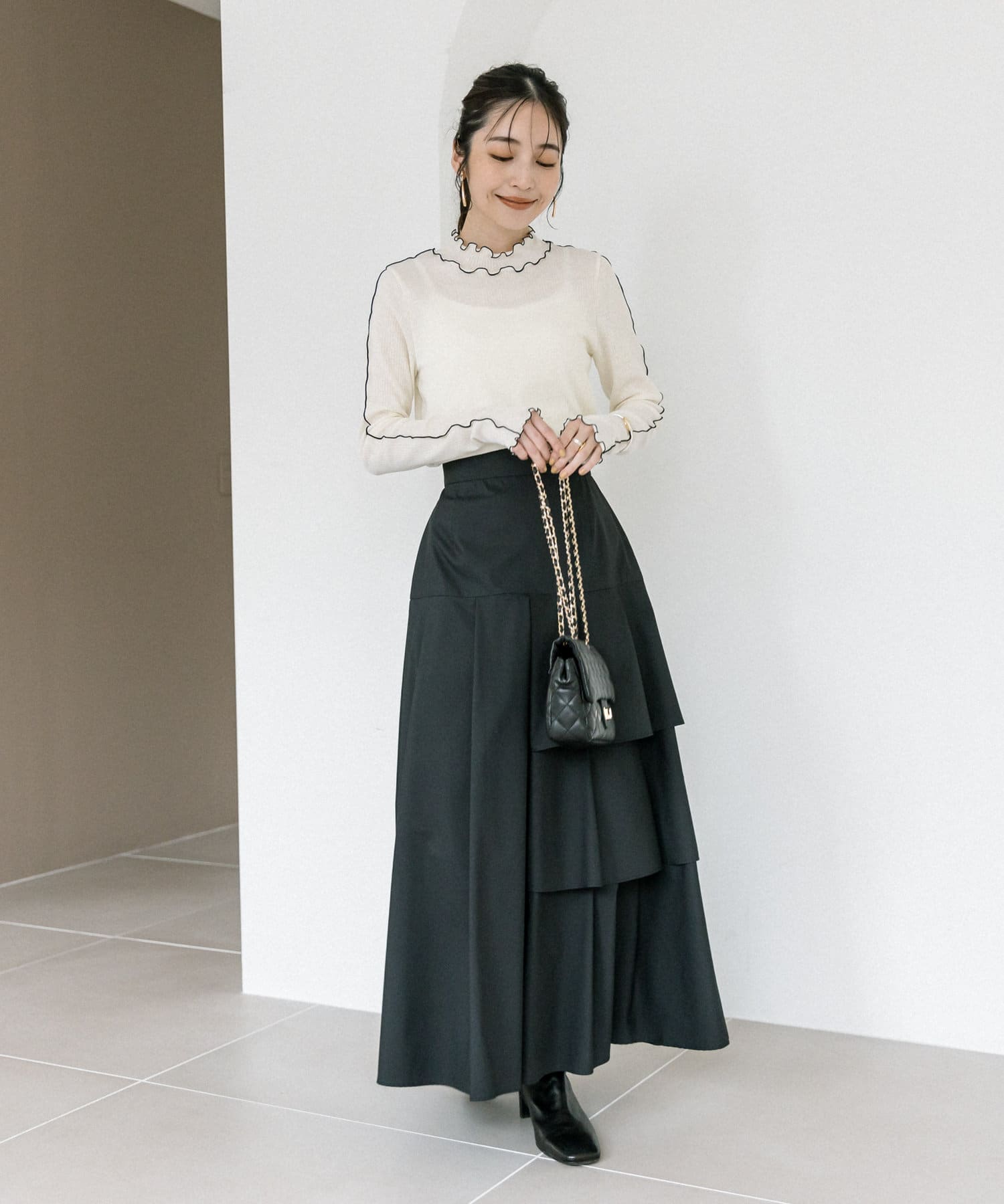 #大人コーデ #きれいめコーデ #上品コーデ #大人女子 #大人ガーリー #上品スカート #ティアード #無地 #ハイウエスト #フレア #マキシ丈 #マキシスカート #ロングスカート #美シルエット #フェミニン #オフィス #デート #デート服 #モテ服 #モテ女子 #モテコーデ #スタイルアップ