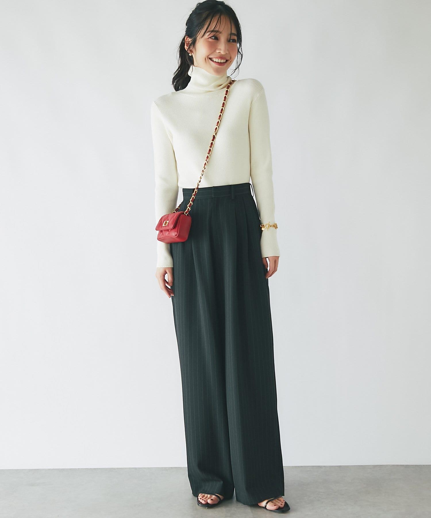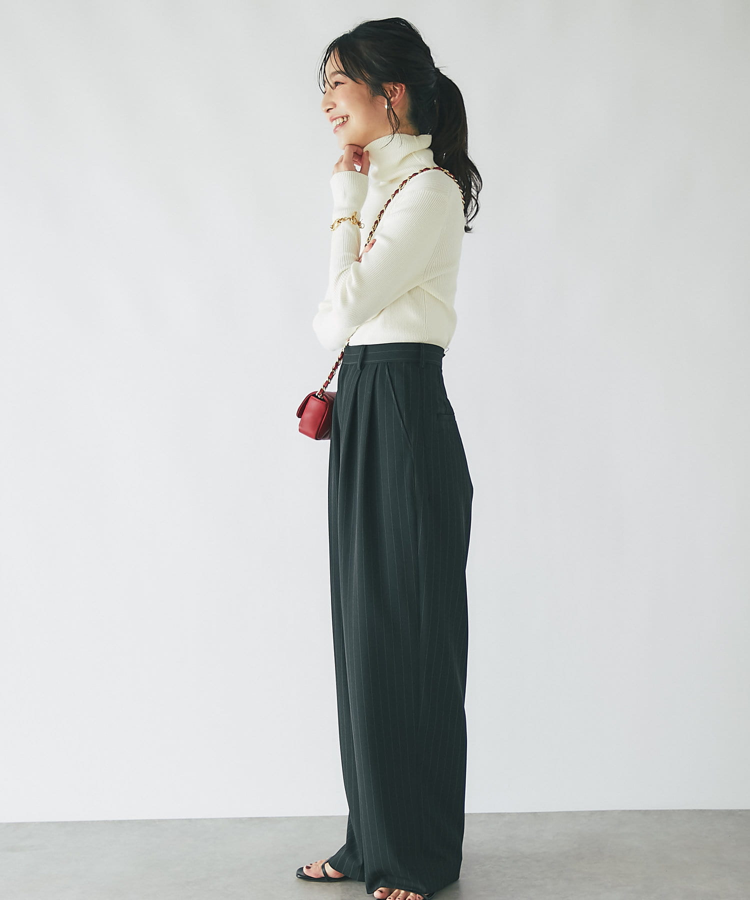 太めのワイドシルエットで新鮮なスタイリングが楽しめます。