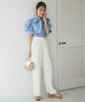 カジュアルボトムを合わせたMIXコーデがおすすめです!