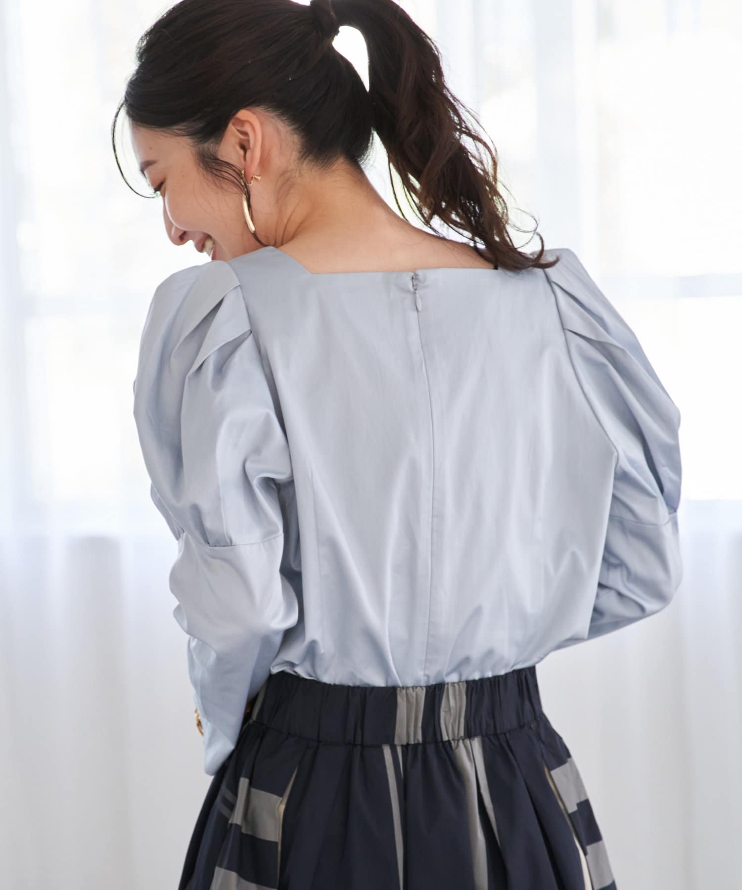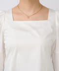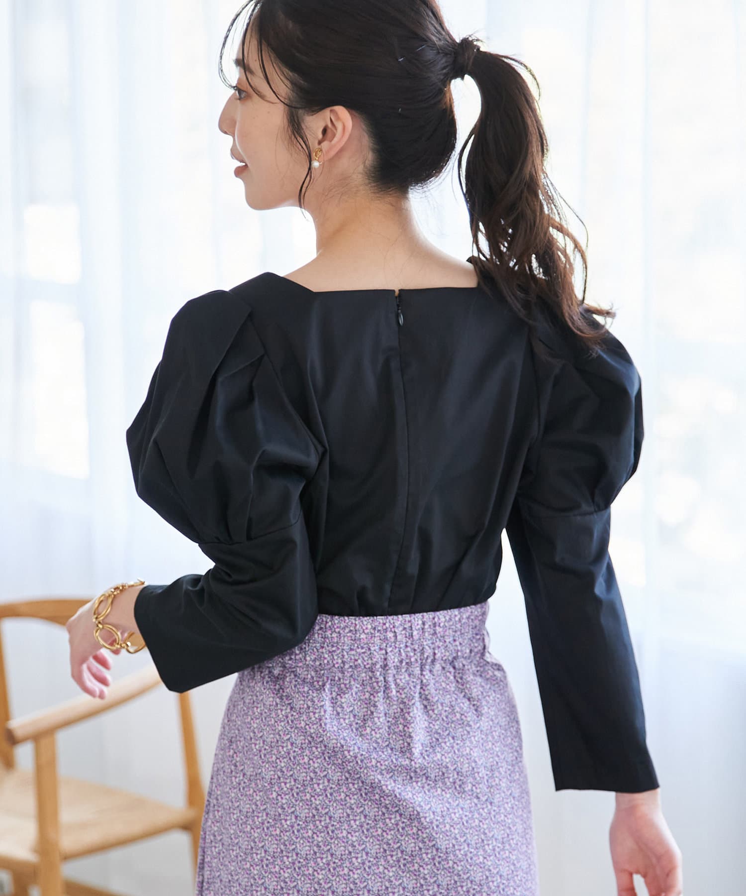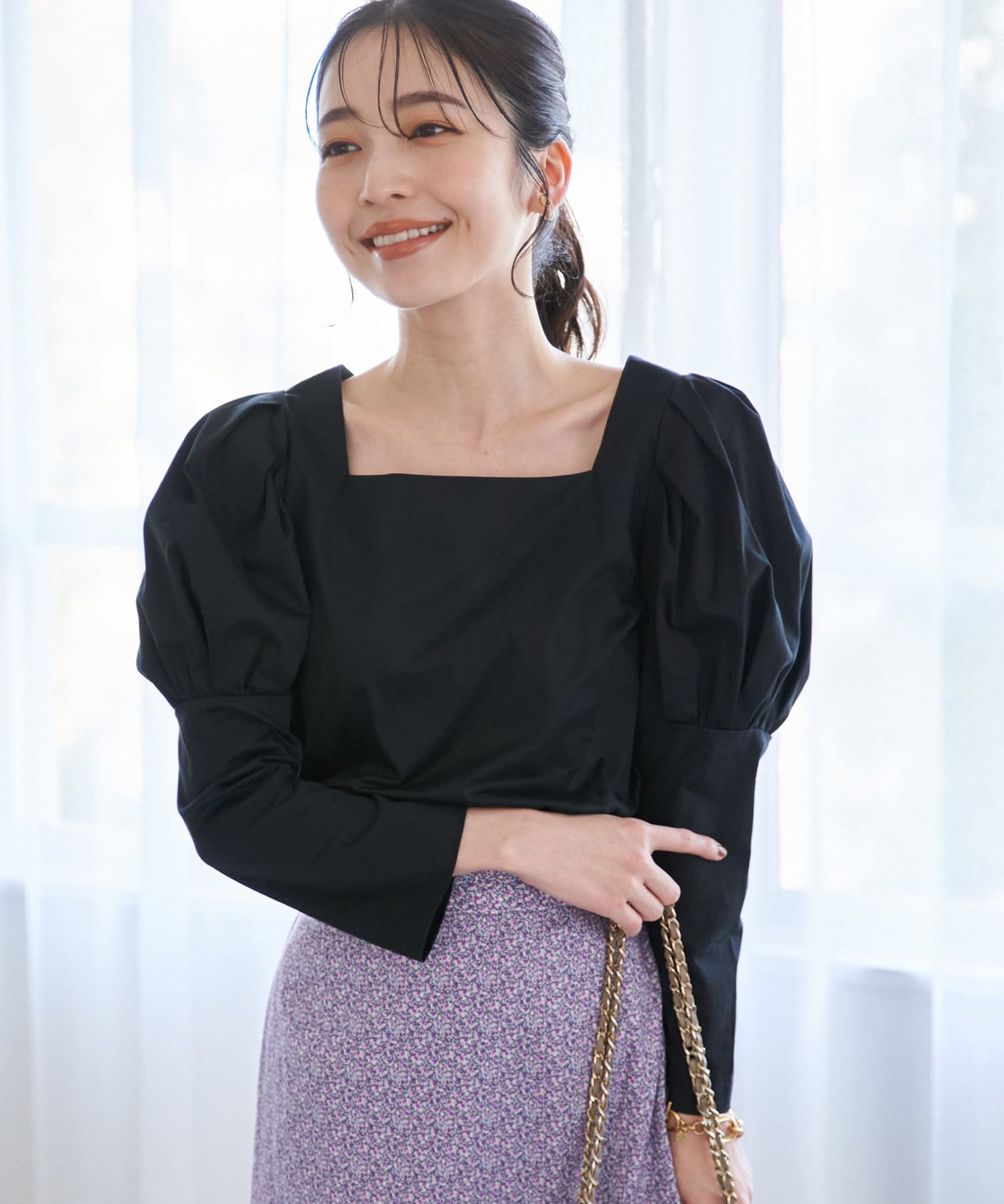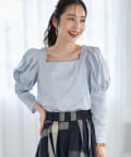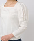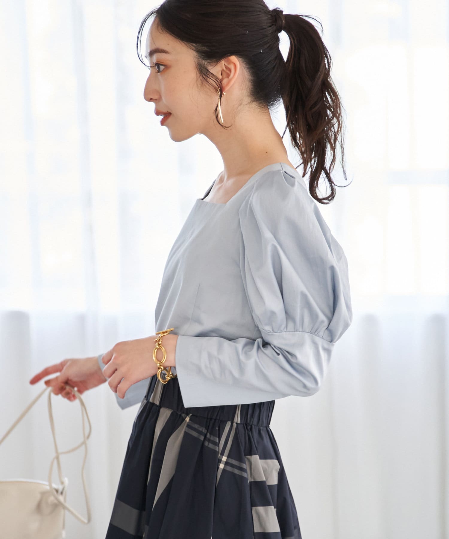 デコルテを美しく演出するスクエアネックと、袖のボリュームと手首の細さの対比で華奢見え効果にも期待できるアイテム。