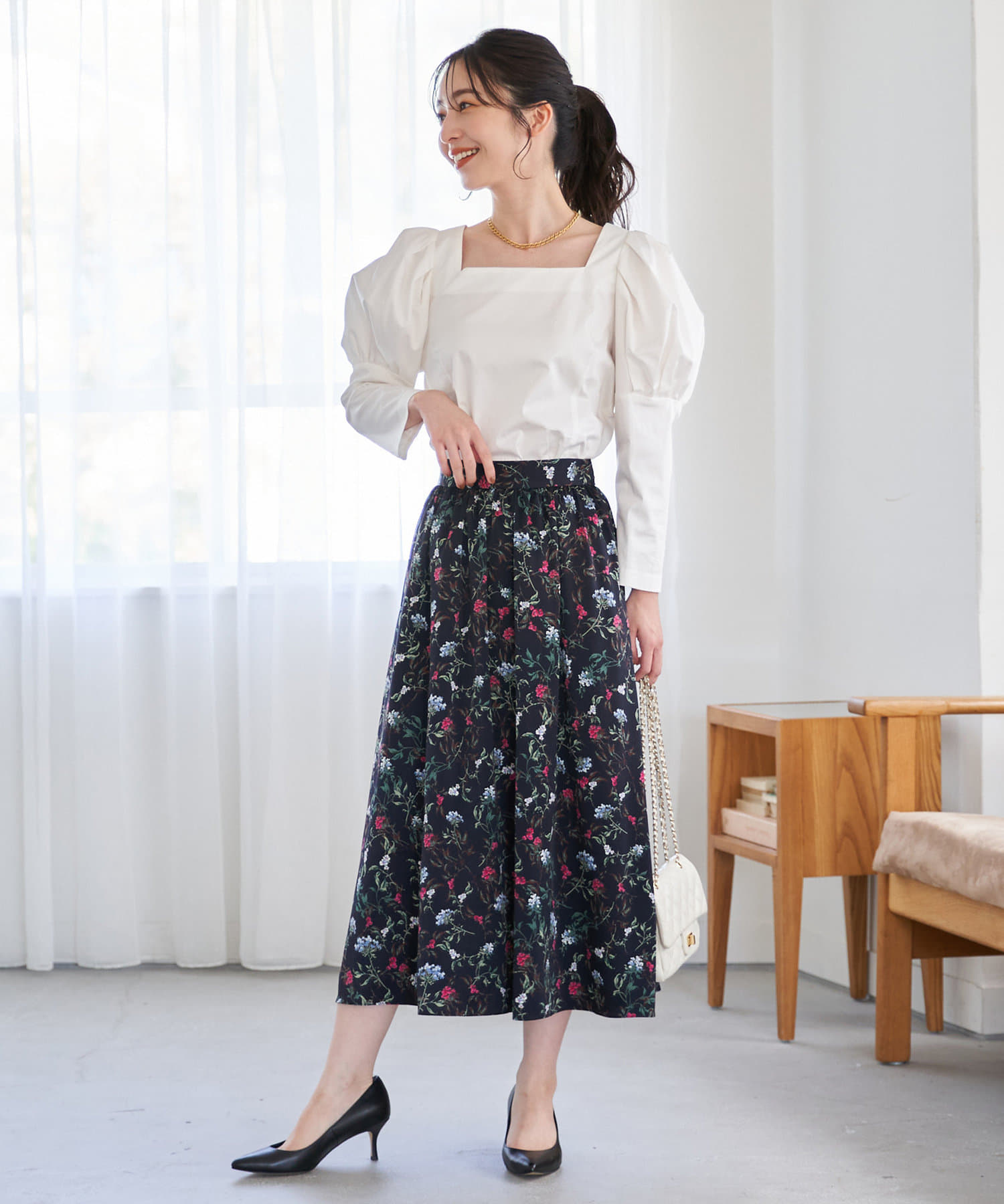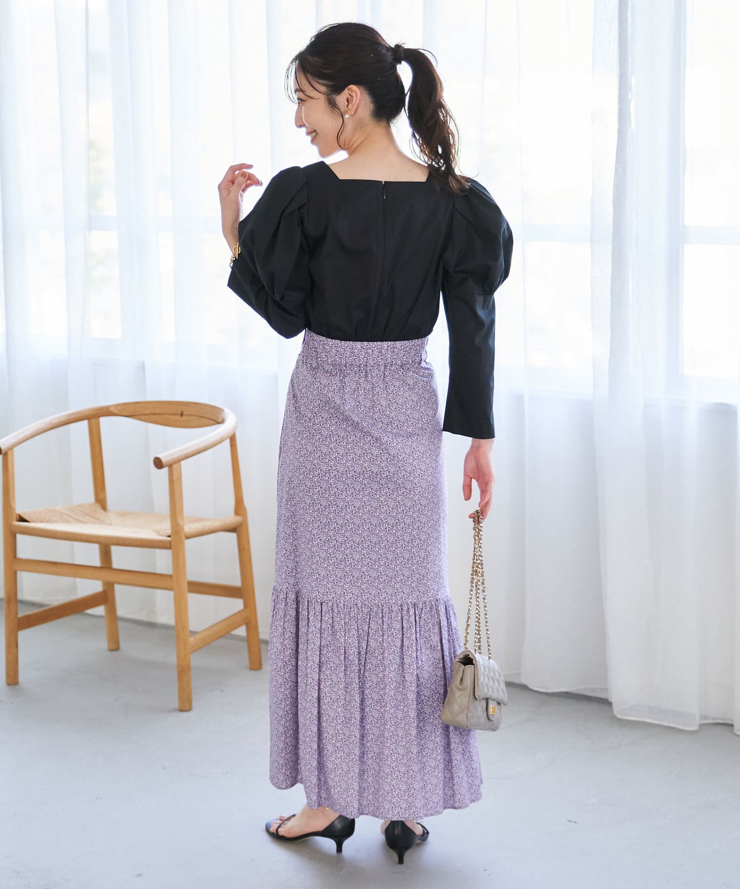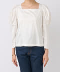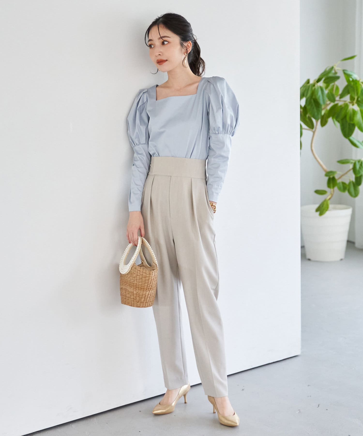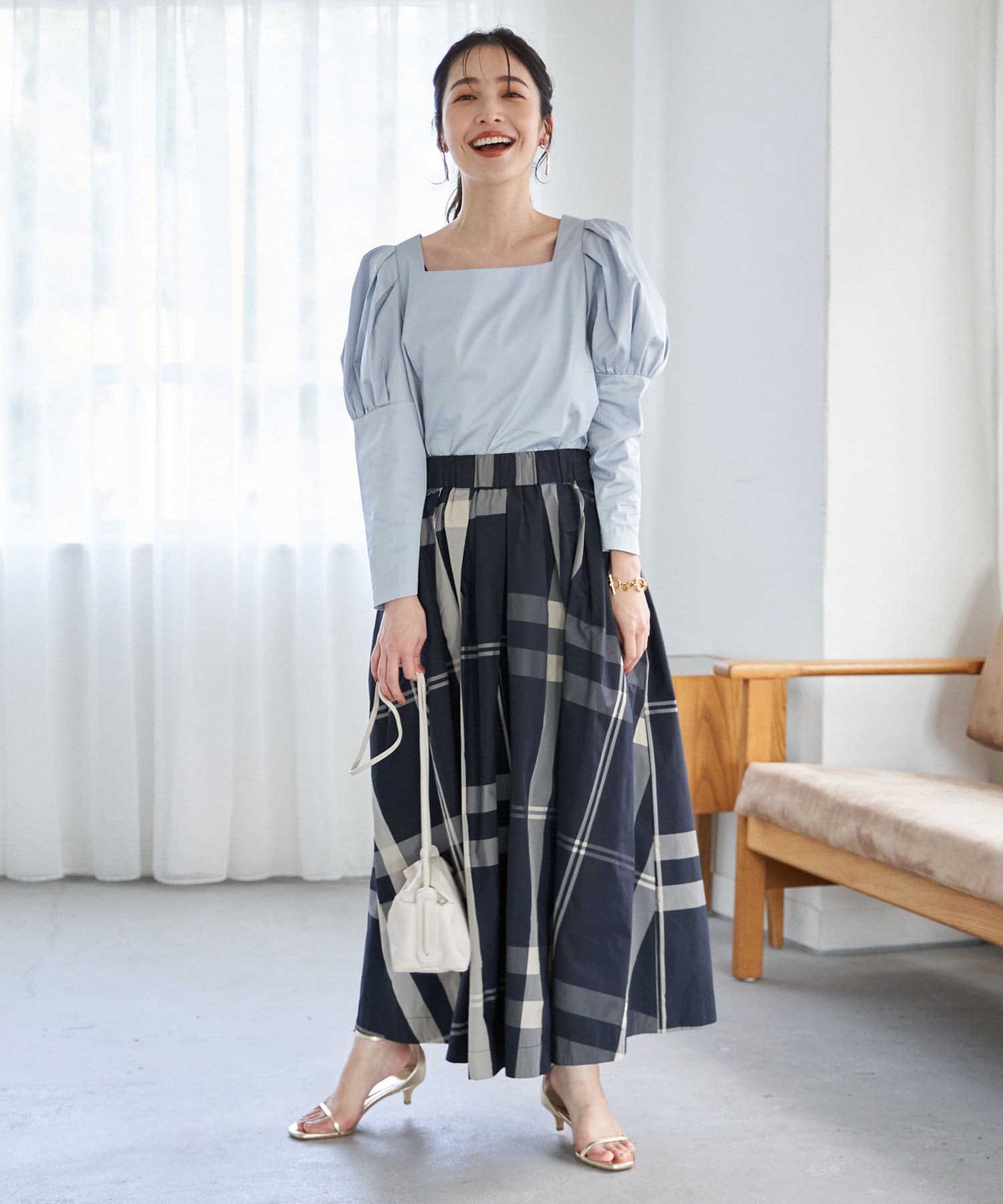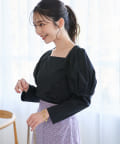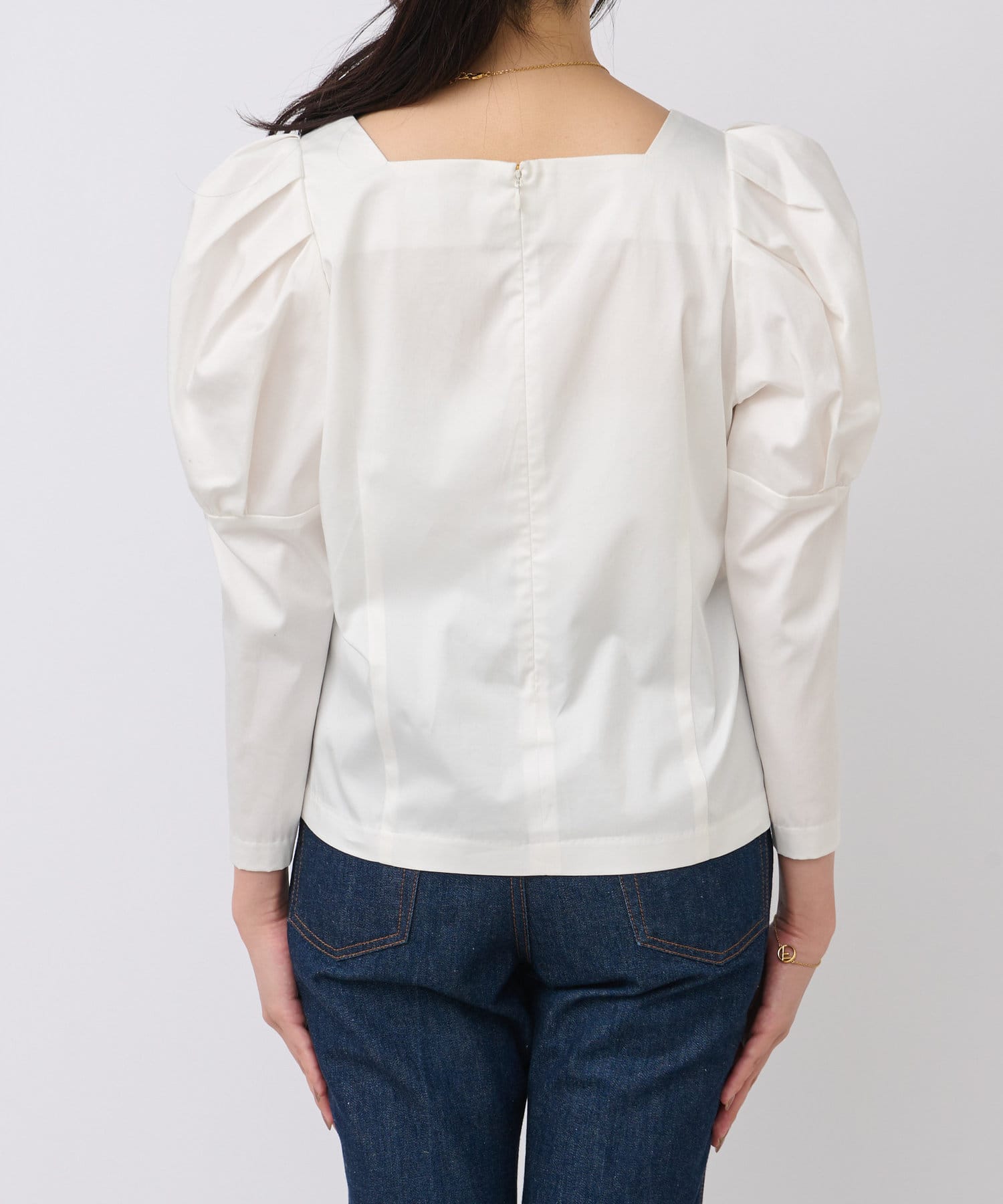 デコルテを美しく演出するスクエアネックと、袖のボリュームと手首の細さの対比で華奢見え効果にも期待できるアイテム。