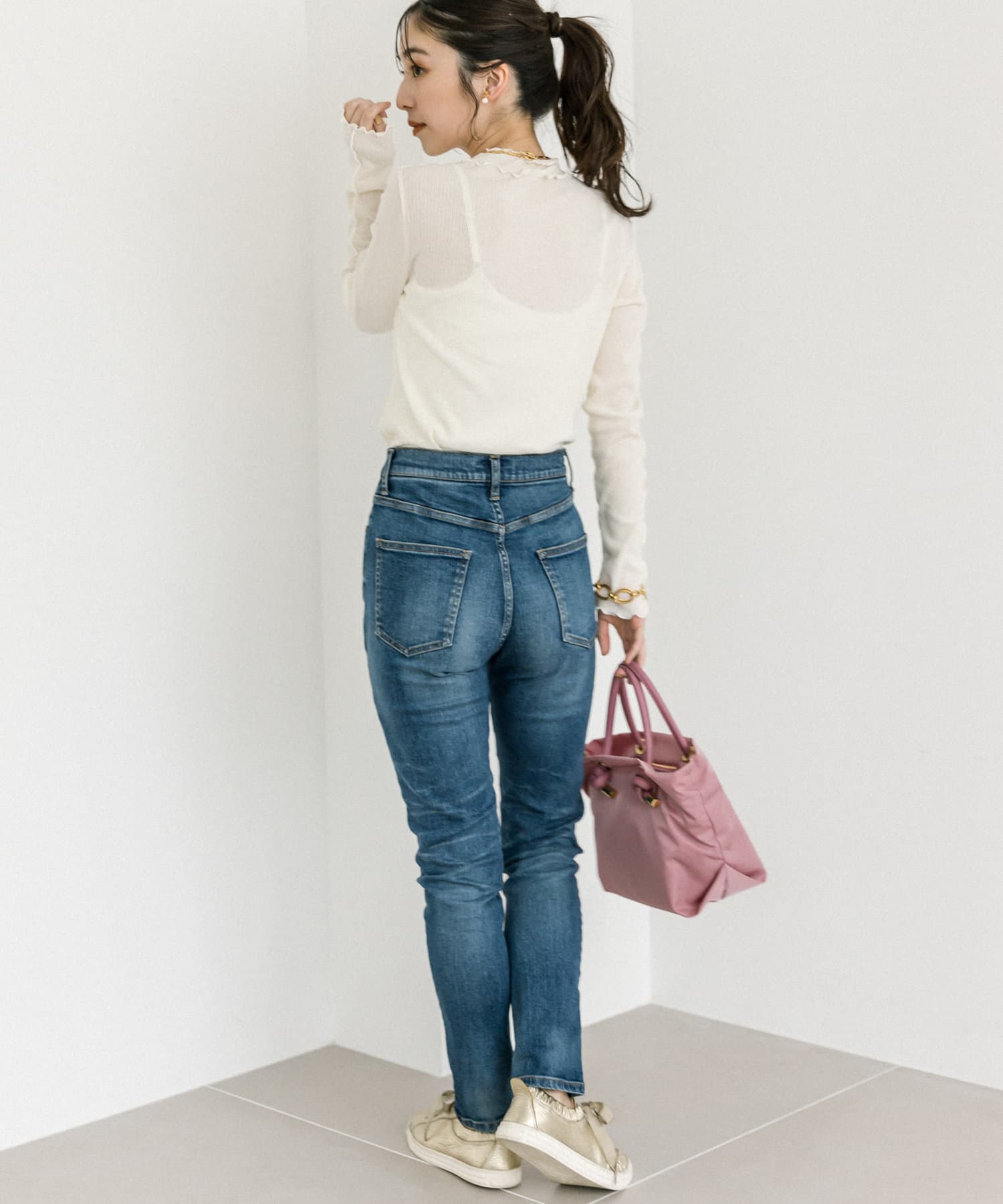 コンパクトながらも伸縮性があるので脱ぎ着しやすく、程よいサイズ感でレイヤードにもおすすめ。