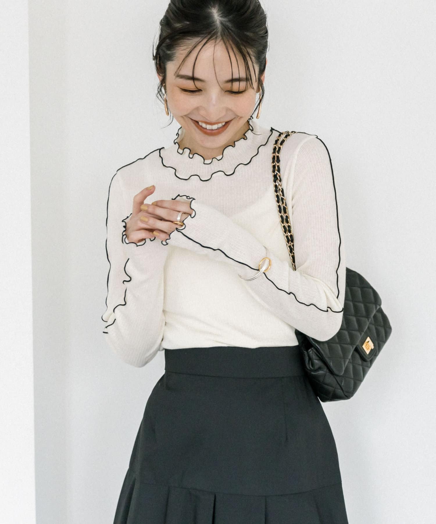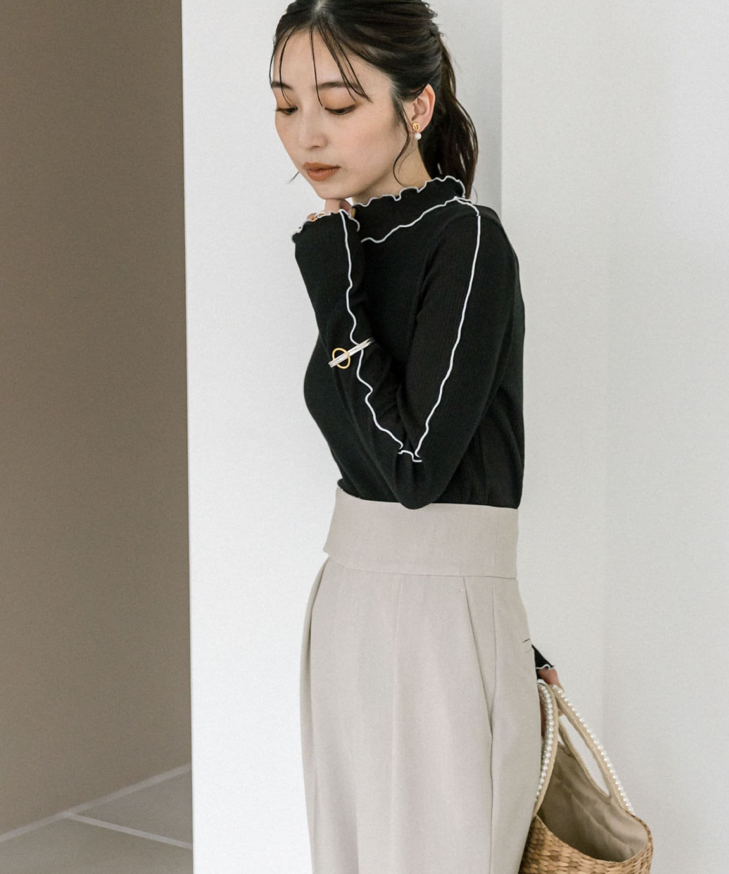 #大人カジュアル #きれいめコーデ #大人女子 #大人可愛い #上品コーデ #カットソー #トレンド #透け感 #シアー #テレコ #インナー #シンプル #バイカラー#メロー #オフィス #デートコーデ #モテ服 #モテコーデ #着回し
