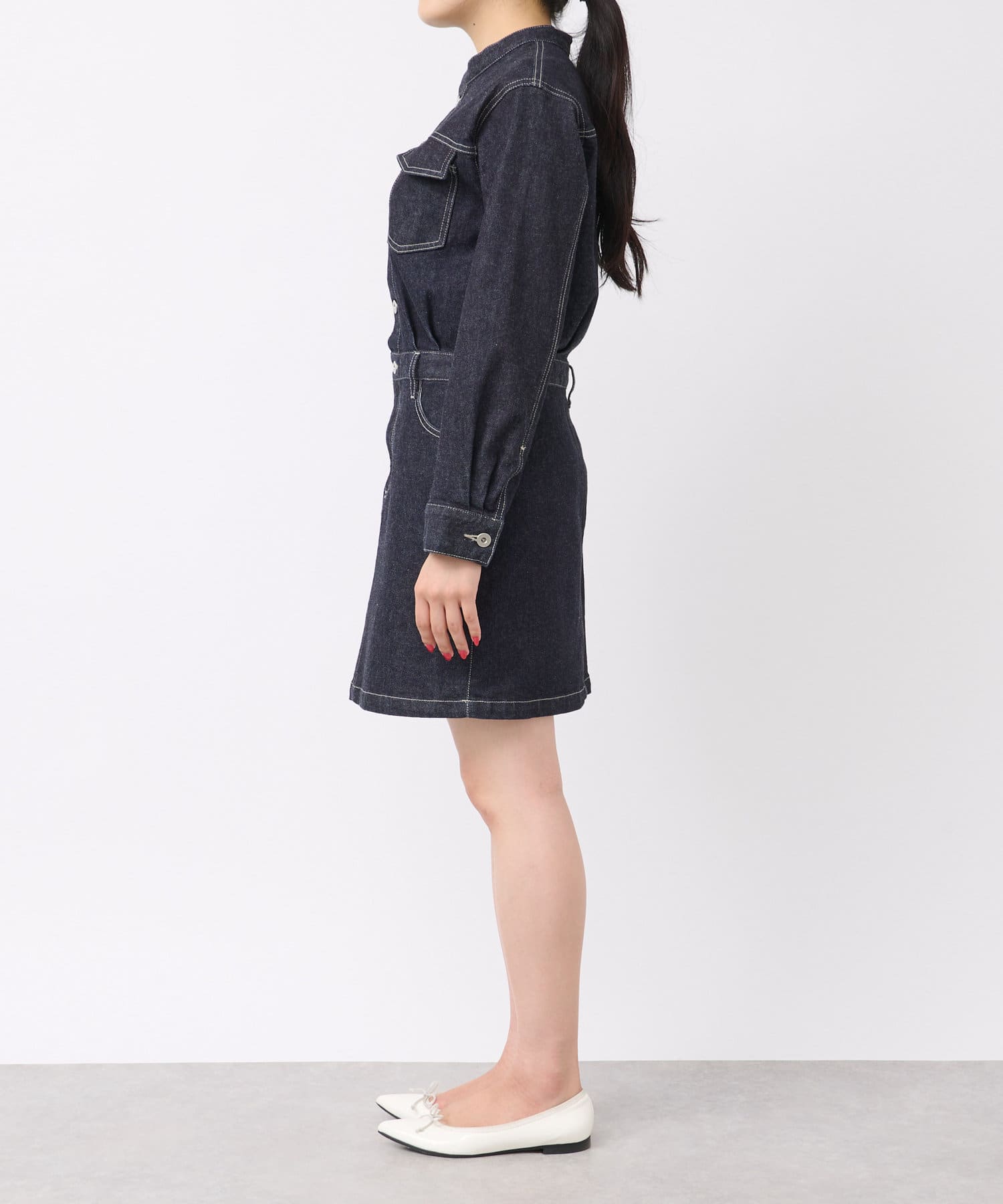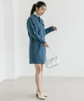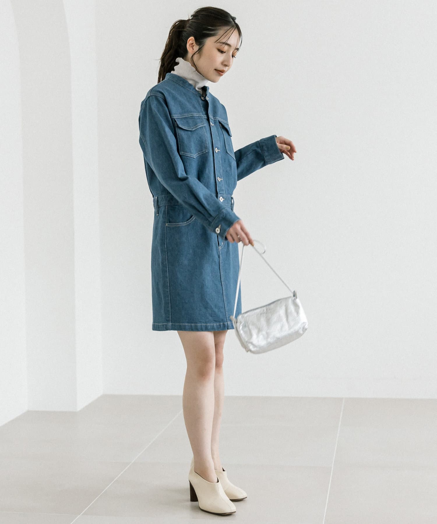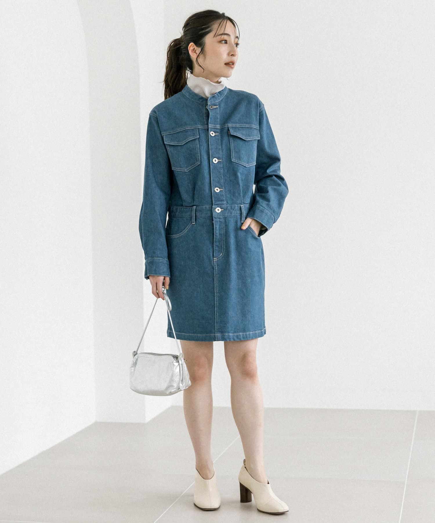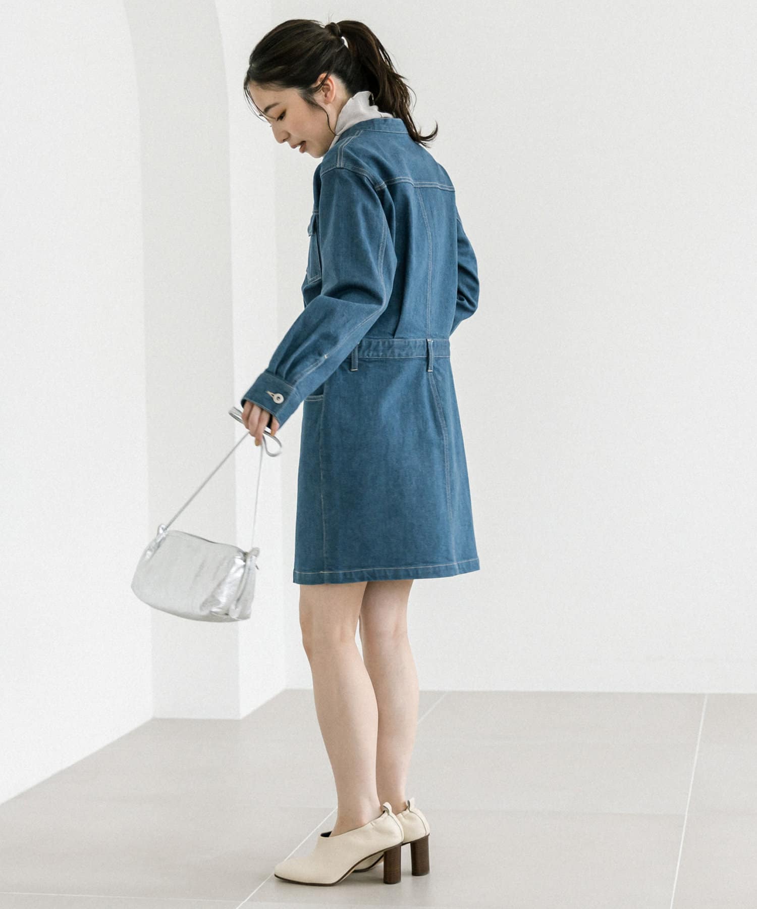 【縦長ラインでスタイルアップ】デニムシャツミニワンピース