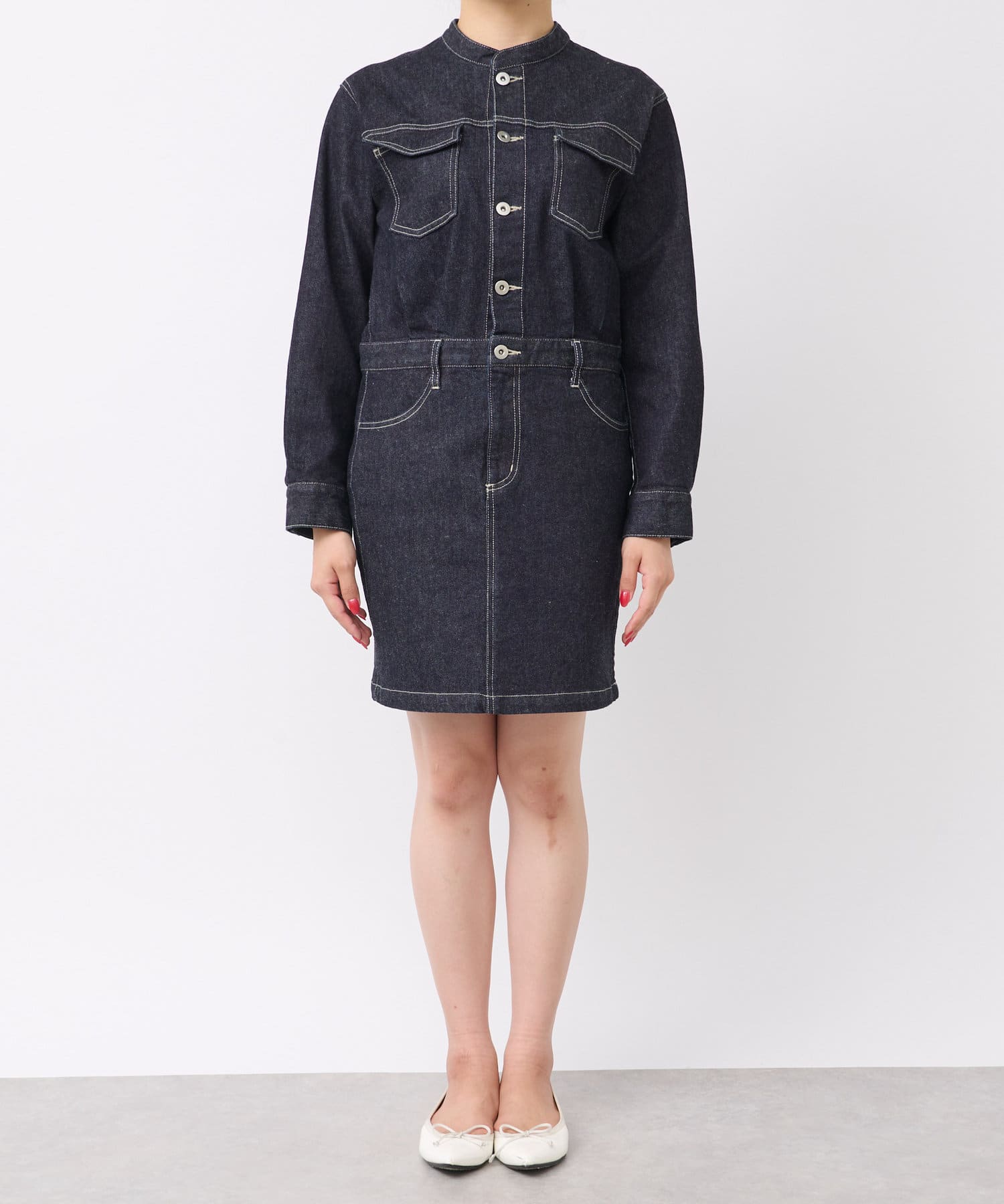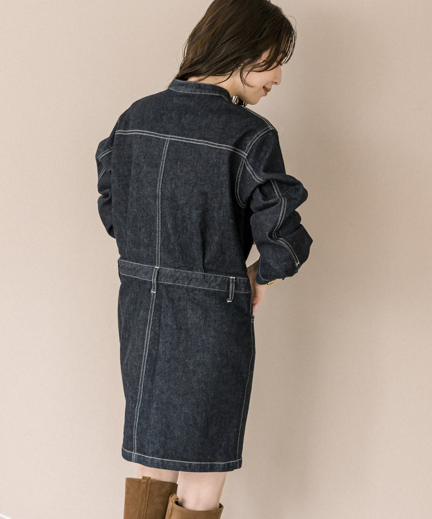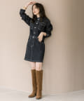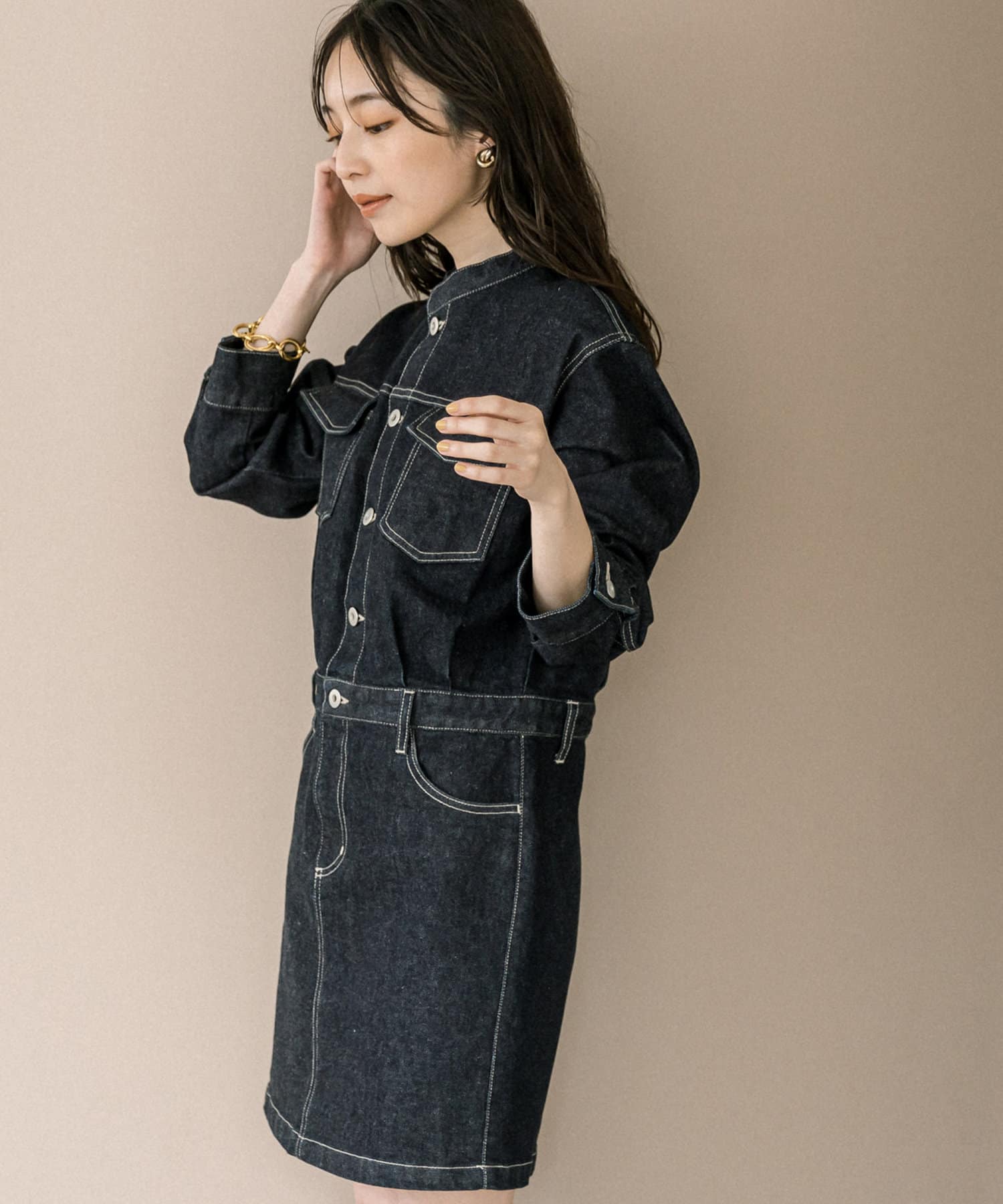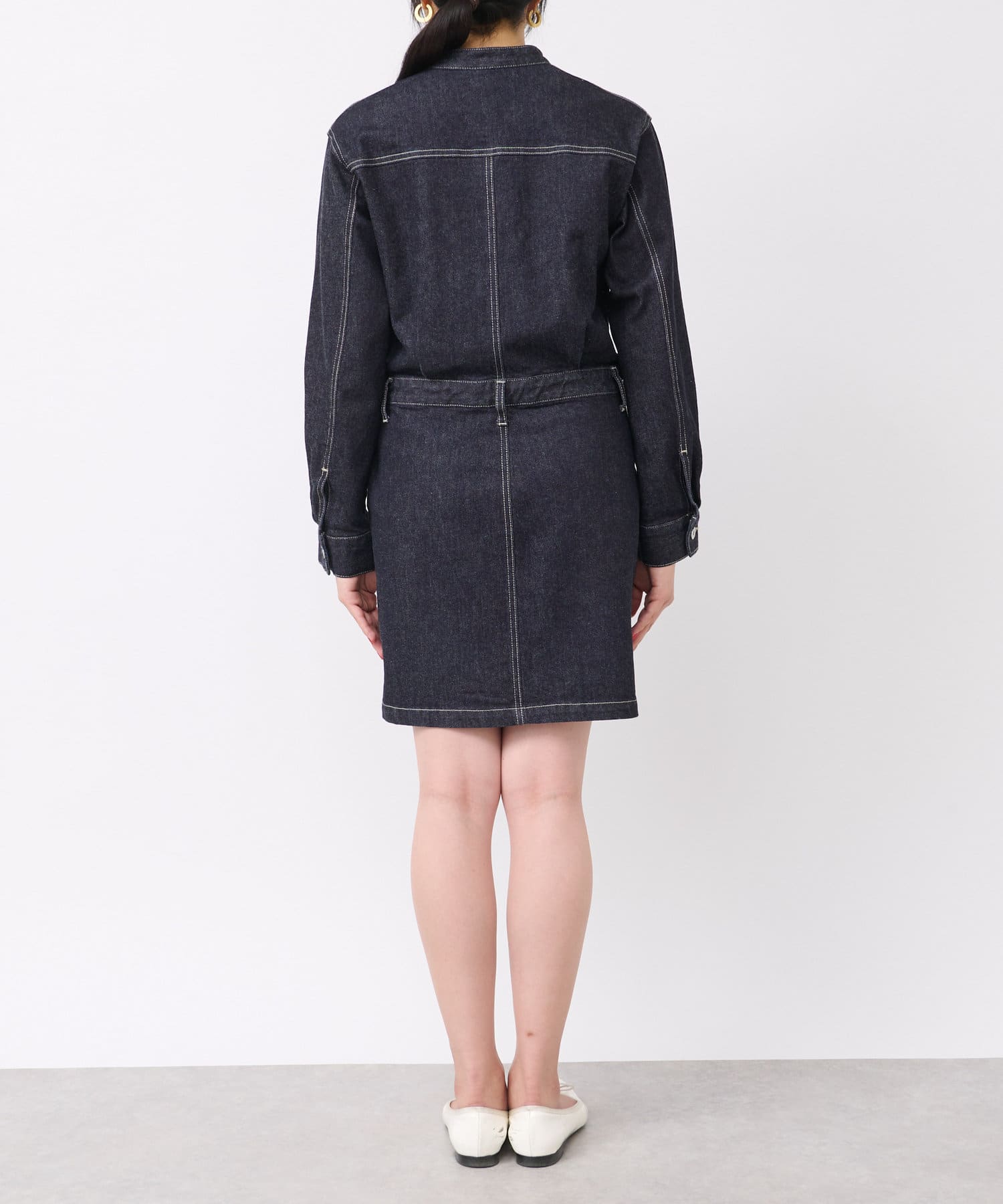 【縦長ラインでスタイルアップ】デニムシャツミニワンピース