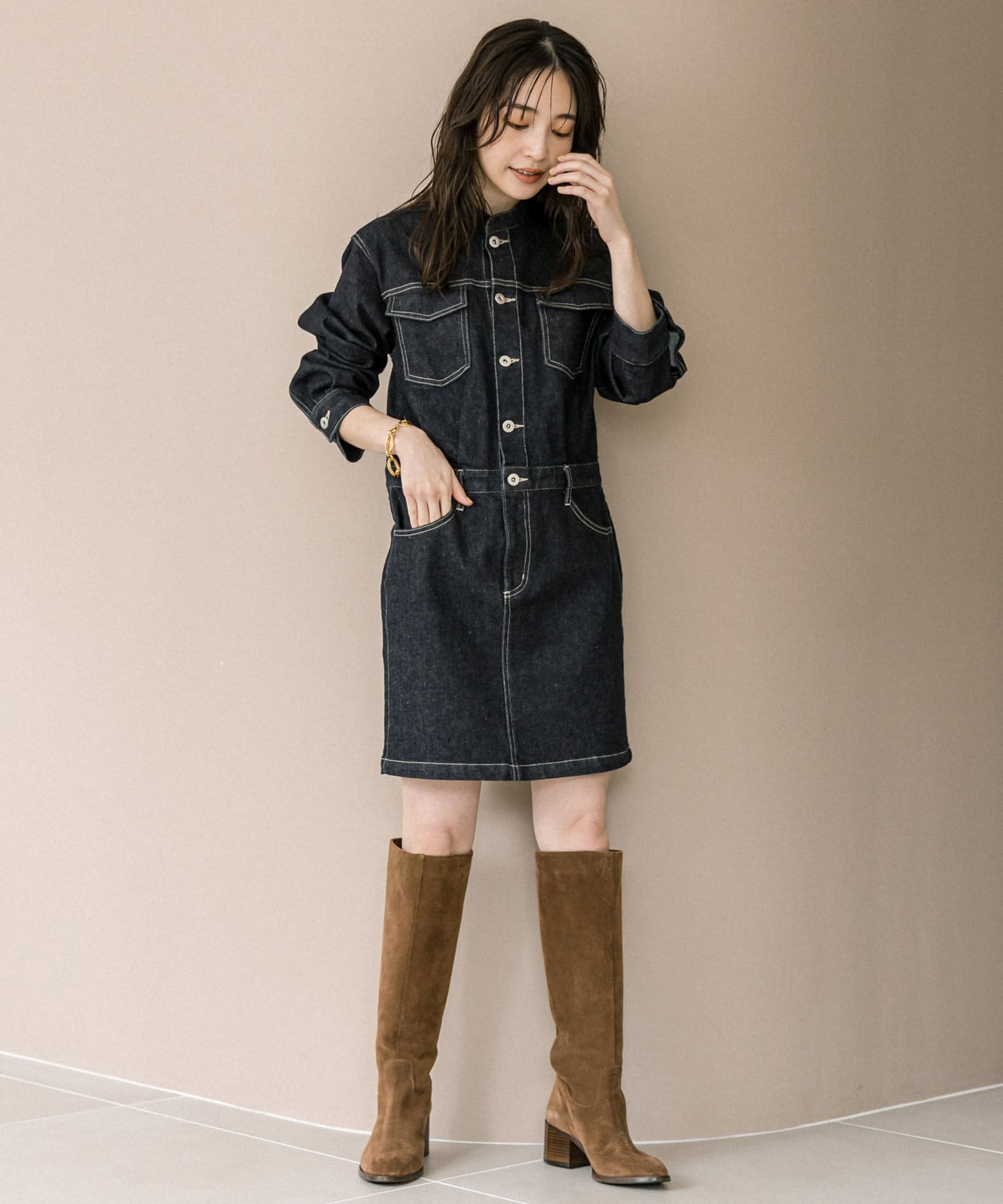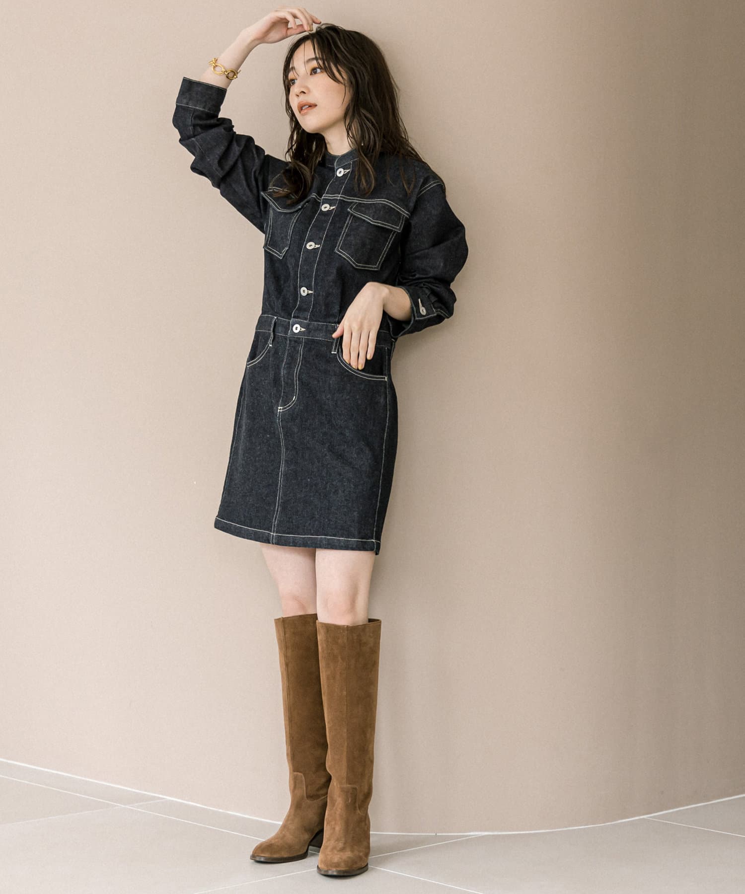 トレンドのロングブーツ合わせが楽しめる大人のミニ丈!