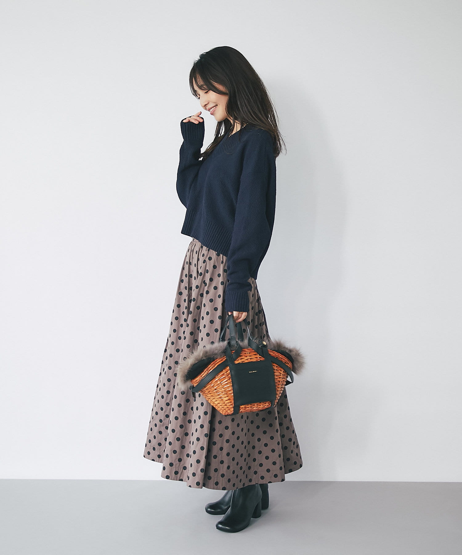 #ヴィオラドーロ #大人カジュアル #きれいめカジュアル #きれいめコーデ #上品カジュアル #かごバッグ #デイリーユース #ハンドバッグ #バスケット #ファー #ファーアイテム #フォックスファー