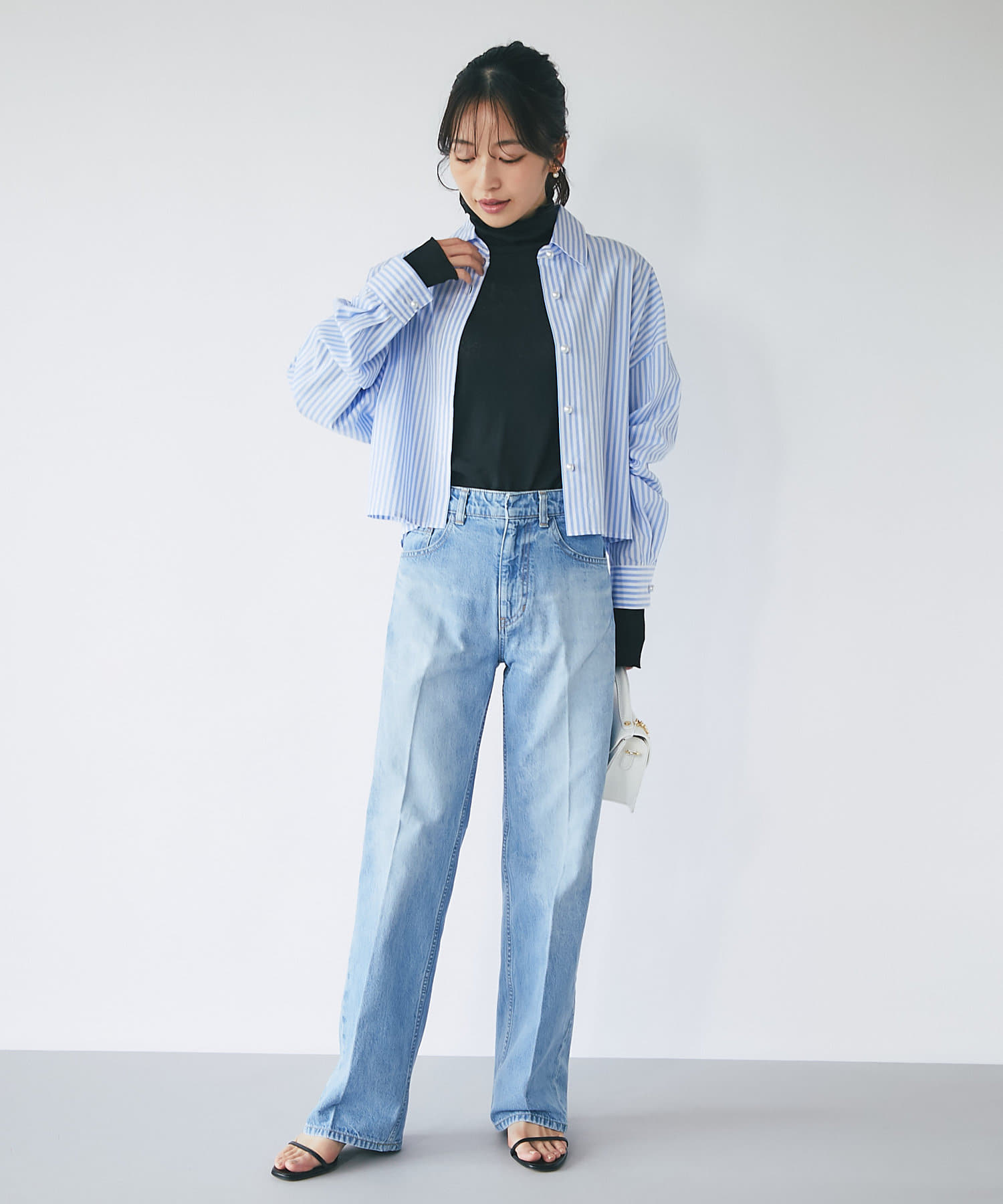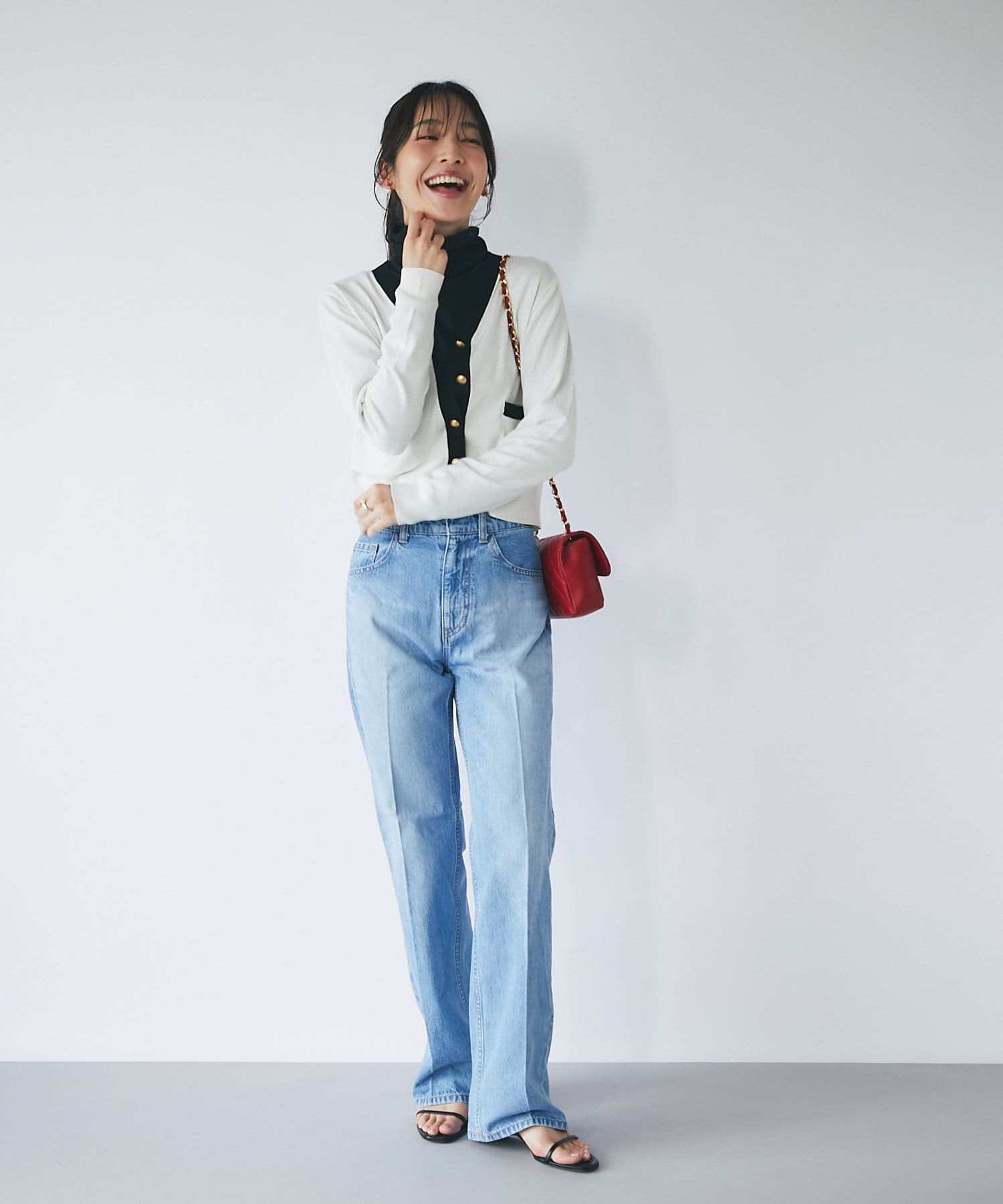 カジュアルアイテムながら、センタープレスで上品さがプラスされたデニムパンツ。