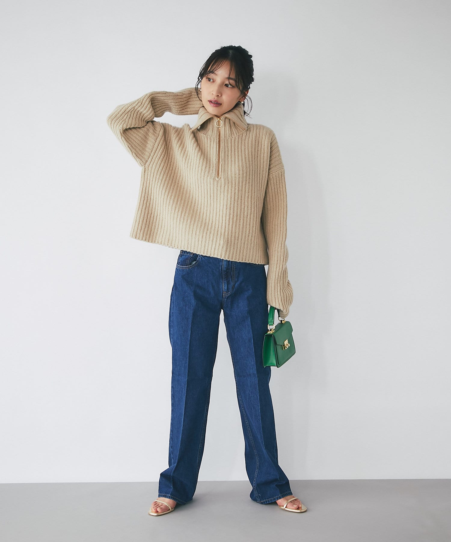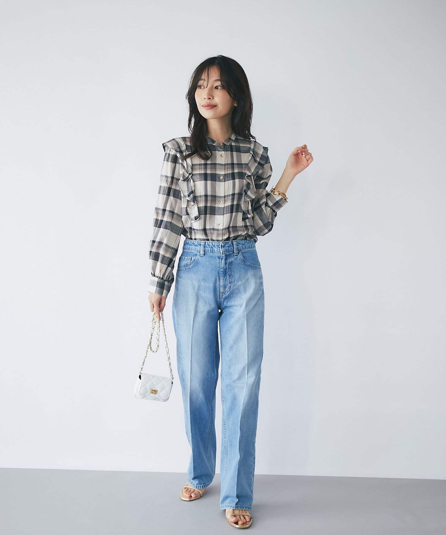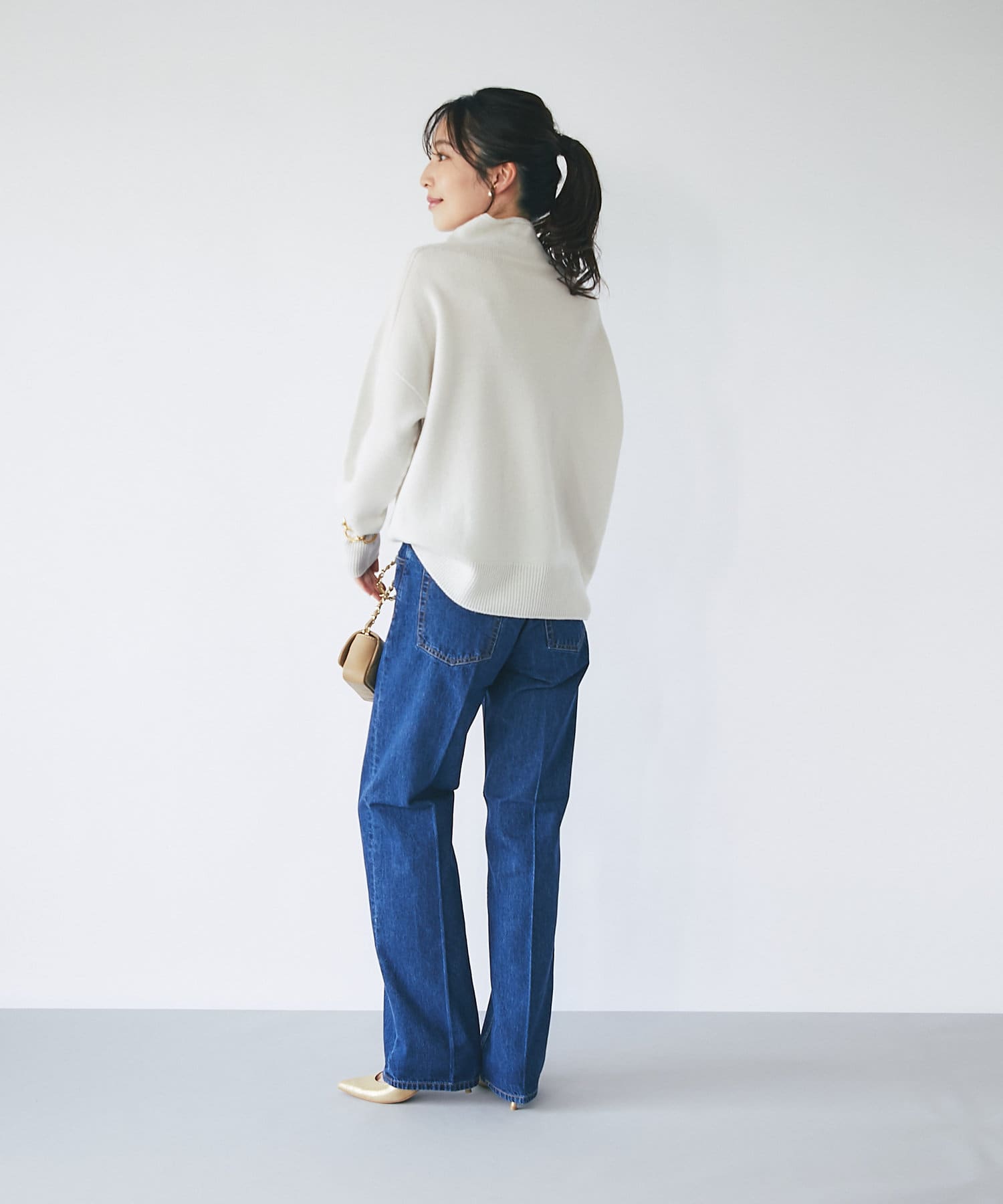 やや細身のストレートシルエットで脚長効果も抜群です。