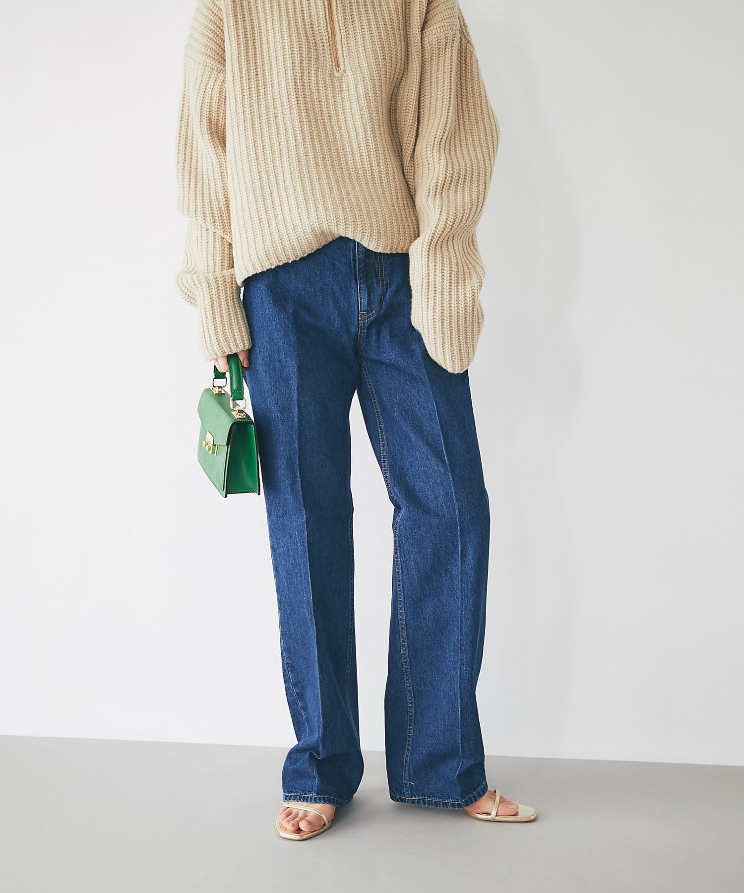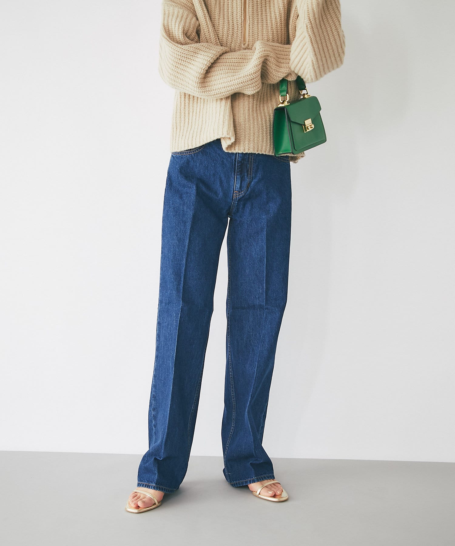【CURRENTAGE(カレンテージ)】センタープレスストレートデニム