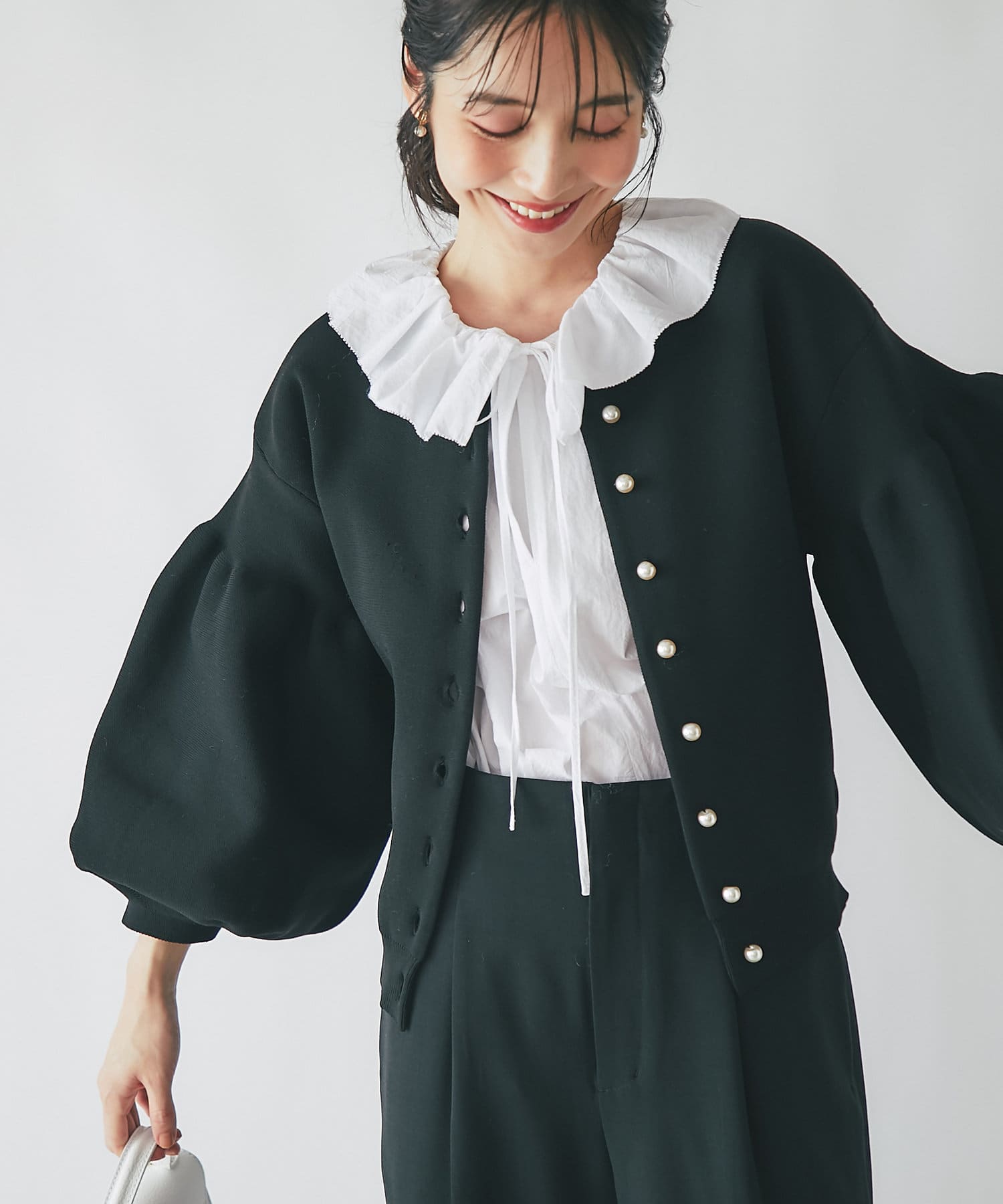 レイヤードスタイルにも活躍!フリル襟が華やかなデザインブラウス