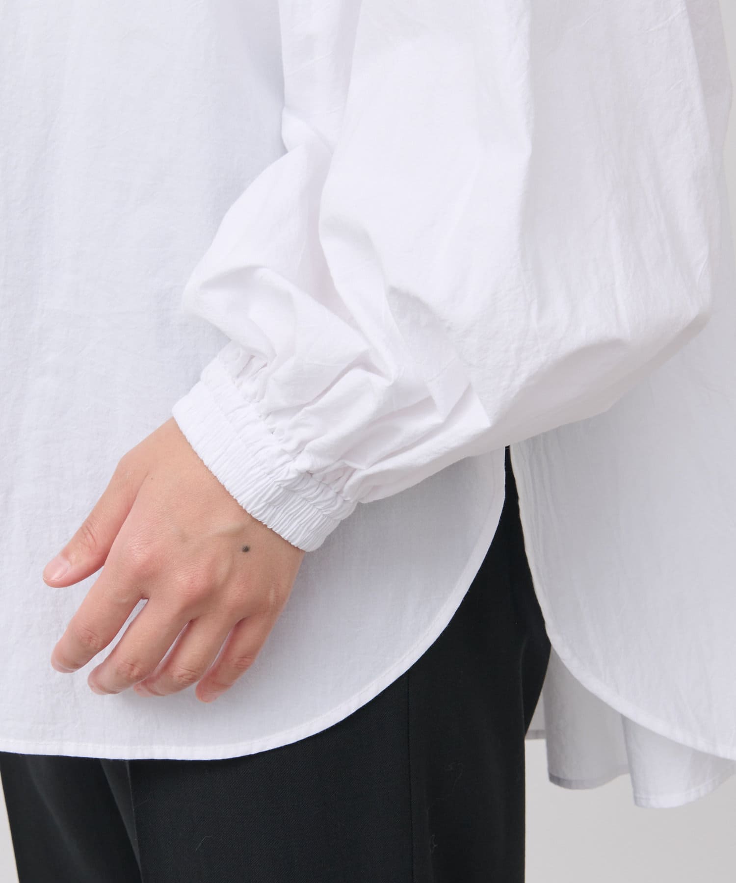 襟もとの大振りなフリルが印象的なデザインブラウス。