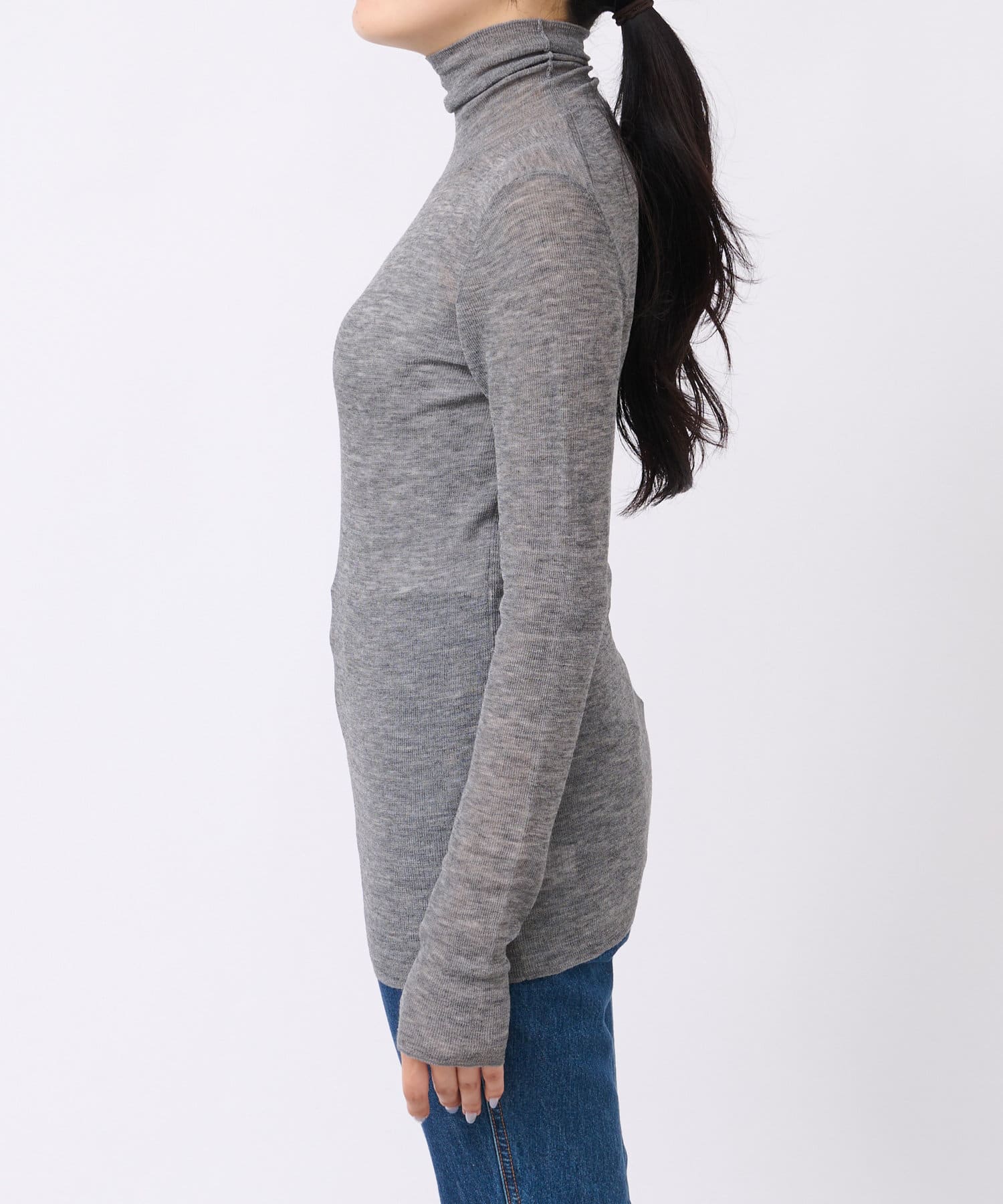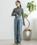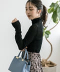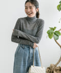 ベーシックデザインで着まわしやすいリブタートルニット。