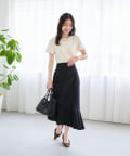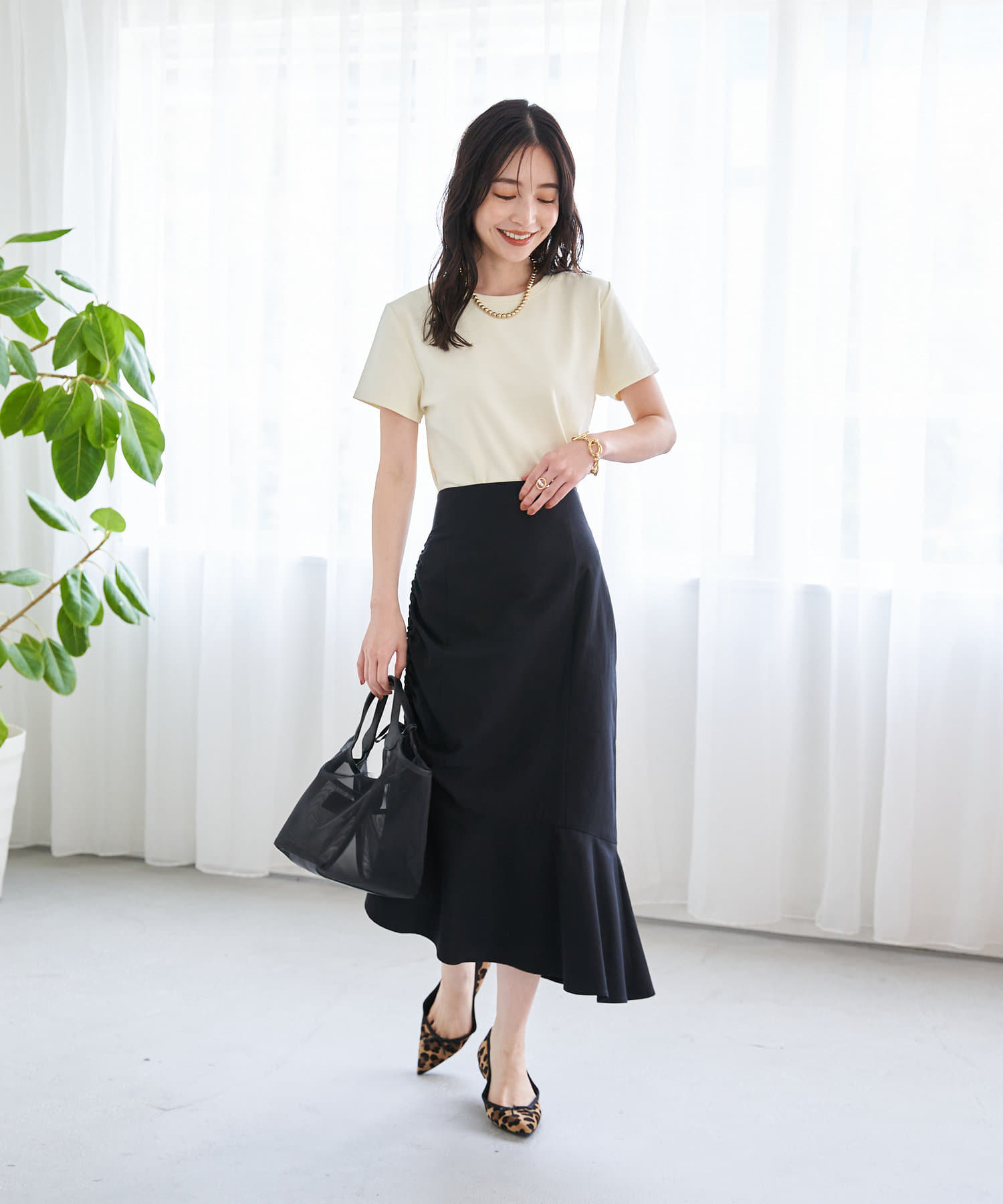 ミニボトムにもおすすめですが、ロング丈のボトムにも合わせやすくおすすめです。