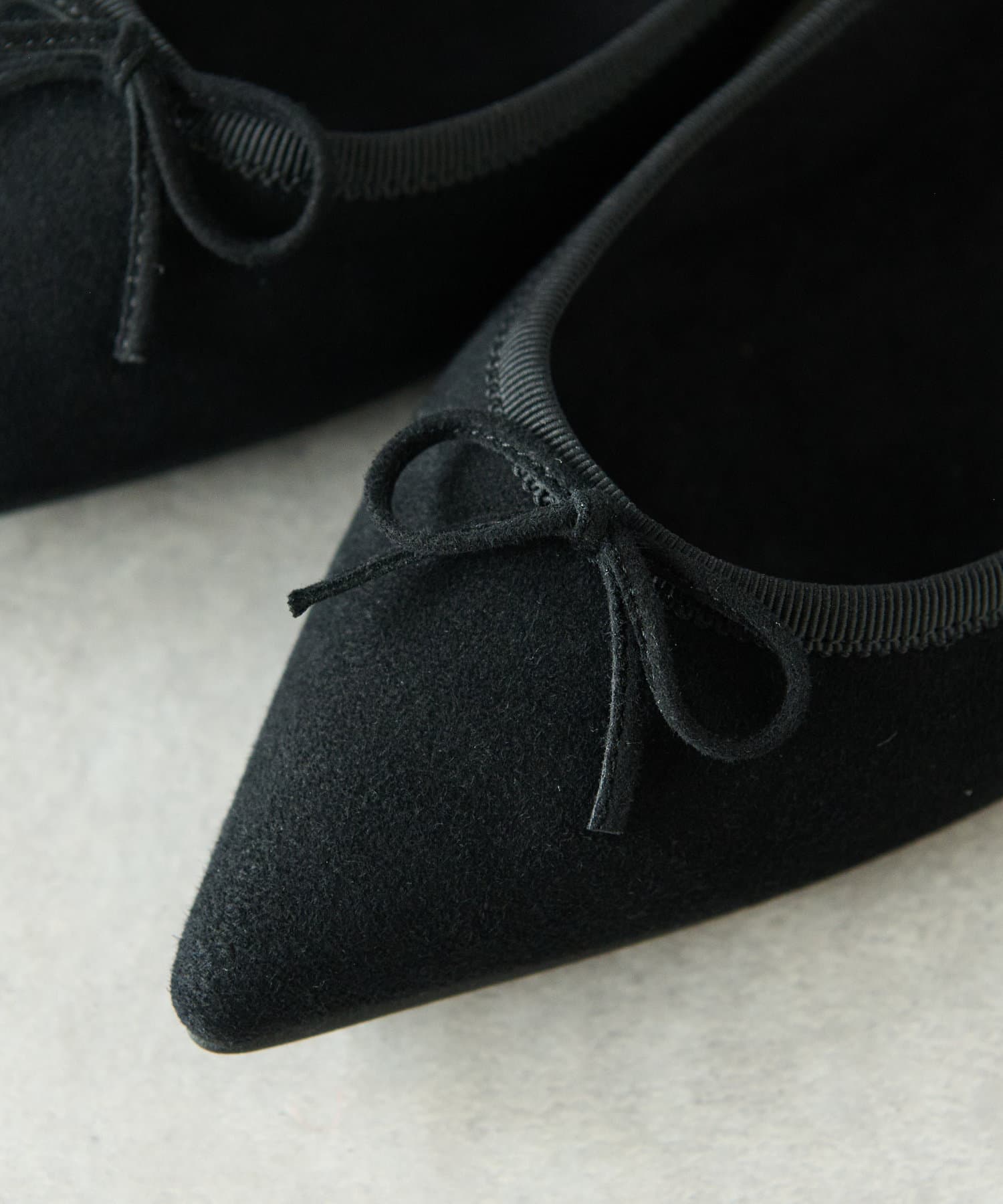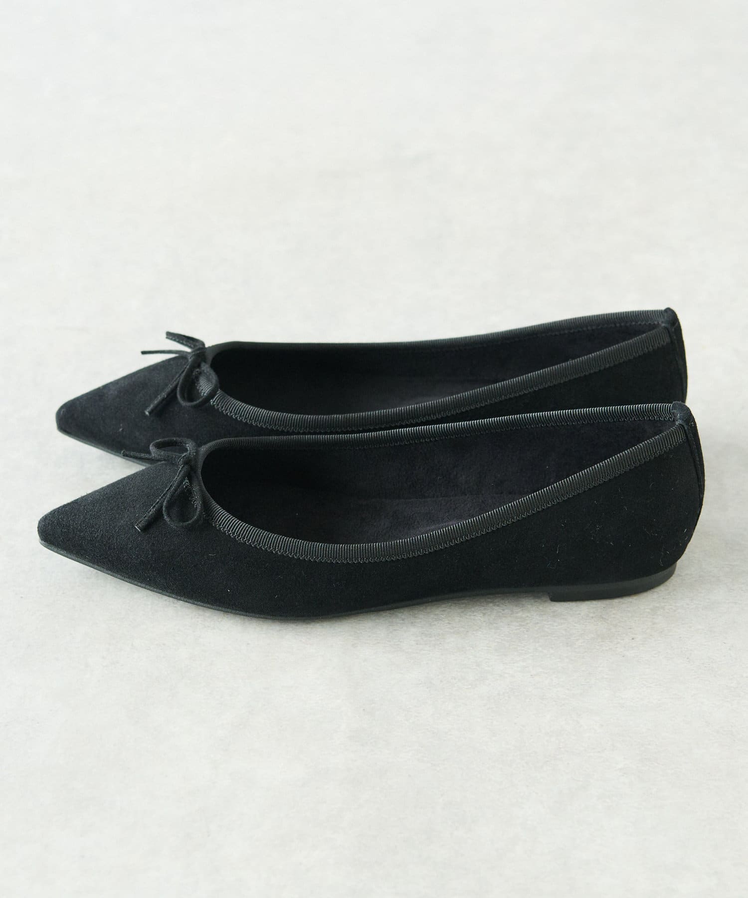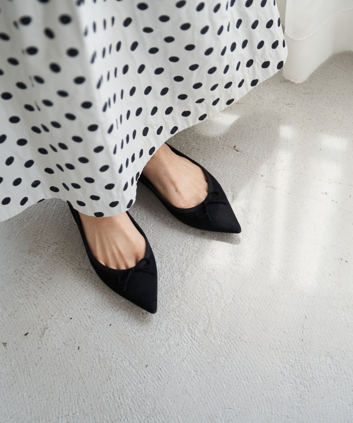 ぺたんこヒールなので歩くのもラクなのに、ポインテッドトゥで大変女性らしいアイテムです。