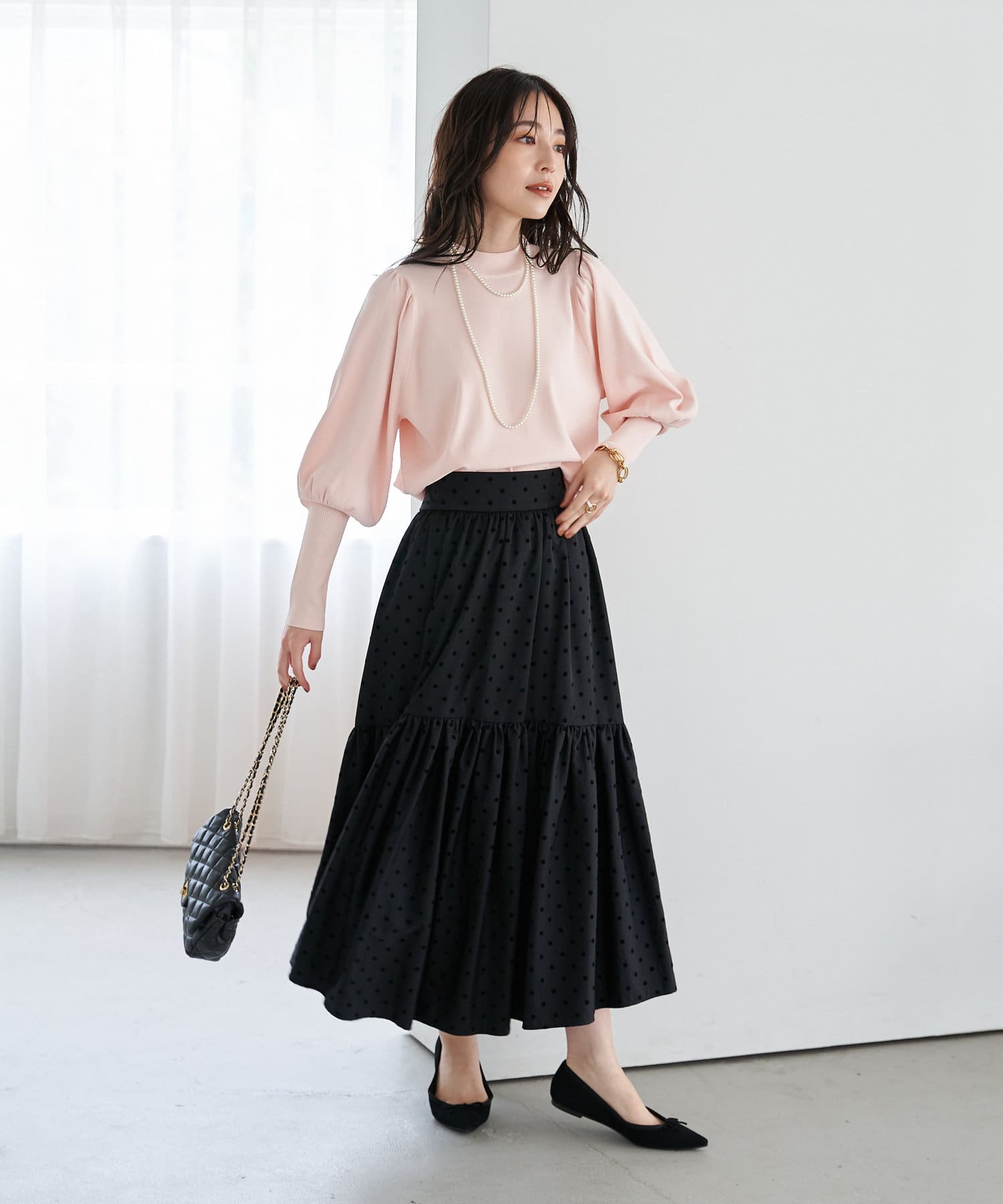 人気のチェックスカートやドットジャガードのスカートなど相性抜群。
