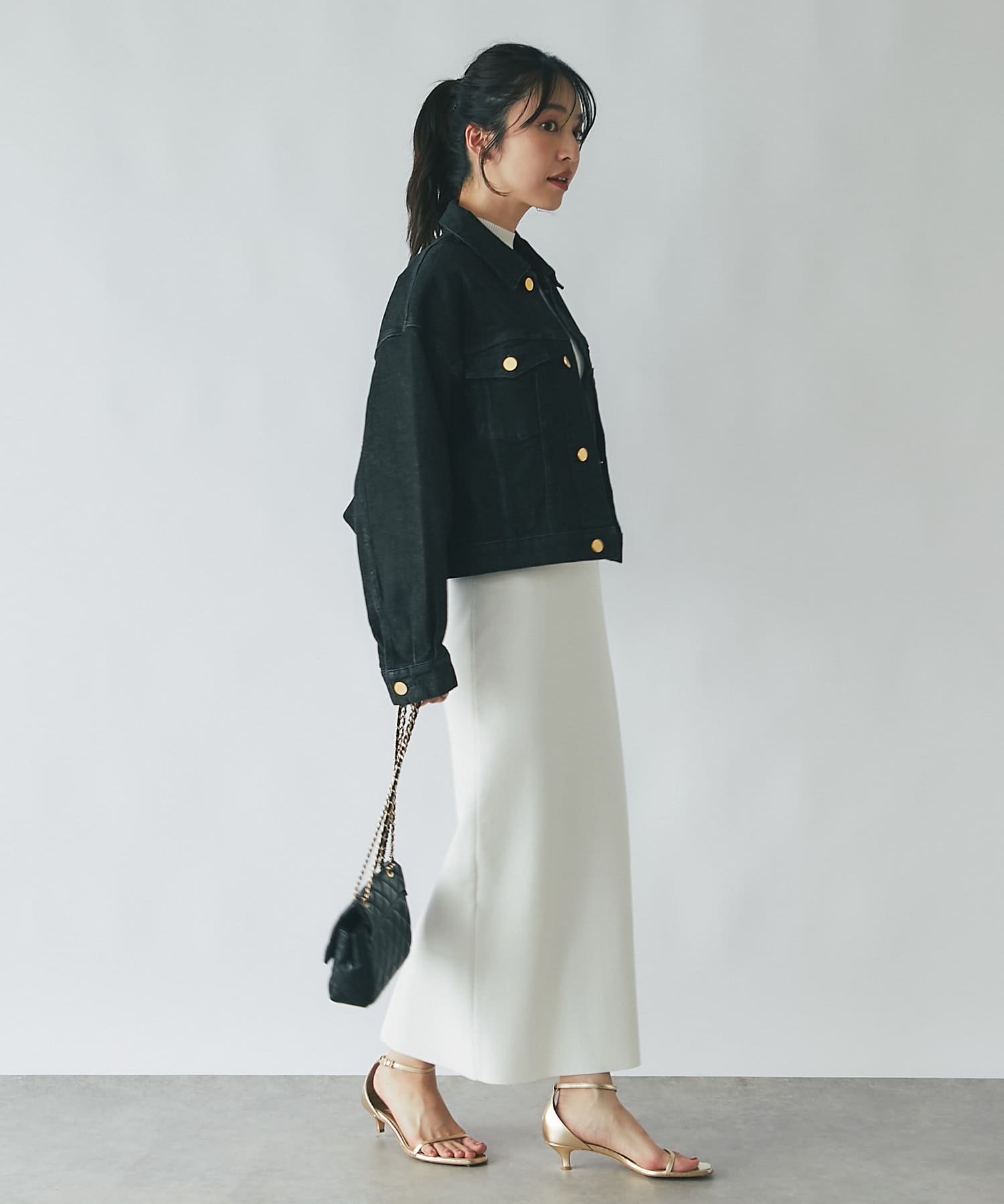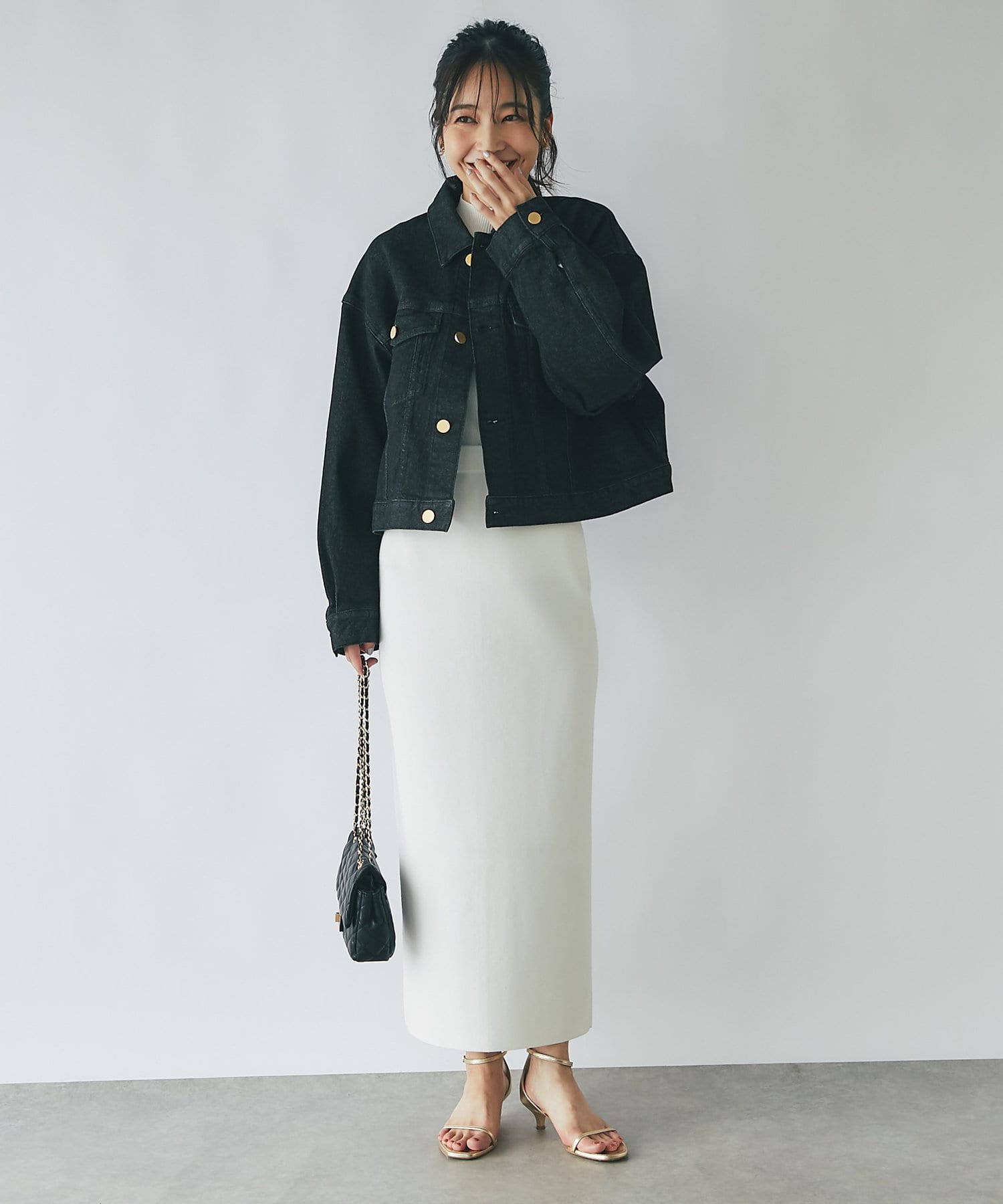 コンパクトなトップスを合わせてIラインを強調したスタイルがおすすめ。