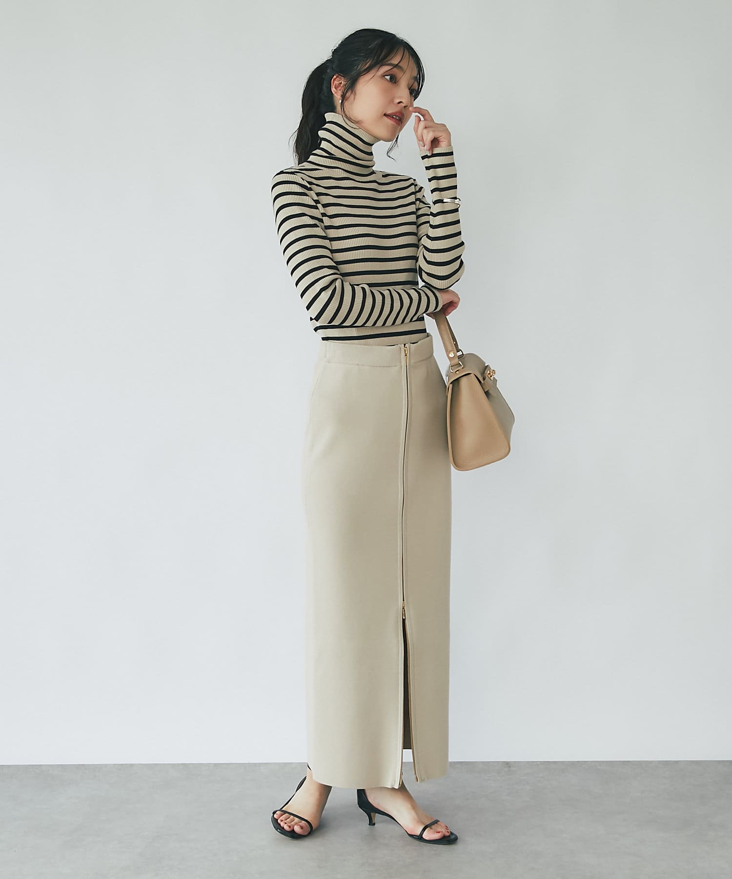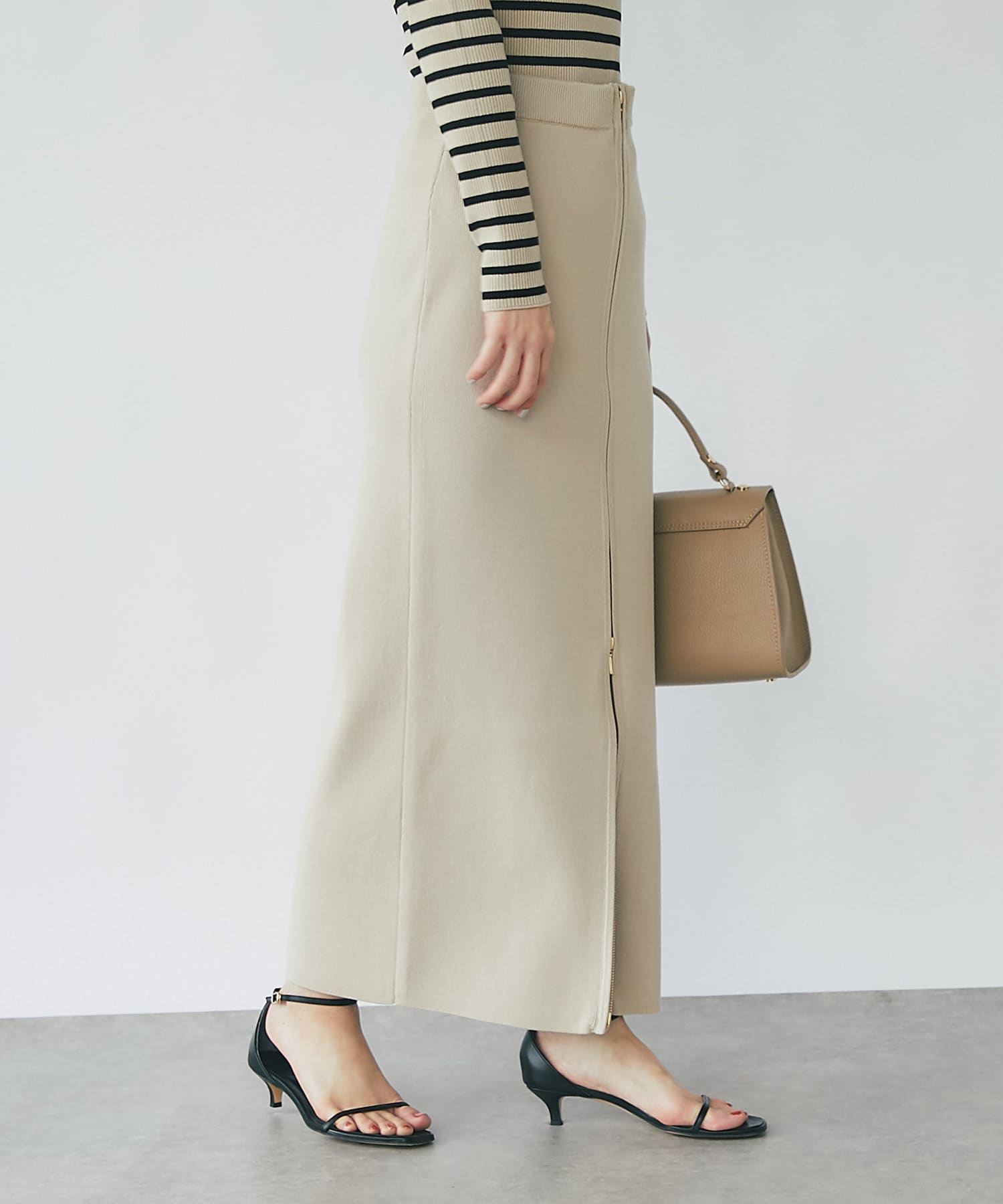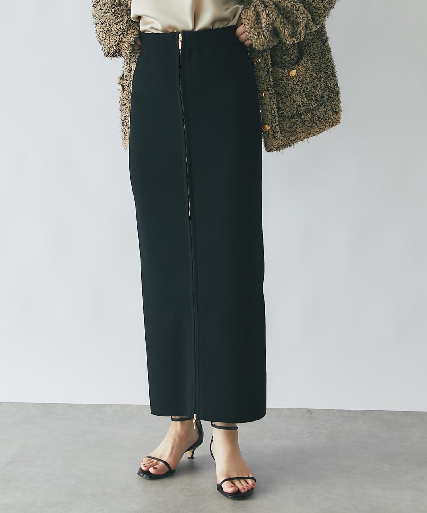 【細見え効果抜群】前後2WAYジップナローニットスカート