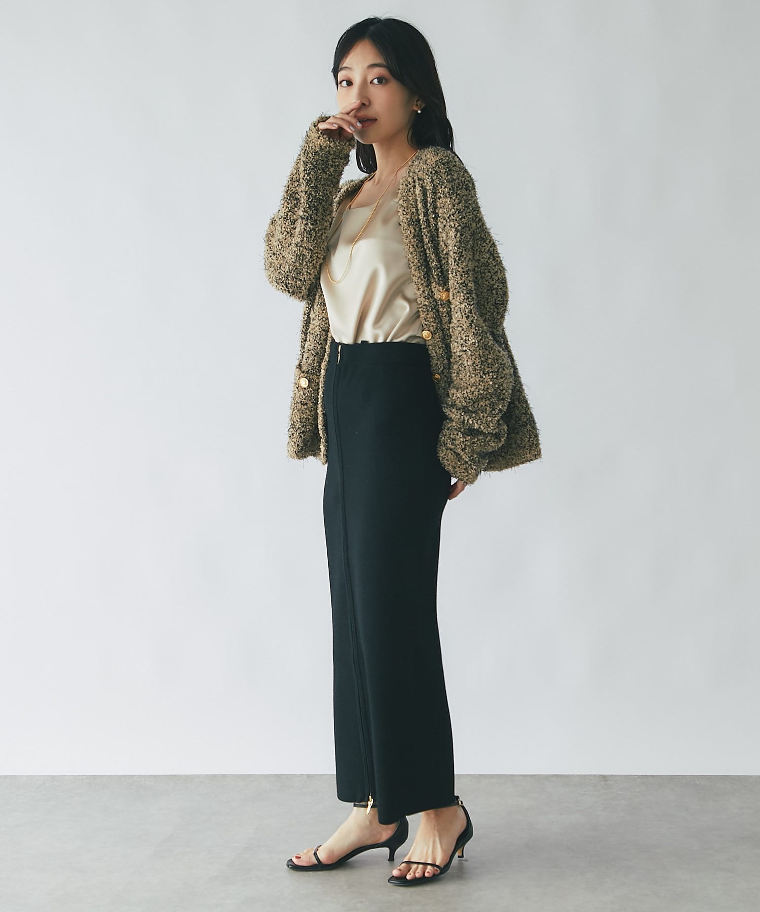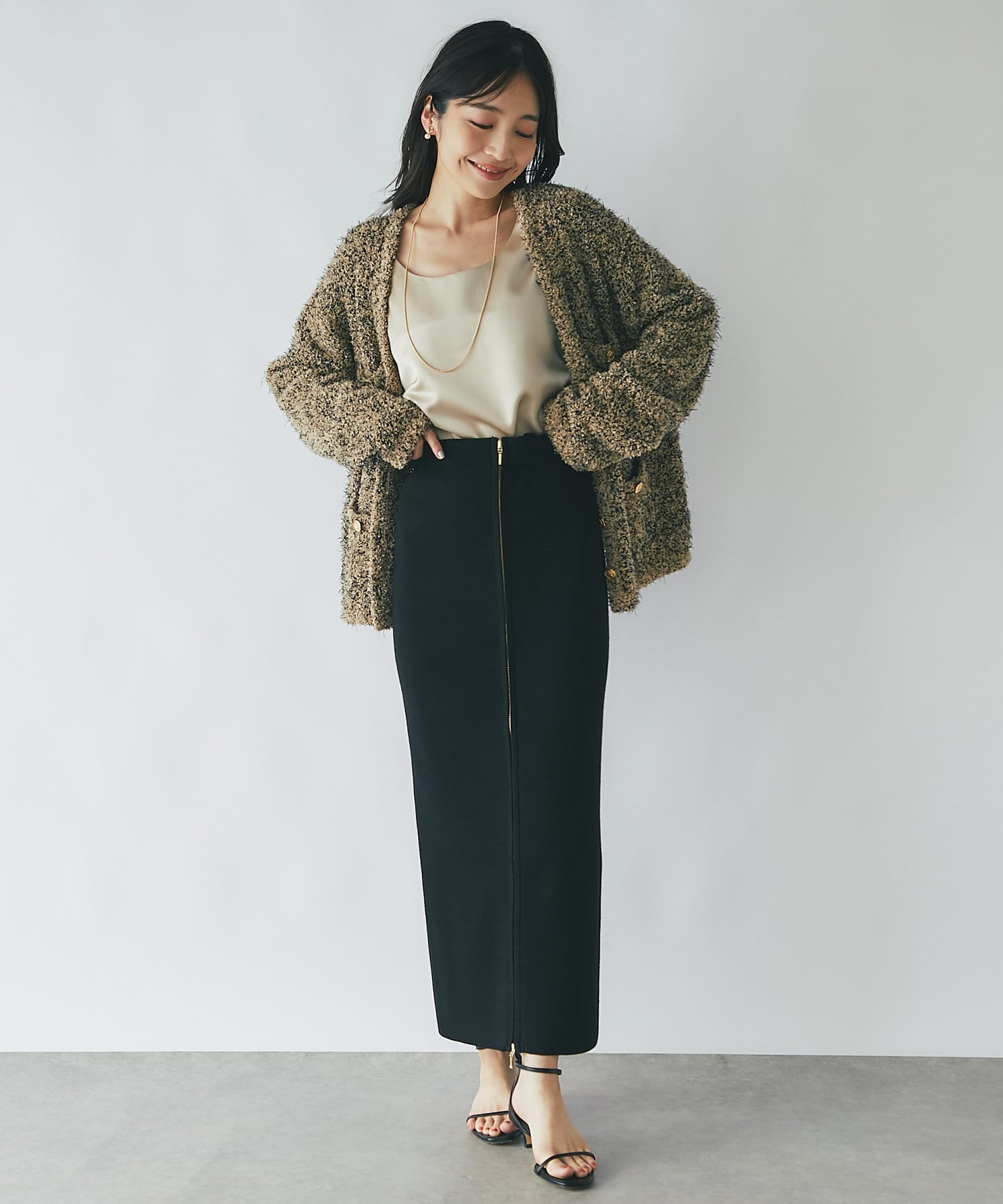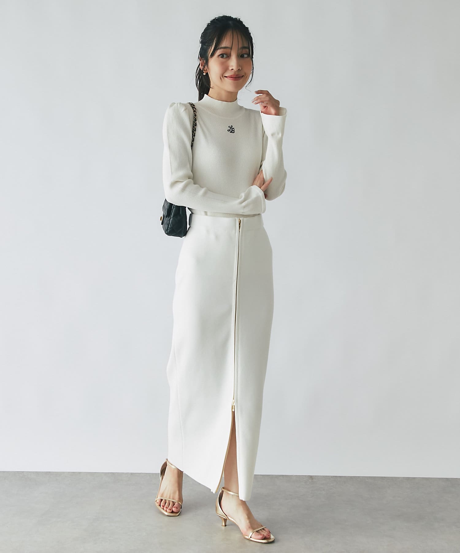 【細見え効果抜群】前後2WAYジップナローニットスカート