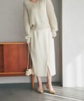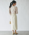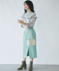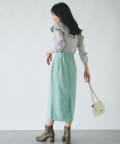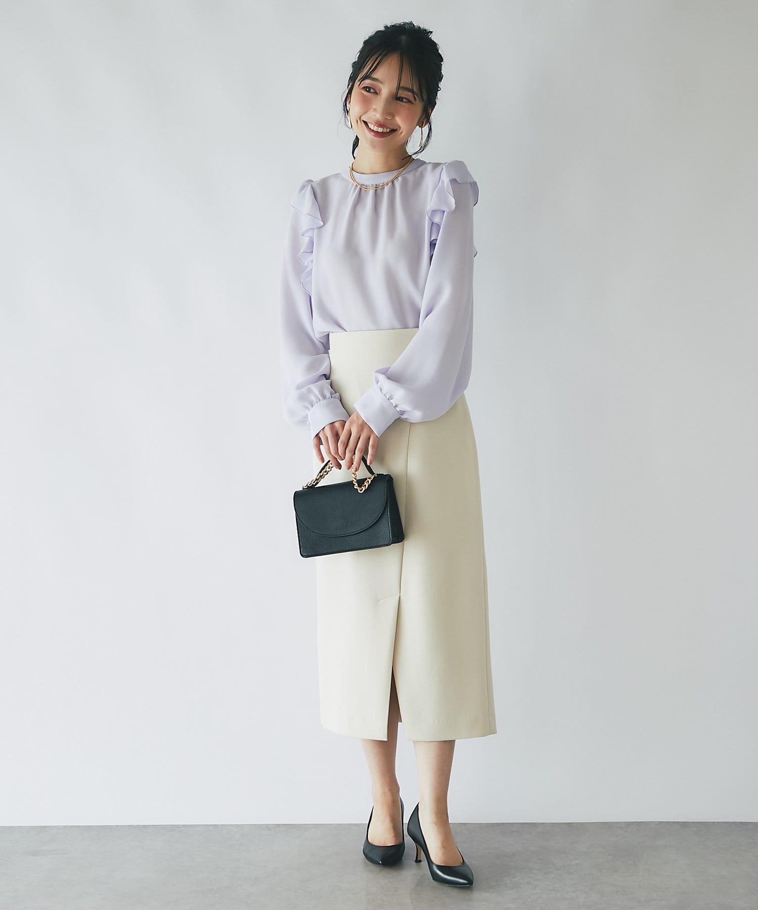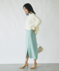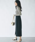 ハイウエストデザインなのでブラウスやニットなどをインしたスタイルがおすすめ。