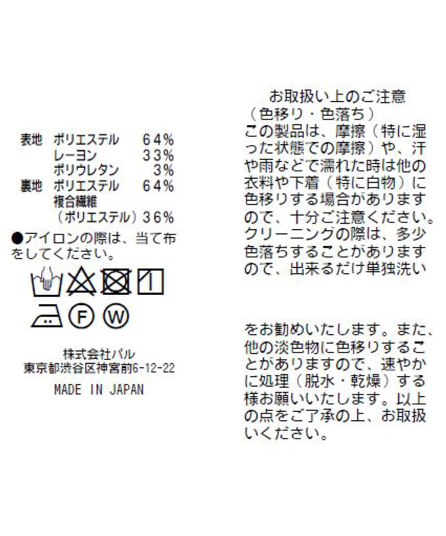 表地:ポリエステル 64% レーヨン 33% ポリウレタン 3%