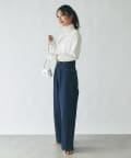 ハイウエストとタックデザインでおなか周りが膨らまないように仕上げました。
