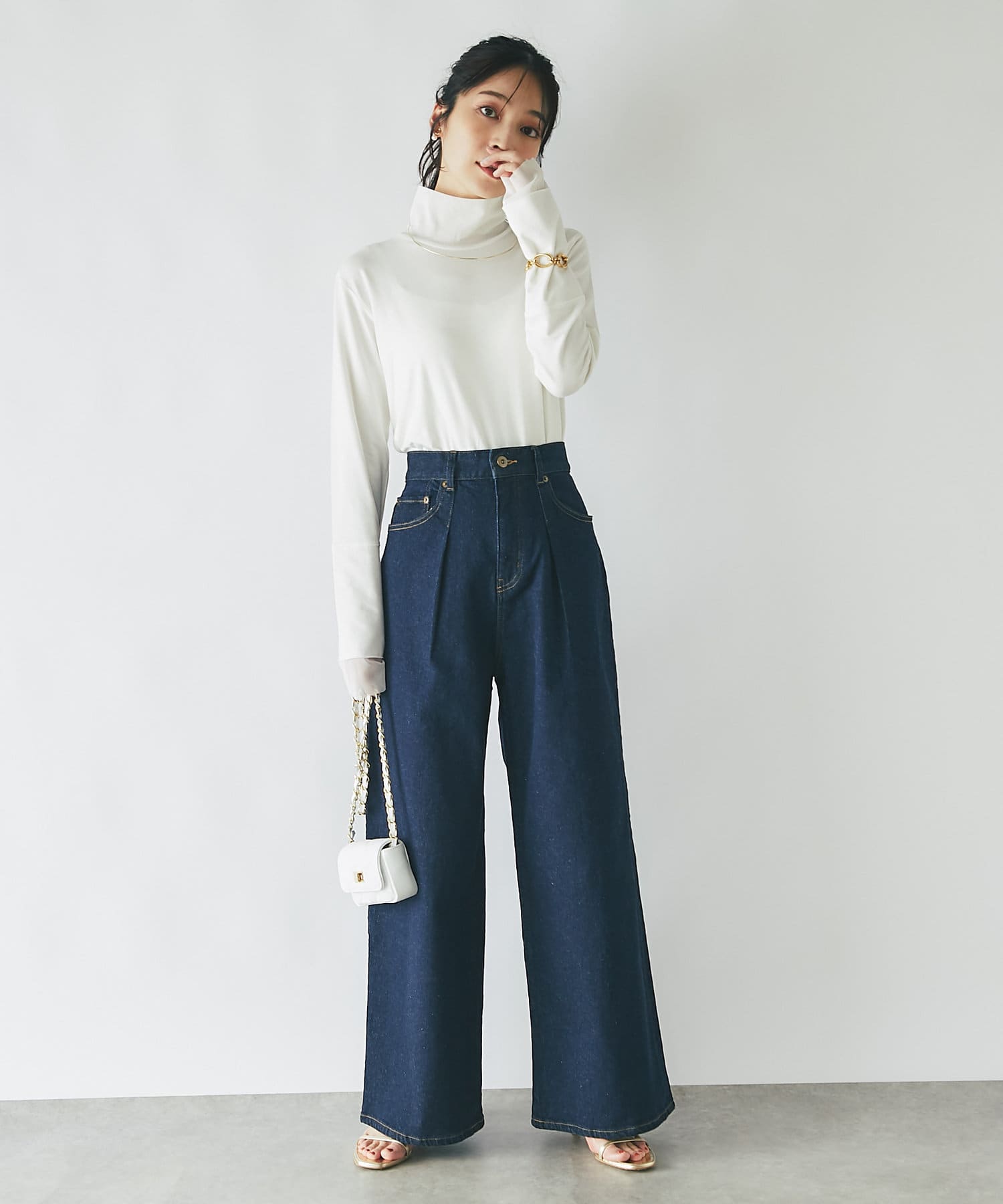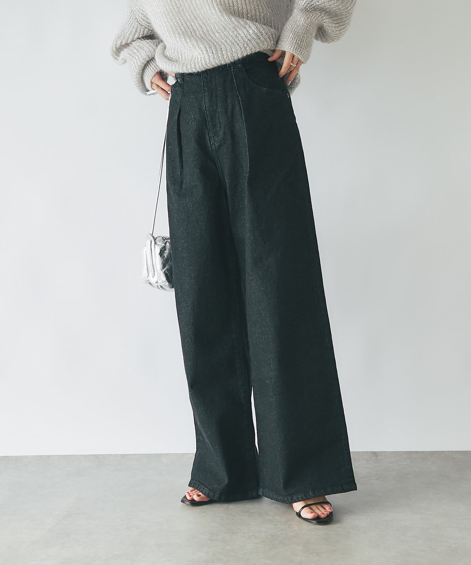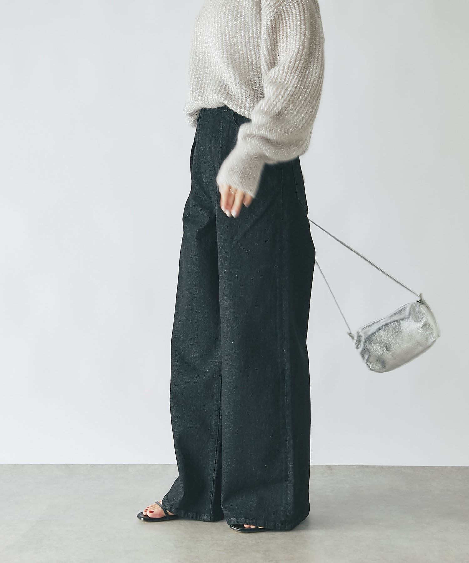 太すぎないワイドシルエットですっきりと履けるデニムパンツ