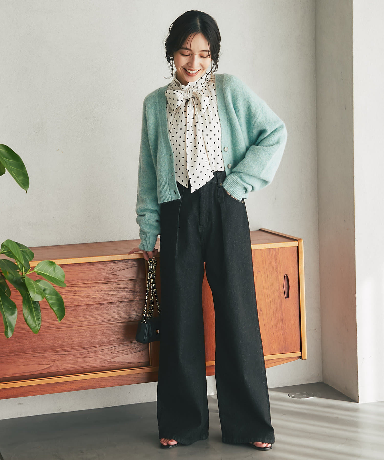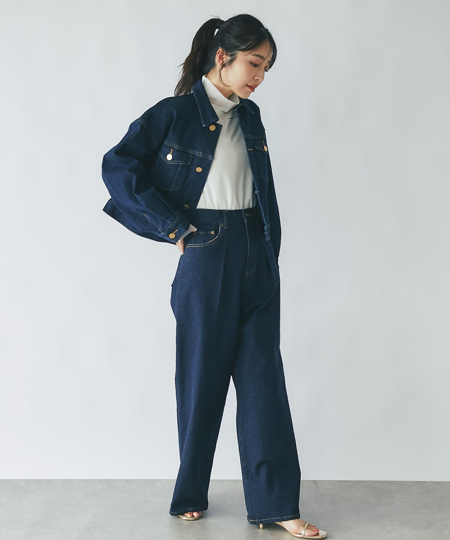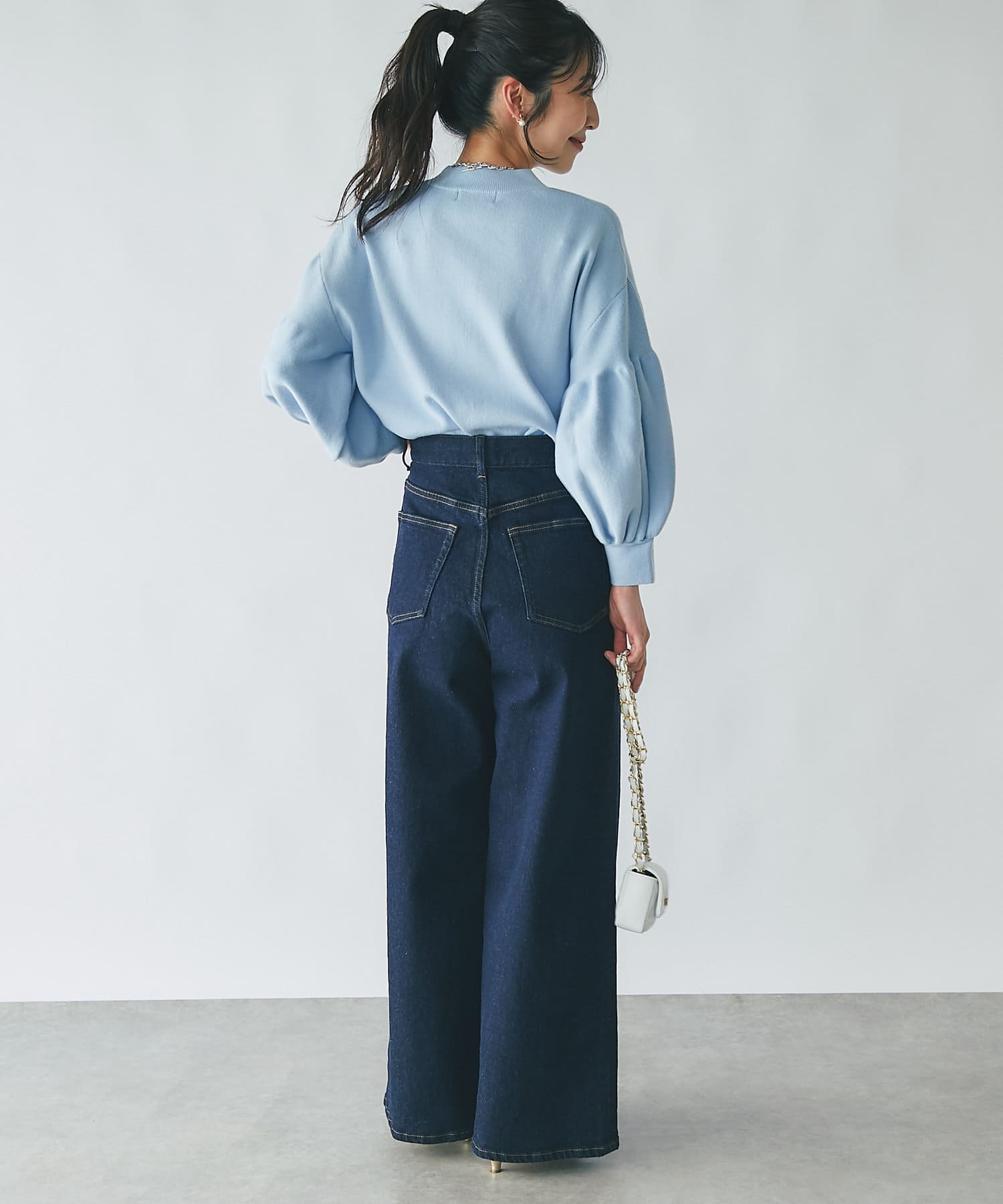 太すぎないワイドシルエットですっきりと履けるデニムパンツ